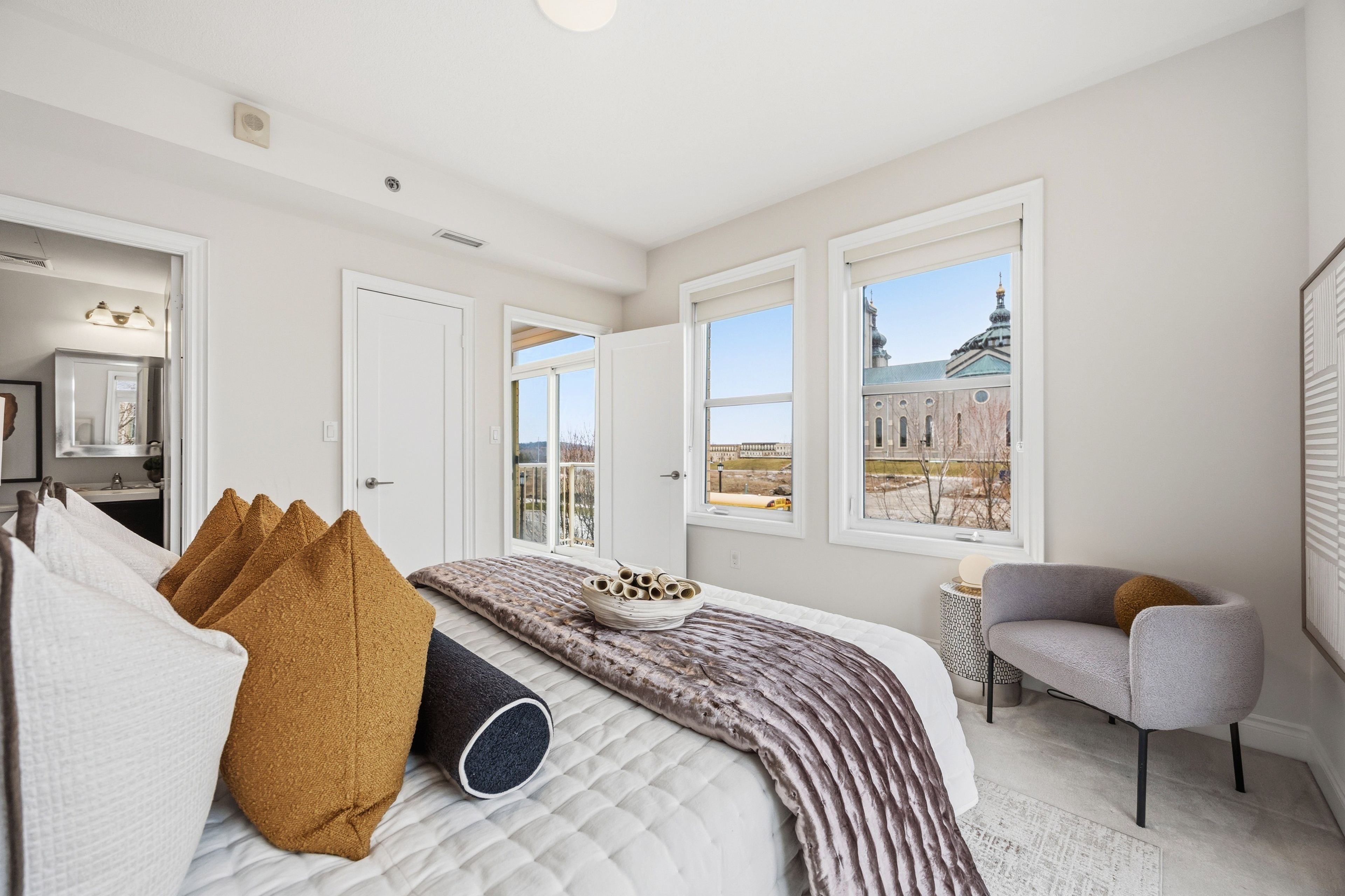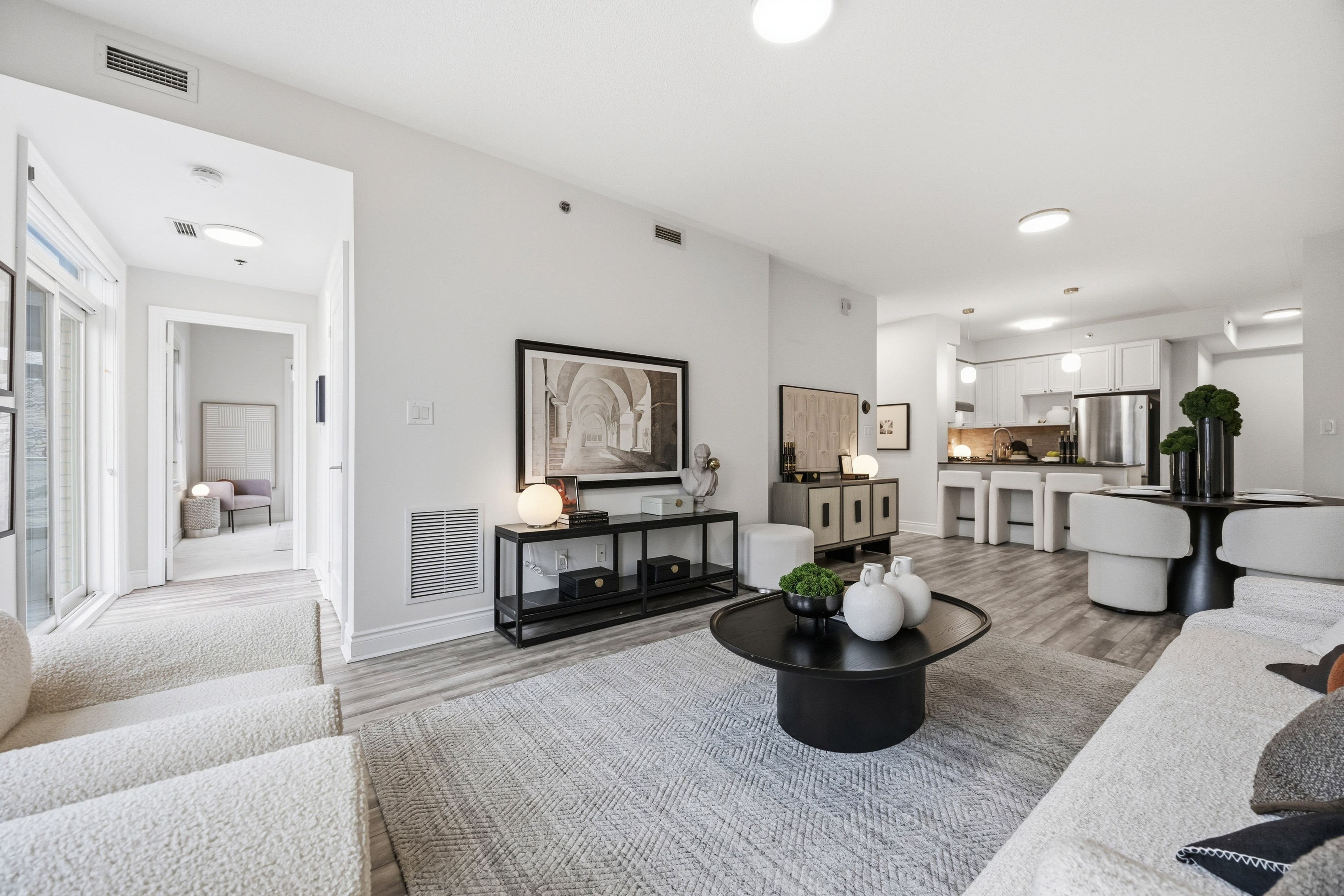 Welcome to suite 211 at 28 prince regent street, tucked into markham's highly sought-after cathedraltown where charm meets convenience and your parking situation finally gets the respect it deserves. This spacious suite offers over 1,100 sqft of bright, functional living, perfect for growing families or savvy down-sizers who refuse to downsize their lifestyle. Set in a quiet and peaceful low-rise building, you'll enjoy 9' ceilings and a sun-soaked, south-facing living and dining area that feels like it's been personally curated by the sunlight itself. Featuring 3 well-sized bedrooms with windows (yes, actual windows in every bedroom), the primary retreat delivers a bright south-west exposure, its own walkout balcony, walk-in closet, and a 3-piece ensuite that checks all the boxes. With two balconies offering panoramic views, you get double the fresh air and double the excuses to step outside with your morning coffee. The open concept kitchen comes equipped with a breakfast bar that's perfect for quick meals or long chats, while updated light fixtures and laminate flooring throughout the living areas keep things sleek and modern. Now let's talk about the real unicorn: a private side-by-side double car parking space with its own garage door underground. No more car tetris. Add in a conveniently located locker on the same level for easy access, and everyday living just got a whole lot smoother. Enjoy 24-hour concierge service, plenty of visitor parking, a carwash, and a party room for when hosting duties call. Located just steps to highway 404, costco, and everything you need, this home blends comfort, practicality, and a touch of "why didn't i move here sooner?" energy.