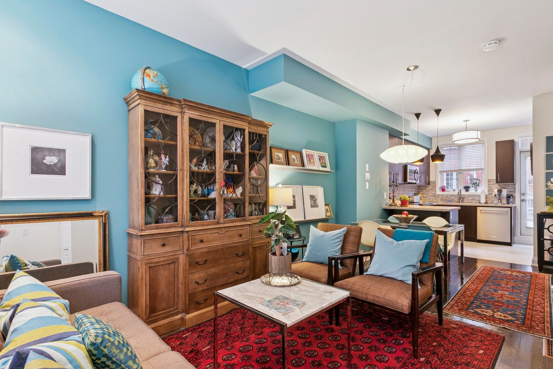 • Open concept main floor with stylish hardwood floors and modern kitchen.