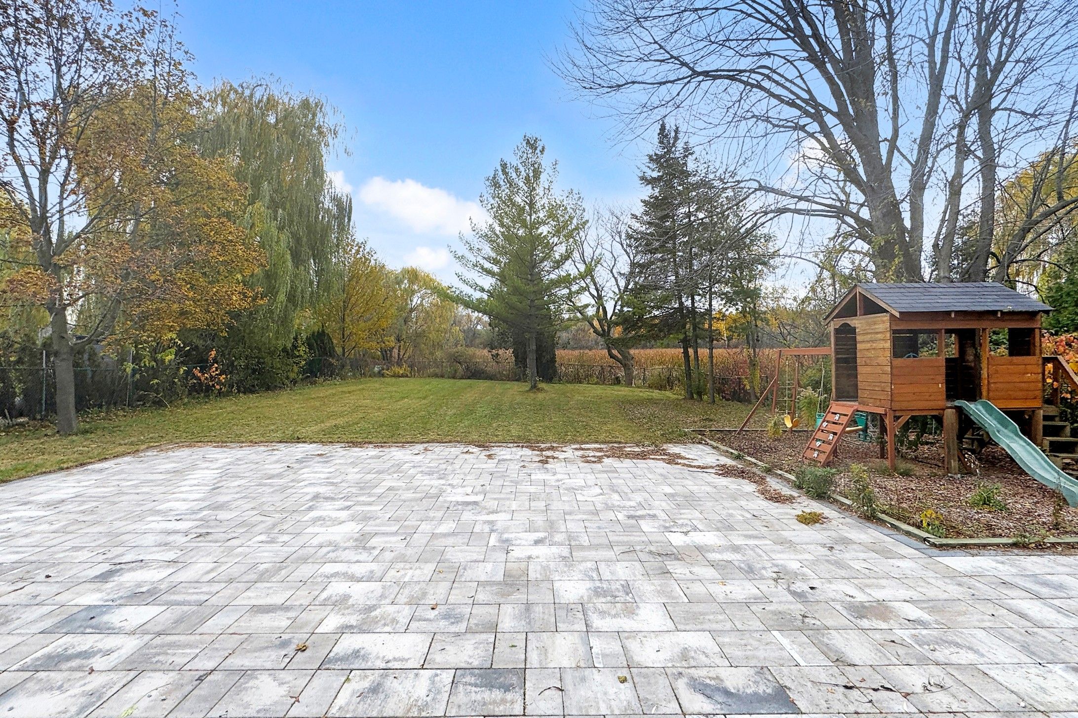 • Landscaped backyard perfect for summer gatherings and relaxation.