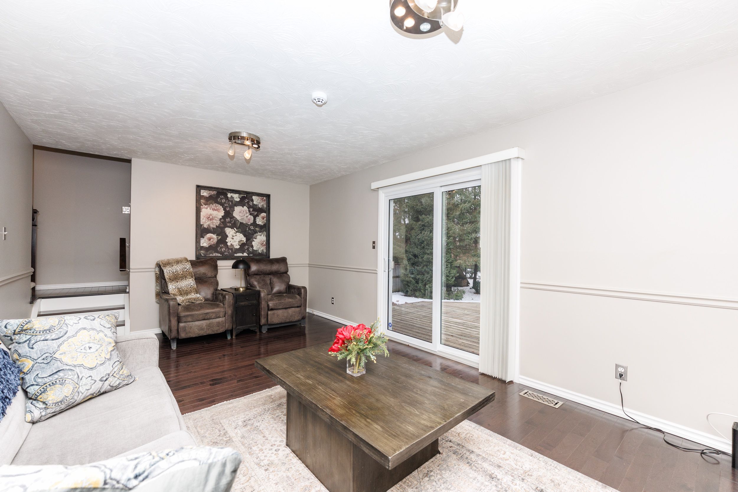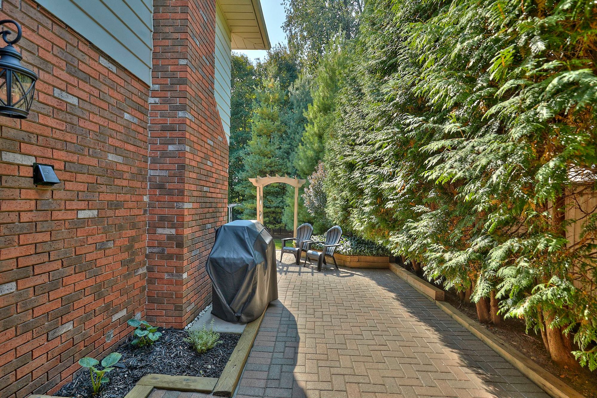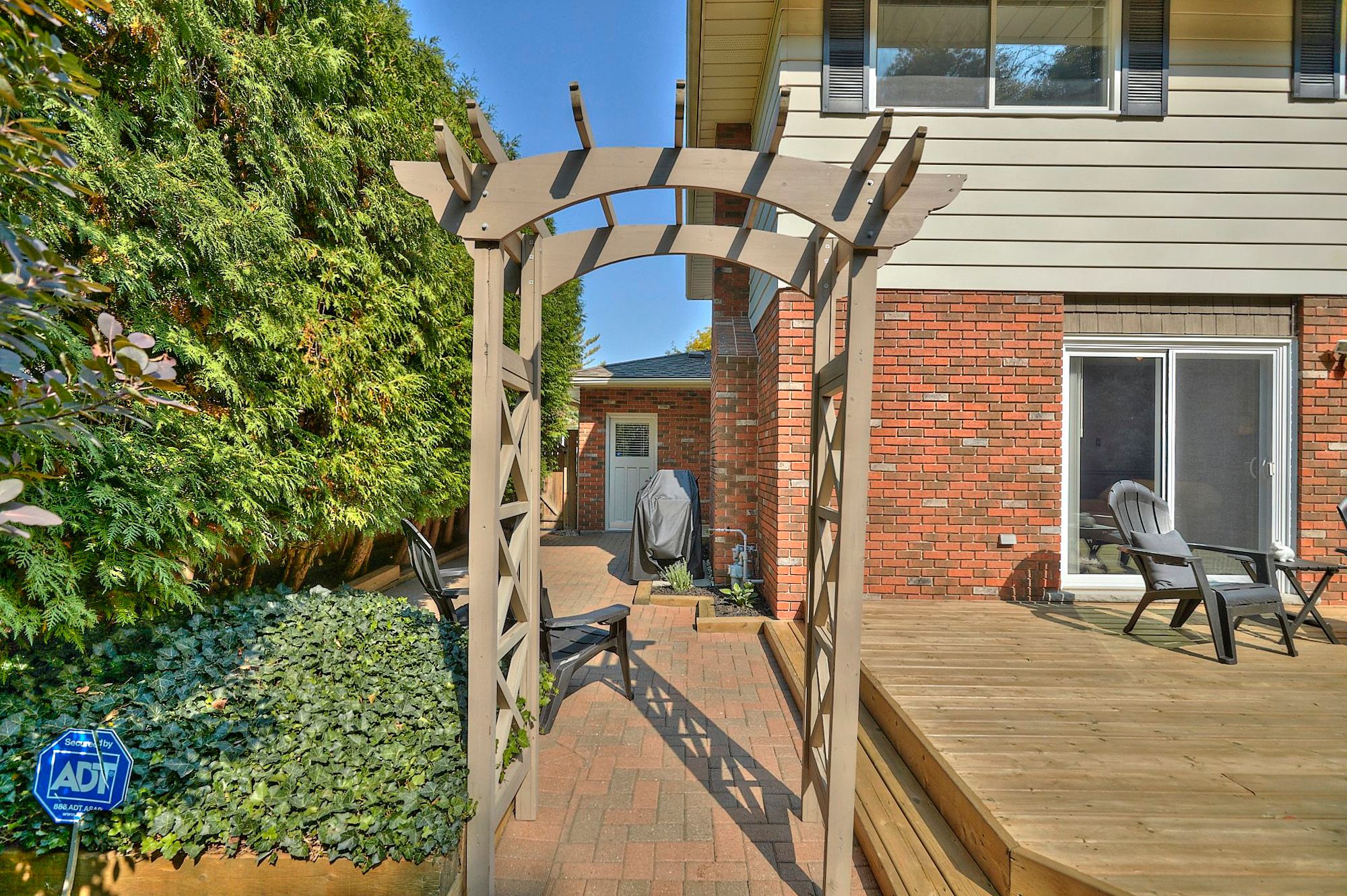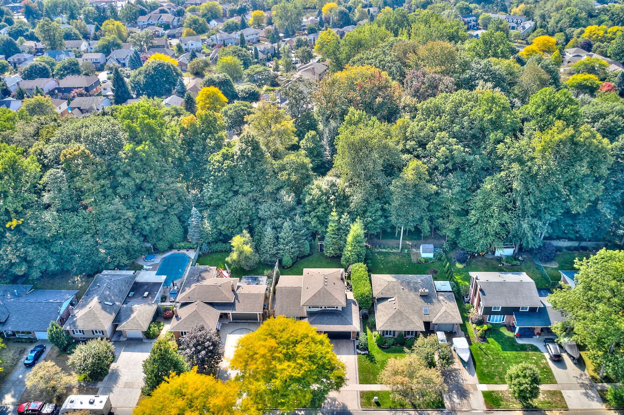 Catch me if you can! Surrounded by mature trees on a quiet fonthill street, 28 spruceside offers a beautifully updated home in a peaceful natural setting where privacy and comfort come together. Backing onto a tranquil greenbelt with direct access to the steve bauer trail, the property delivers a muskoka-like setting right in town. Enjoy the expansive deck surrounded by mature specimen trees and professionally landscaped grounds with armour stone accents and an elegant interlocking brick driveway. A covered front porch with striking black stone detail creates a welcoming first impression. The double garage comfortably fits two suvs and features professionally finished epoxy floors and a designer garage door. Inside, the home presents a bright, inviting interior with neutral tones and quality craftsmanship throughout. The main level is designed for everyday living and entertaining, featuring a formal living room with white, inviting electric fireplace included, separate dining room, eat-in kitchen with updated appliances, main-floor laundry with newer european washer and dryer, and a warm family room with wood-burning fireplace and walkout to the private backyard retreat. Upstairs offers two generous bedrooms plus a spacious primary suite with ensuite privilege to a beautifully renovated 5 pcs. Bathroom. The finished lower level expands the living space with a large recreation room and a fourth bedroom or home office - ideal for today's flexible lifestyle, guest space, or quiet workspace. Additional highlights include solid maple hardwood, italian porcelain and luxury vinyl tile flooring, crown moulding, wainscoting, and a staircase with solid maple posts and stainless steel balusters. Major updates include a newer roof (approx. 2021) and updated appliances for added peace of mind. Fonthill blends village charm, tree-lined streets, boutique amenities, scenic trails, wineries and celebrated fairways nearby - a community where lifestyle and location meet. Come & see