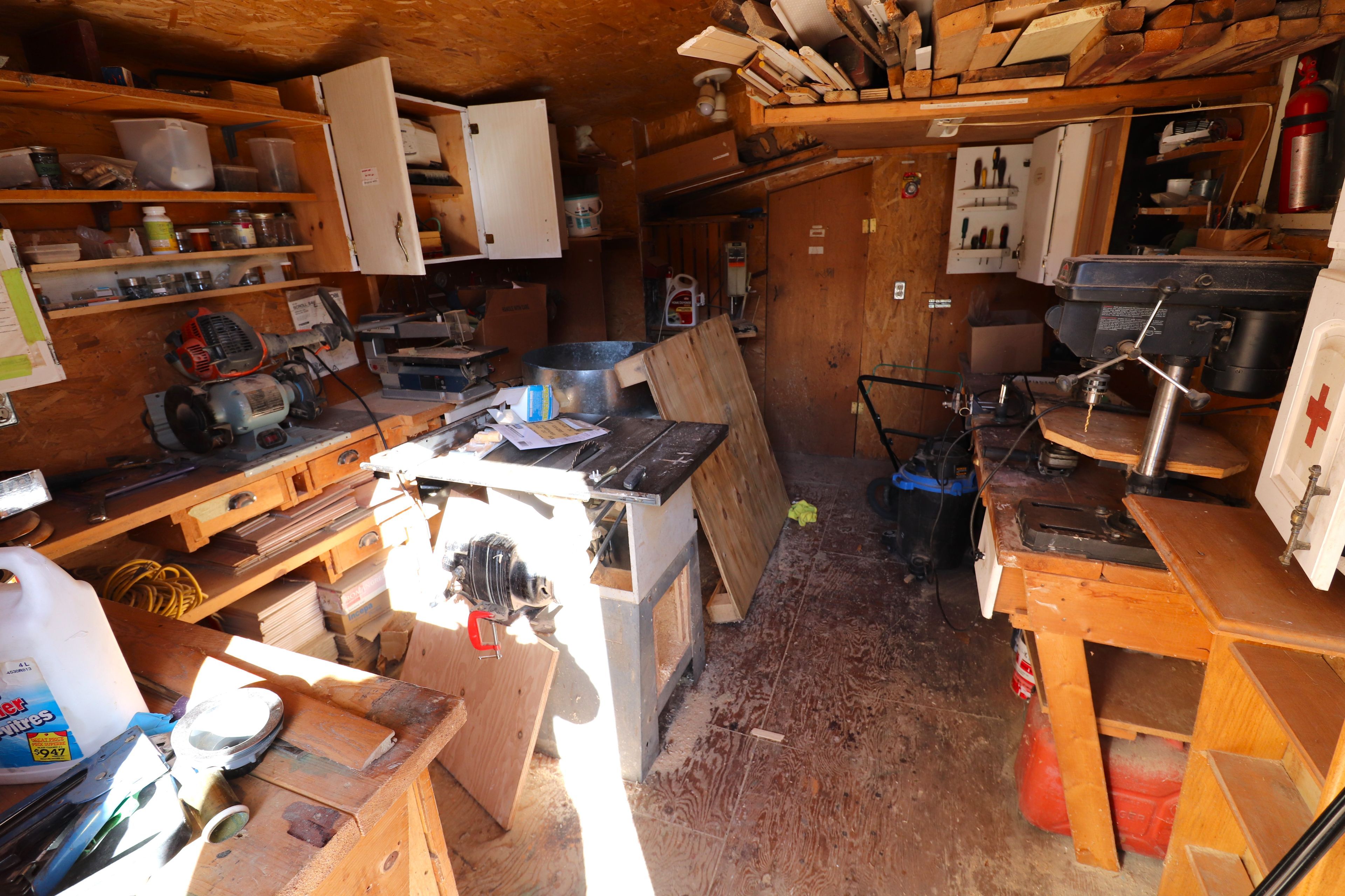 • Outdoor amenities include a covered deck and workshop access.