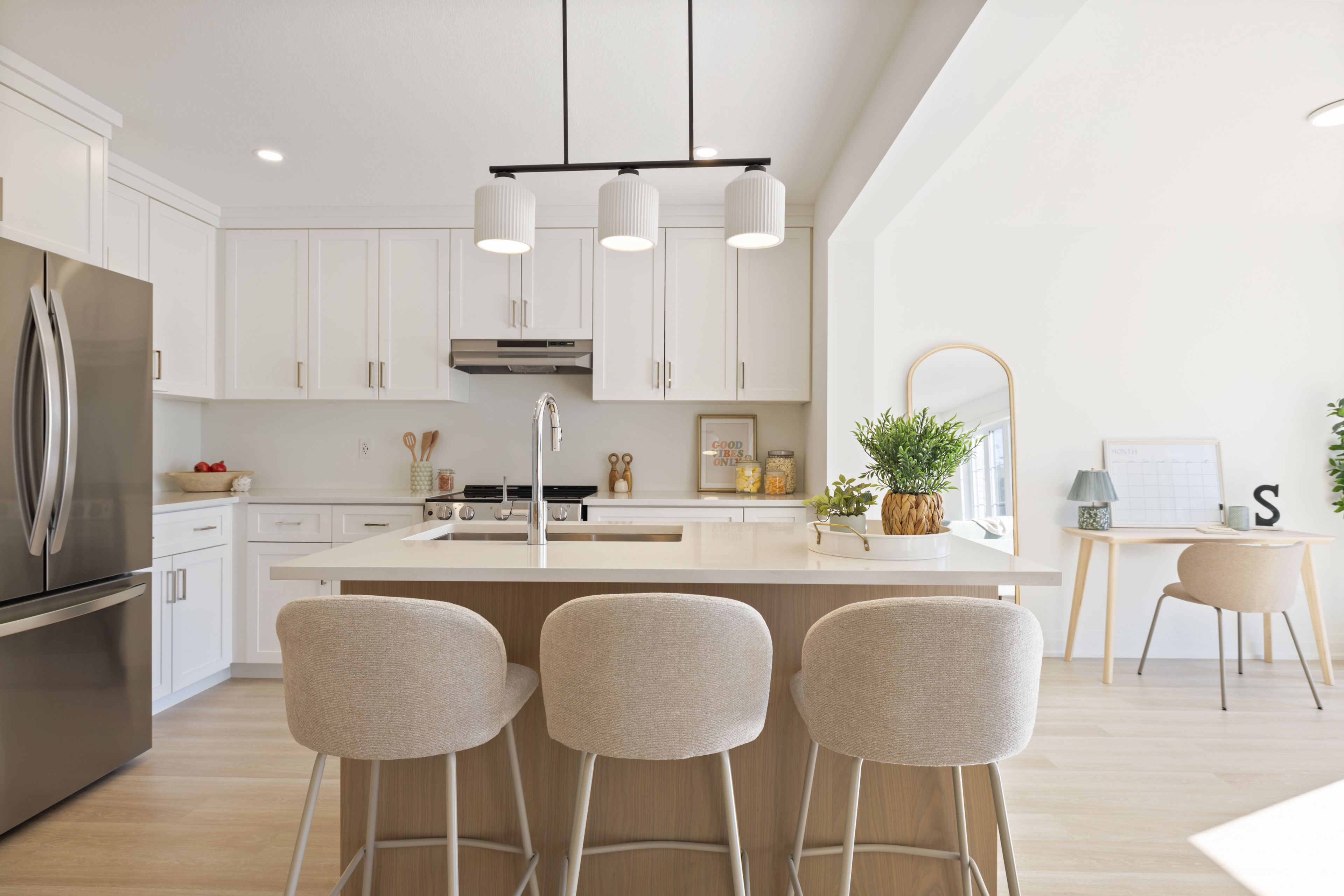 Fall in love with this charming brand new townhouse, offered at an exceptional price! An opportunity to own a brand new, never-lived-in townhouse by award-winning builder sunvale homes. This luxury residence truly has it all, starting with a south-facing backyard that fills the home with natural light. Inside, the design is timeless yet modern, featuring warm woods, natural tones, and clean lines throughout. The main floor is perfectly designed for everyday living and entertaining, showcasing a gorgeous kitchen with quartz countertops, a large island, brand new stainless steel appliances, and a spacious dining area. An office nook adds functionality, while the generously sized living room, anchored by a cozy fireplace, is the ideal spot to unwind. A custom white oak-stained staircase leads to the thoughtfully laid-out second level. The primary suite impresses with a large bedroom, walk-in closet, and spa-inspired ensuite complete with a white oak vanity, quartz counters, and a custom glass shower. Two additional bedrooms, a stylish 4-piece main bath, and convenient upstairs laundry complete the level. With its beautiful finishes, brand new appliances, bright south-facing yard, and unbeatable value, this home won't last long! Sod, fence in the backyard, garden package and driveway included. This is the hamilton model. Common element fee of $186. 62. Price does not include hst. Buyers who qualify under the government rebate program may be eligible for a full hst rebate. Purchasers must verify their eligibility directly with their own legal or financial advisors.