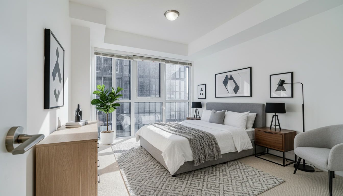 • Floor-to-ceiling windows provide abundant natural light and city views.
