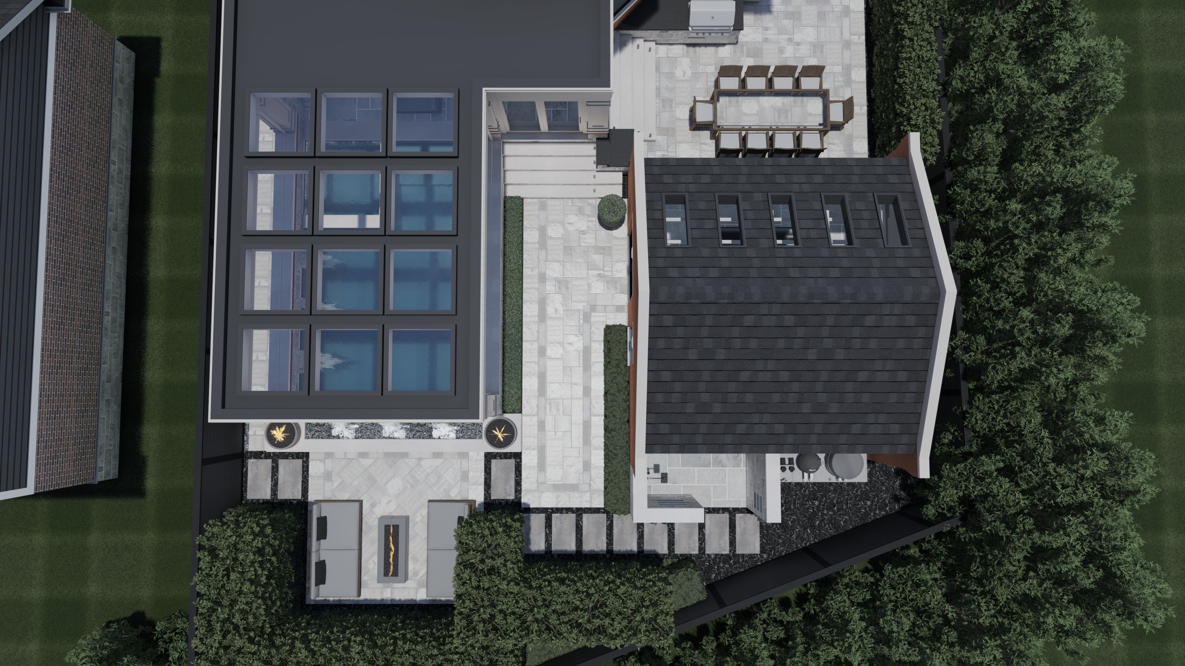 • Finished basement with a 5th bedroom, potential kitchen, and sauna.
