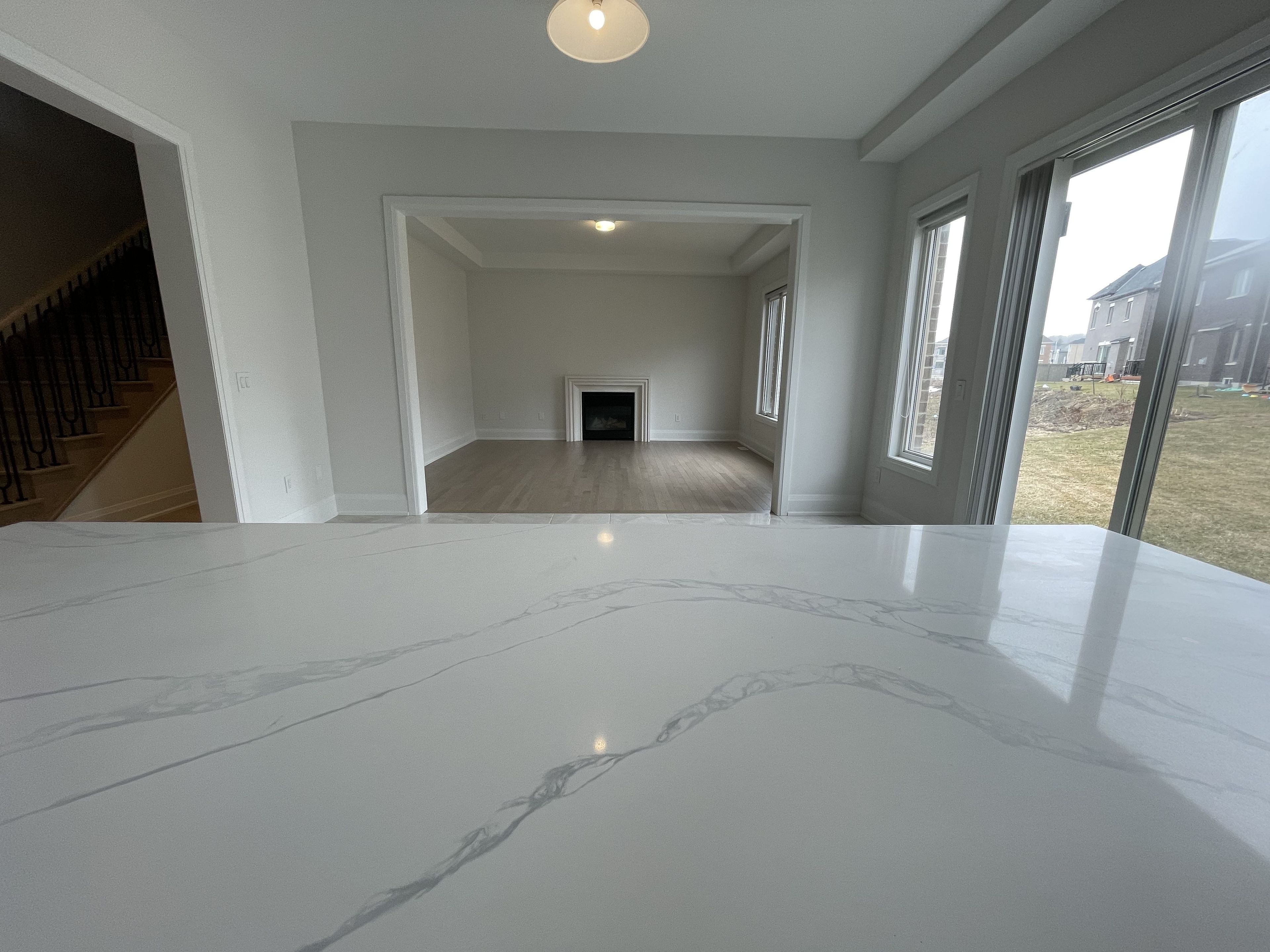 • Modern open concept design with a large family room and formal areas.