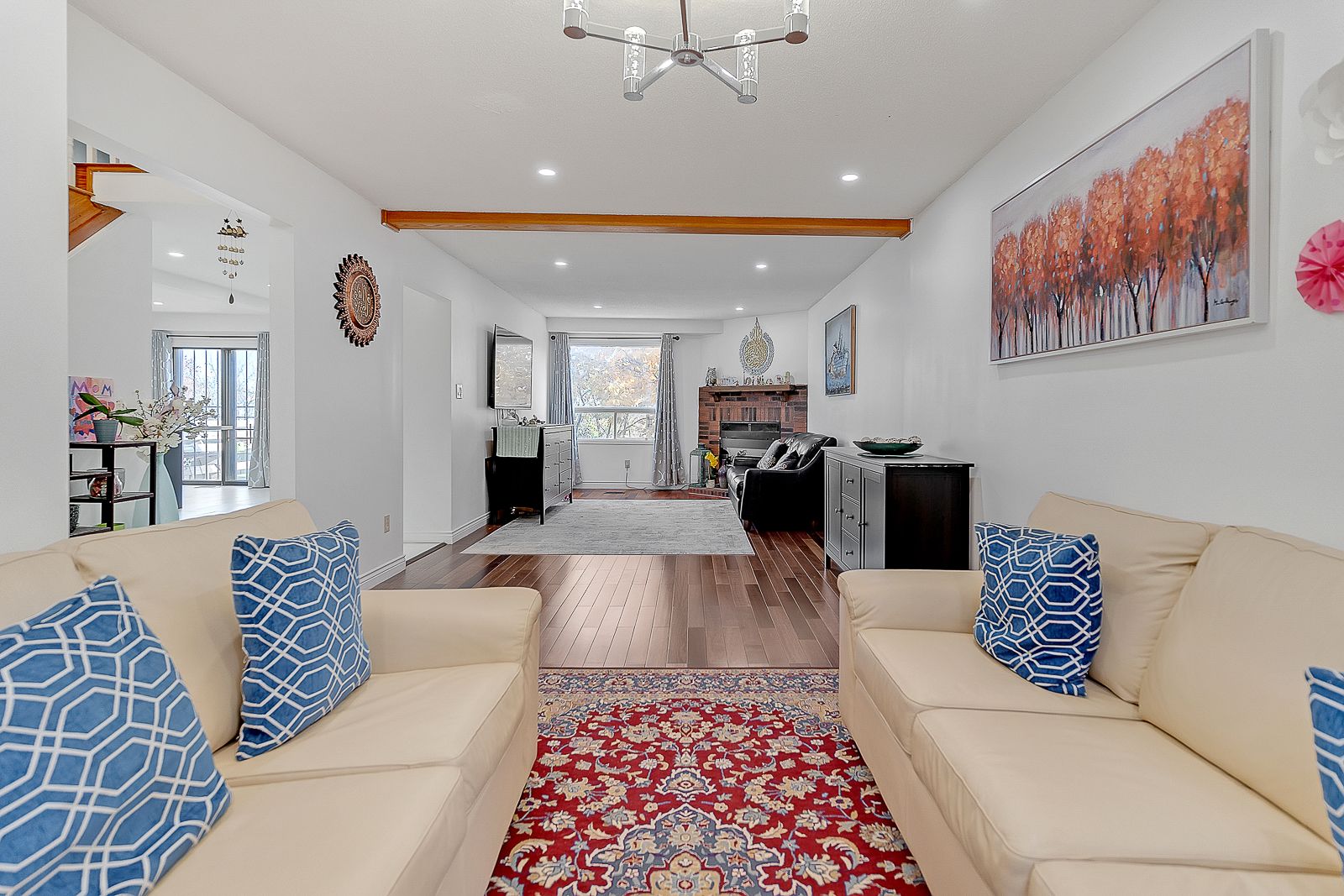 • Bright main floor featuring a family area and a cozy fireplace.