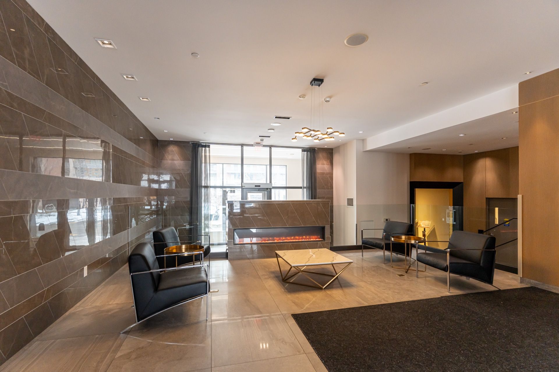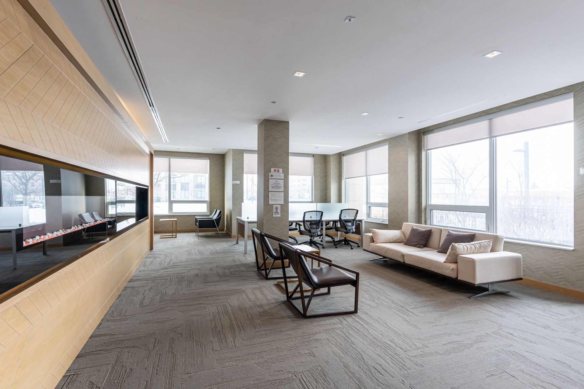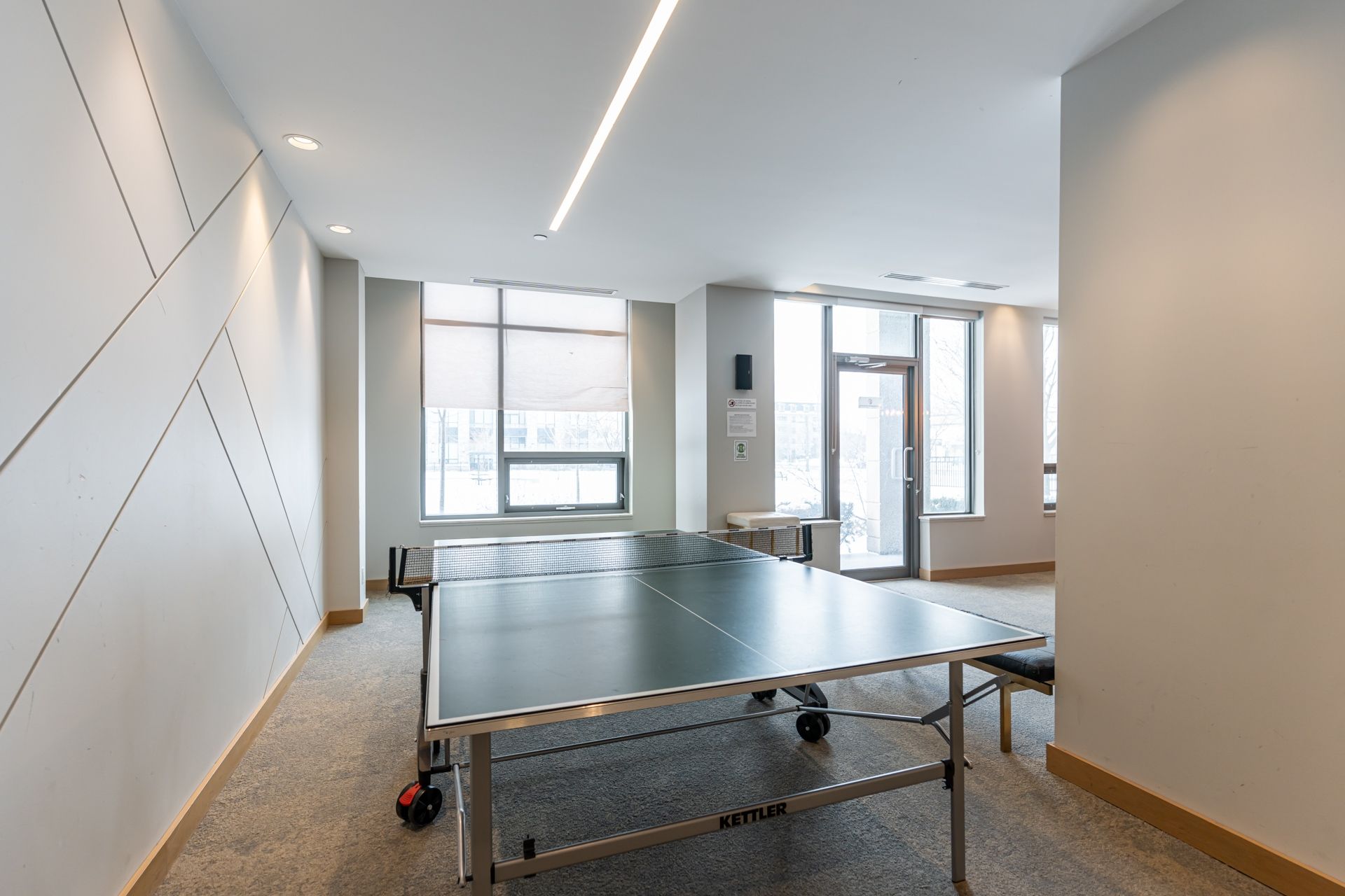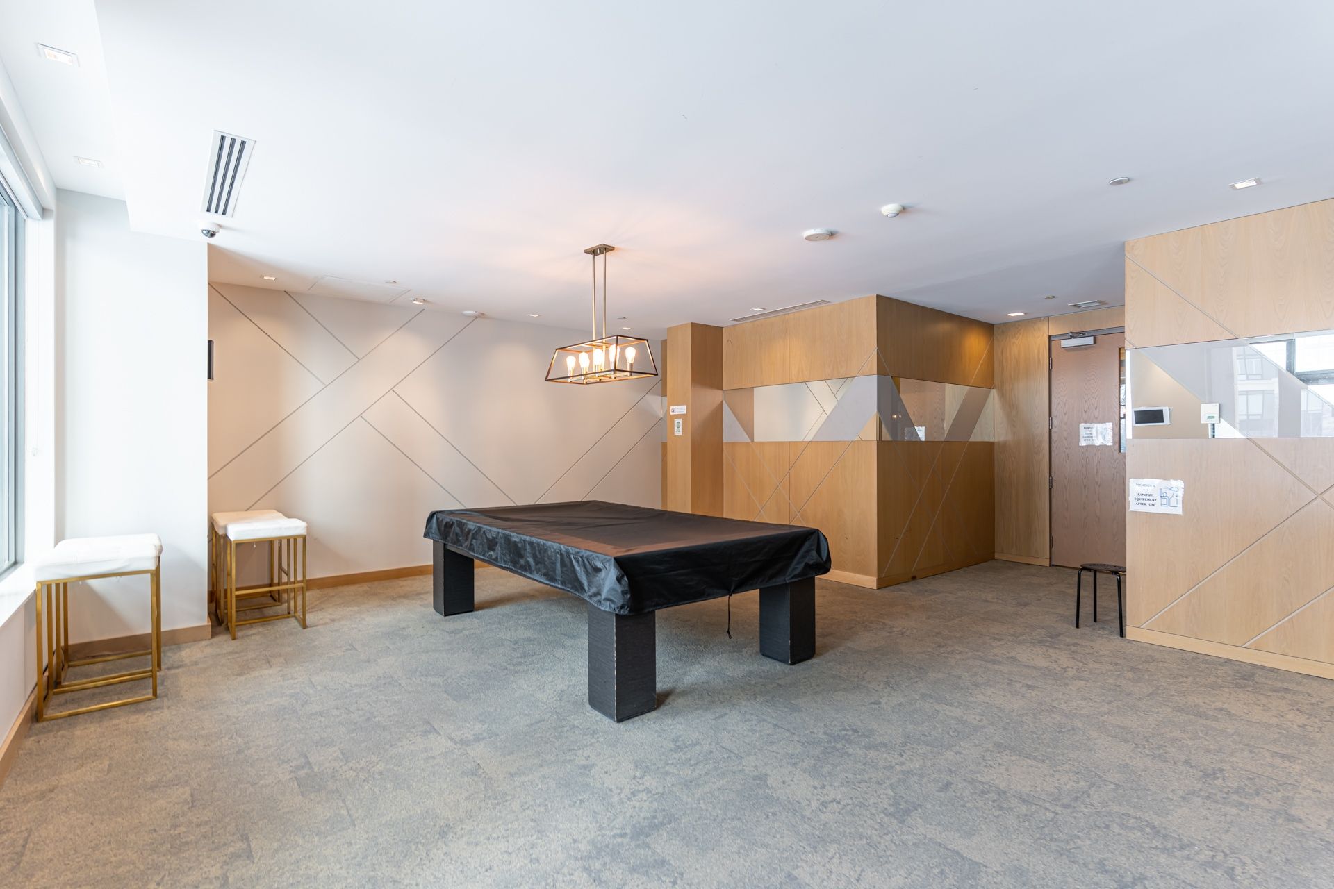 • Building amenities include a large pool and working spaces.