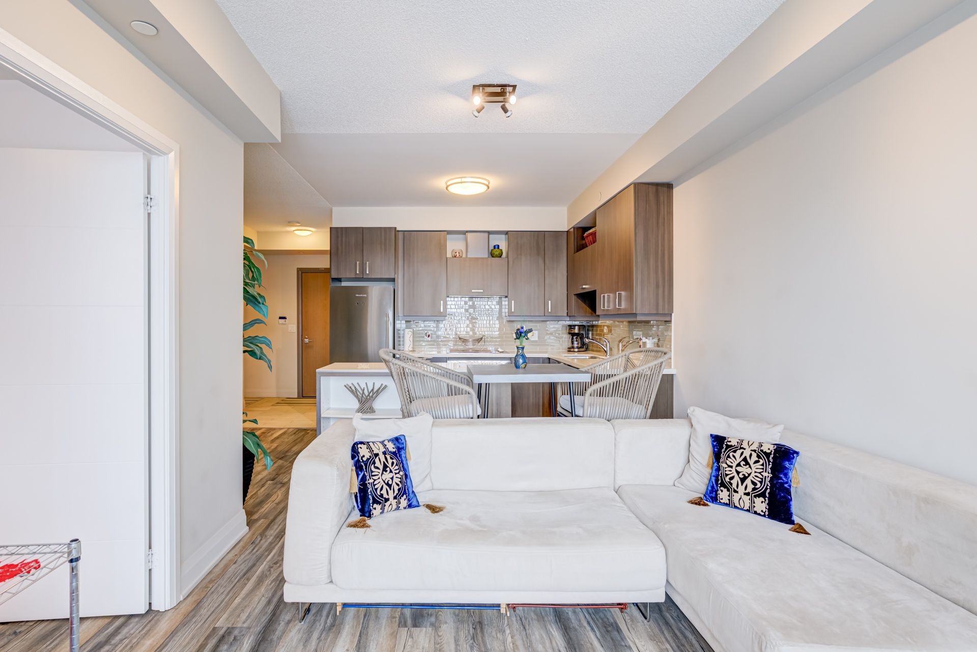 Spacious and well-designed 1+den condo with owned storage locker and 1 owned parking space offering 711 sq ft of thoughtfully laid-out living space. This large condo features a large open-concept kitchen with a generous island, perfect for entertaining and everyday living. The versatile den provides an ideal home office or guest area. Bright living and dining areas create a comfortable flow, while the efficient layout maximizes usable space throughout. The spacious bedroom has enough space to accommodate a large king size bed. The building includes a large pool, working spaces and many more amenities. An excellent opportunity for first-time buyers, professionals, or investors seeking size and functionality in a condo.