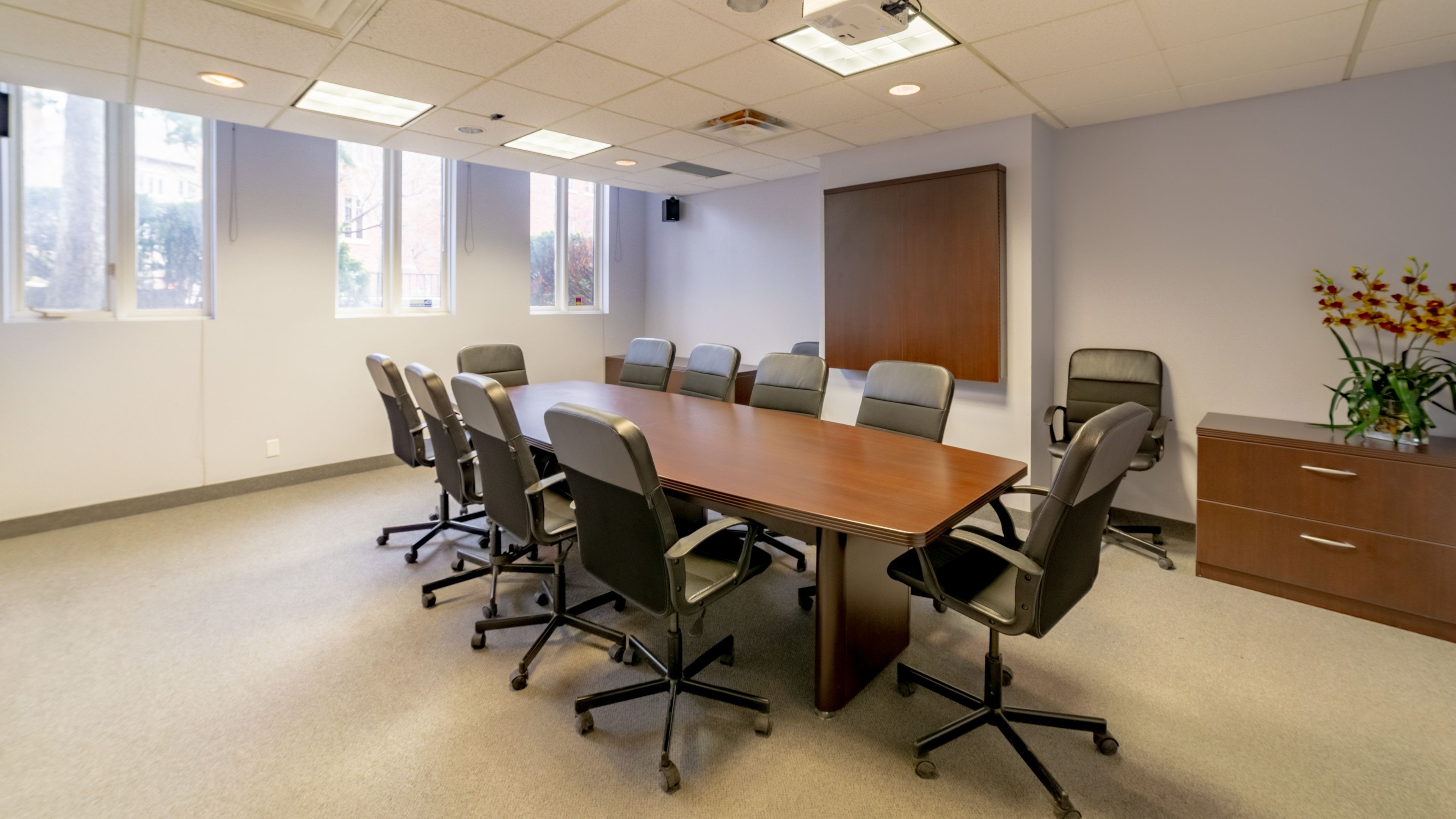 • Includes high-speed internet and reception services for clients.