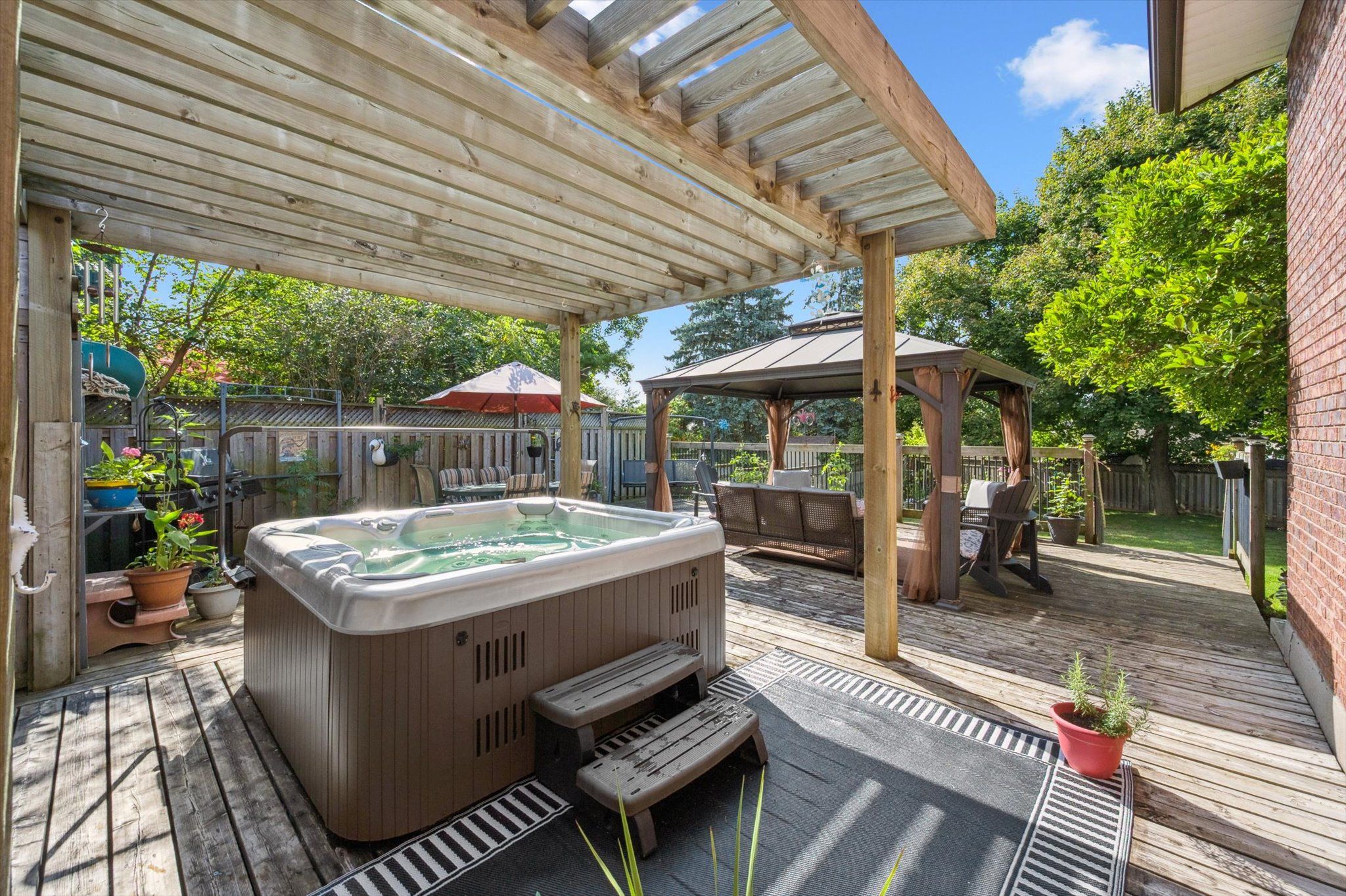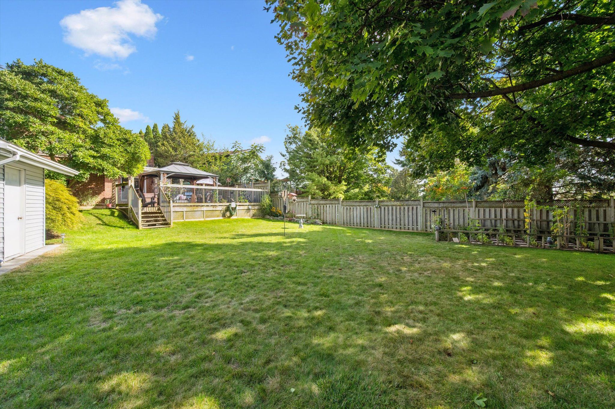 Spacious split-level home set on one of the largest lots on the street, offering over 2,500 sq ft of finished living space. With four bedrooms and multiple living areas, this home is well suited for growing families or multi-generational living. The impressive living room features a vaulted ceiling and flows seamlessly into the dining area, with direct access to a large eat-in kitchen complete with stainless steel appliances. A tucked-away main-level family room with fireplace offers flexibility as a home office, study, or potential fifth bedroom. The bright lower-level recreation room is ideal for teens, guests, or in-law accommodations. Outside, the private, pool-sized backyard is designed for entertaining, featuring a large deck with hot tub and plenty of space for gardening. Located on a quiet street just minutes from the west end rec centre, costco, and the hanlon, this may just be your next "forever" home! *updated furnace (2024), cold cellar, workshop and laundry in the basement.