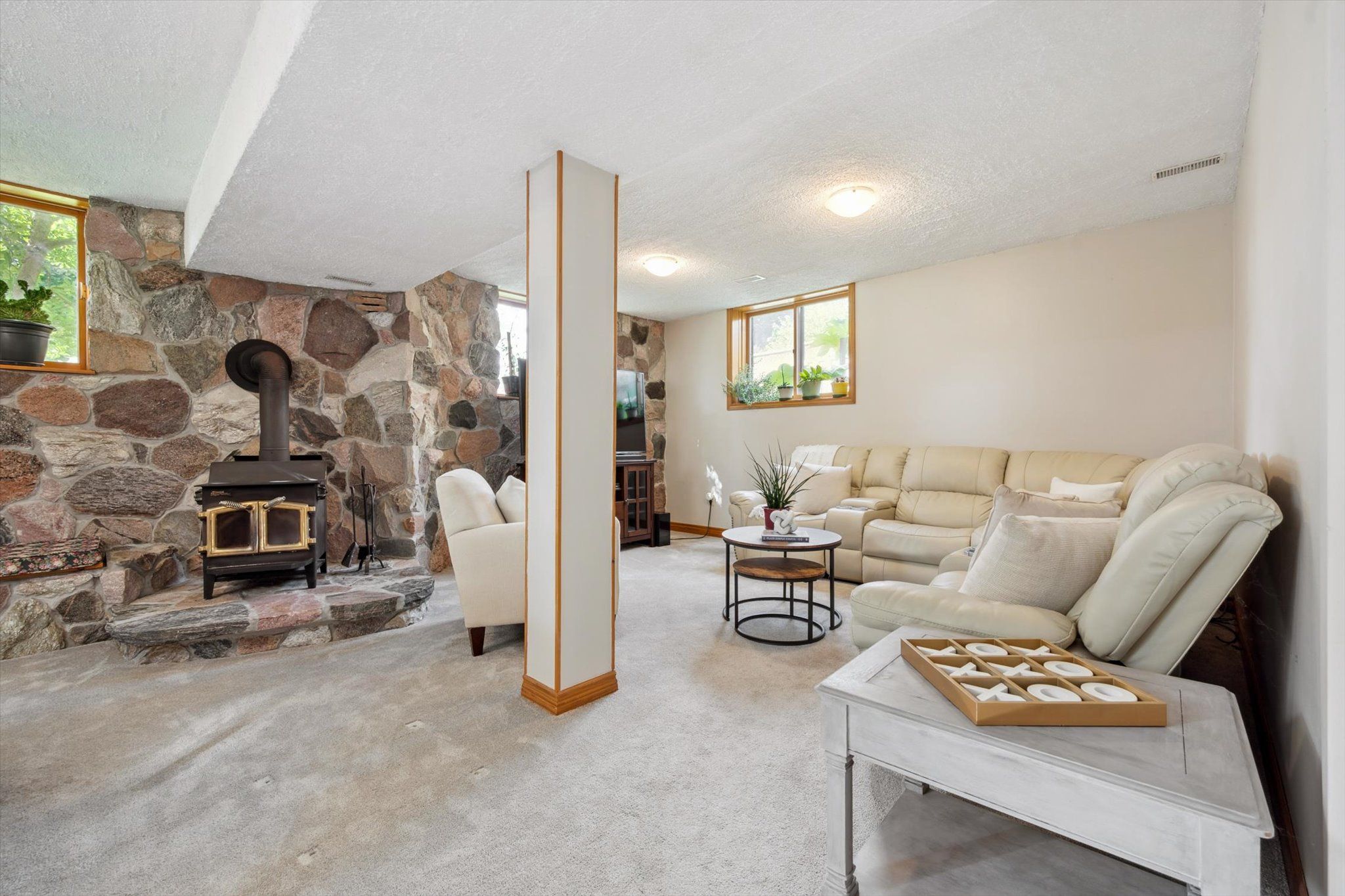 • Main-level family room with fireplace, perfect for office or fifth bedroom.