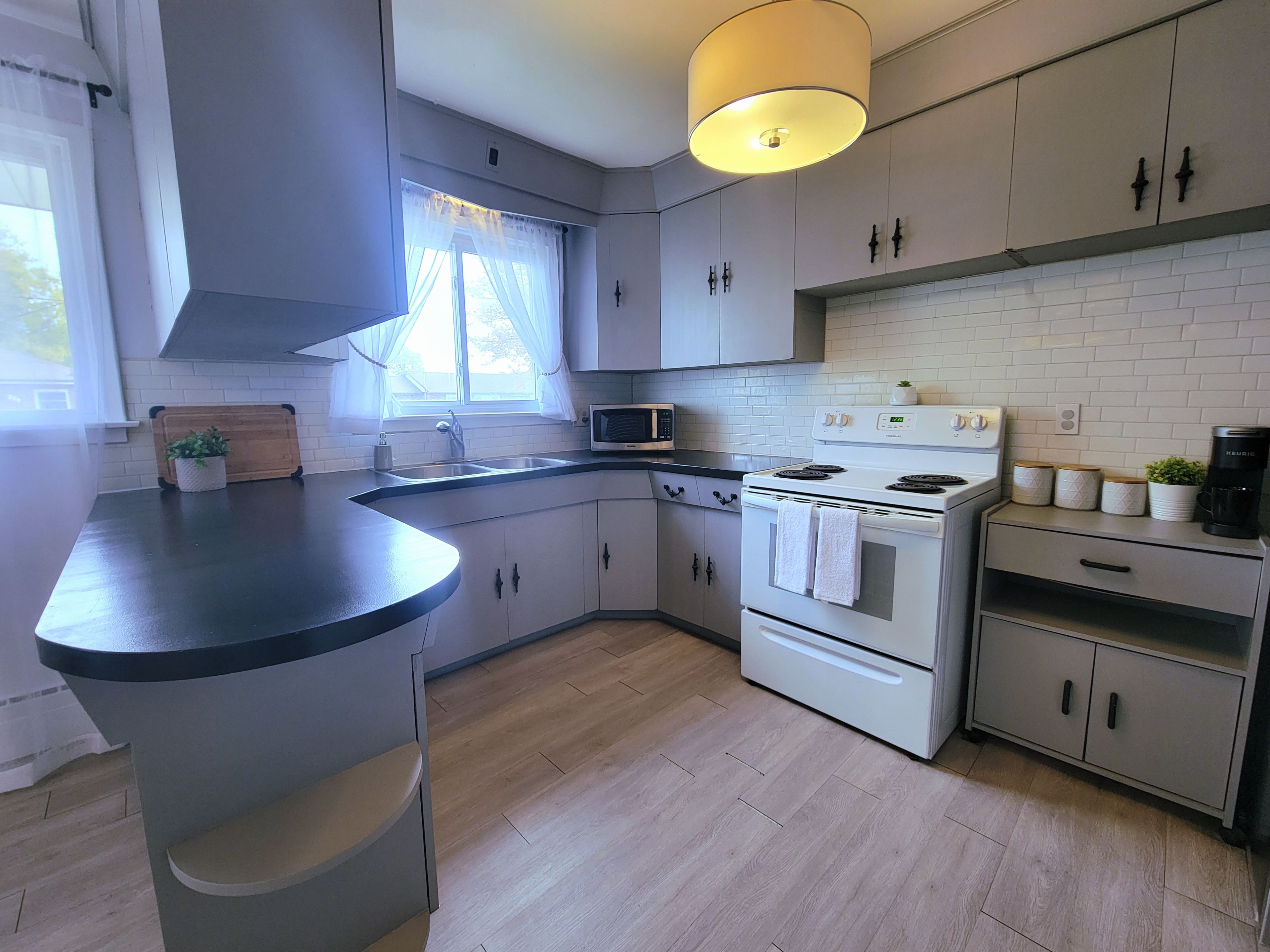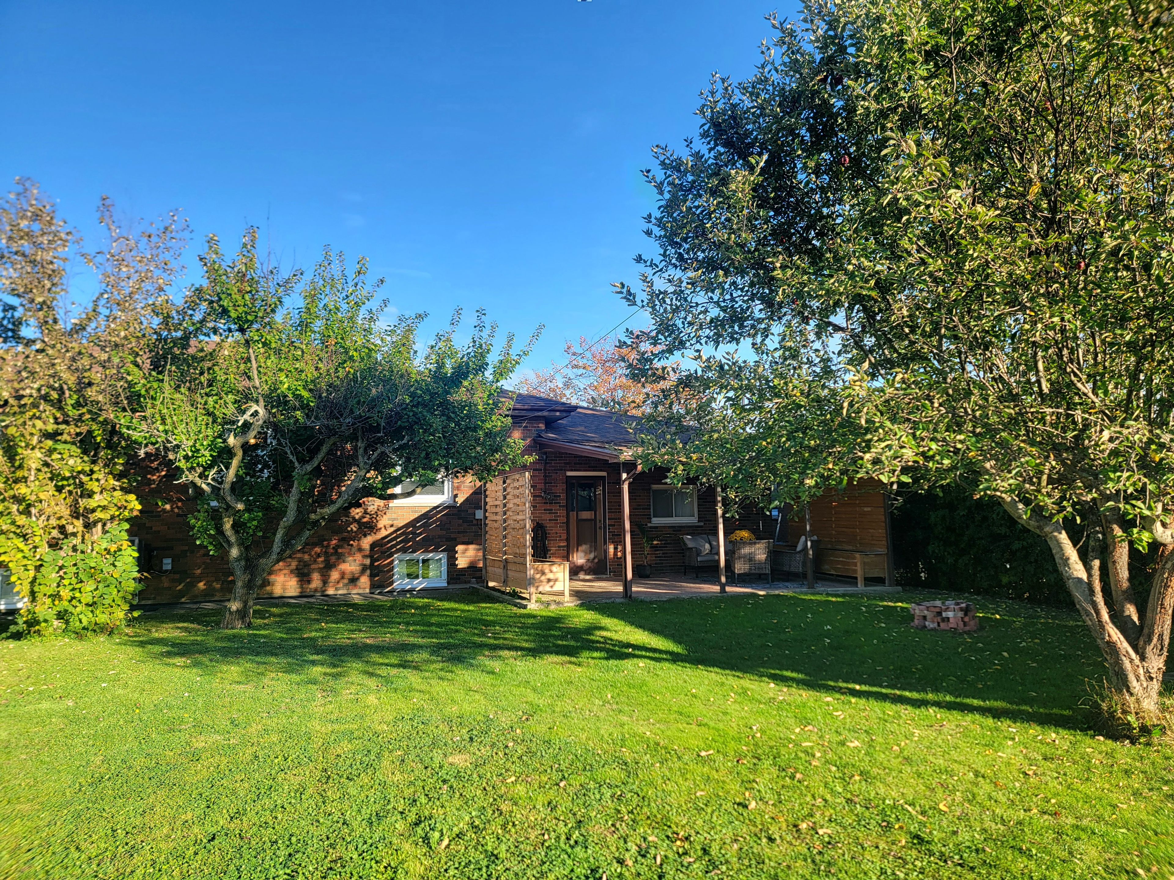 No rear neighbours! This move-in ready brick bungalow offers the perfect mix of comfort, space, and location, just steps from lockview park, the vale centre, lakeshore catholic high school, and minutes to beaches, walking trails, and waterfront amenities. Situated on an approx. 66 x 120 ft lot, the bright approx. 1,462 sq. Ft. Main floor features three spacious bedrooms, hardwood floors, and a welcoming eat-in kitchen ideal for family gatherings. The finished basement adds great versatility with a rec room, dining area, second kitchen, second bathroom, laundry, and storage perfect for extended family, an in-law suite, or potential rental income. Enjoy a fully fenced backyard with a large covered patio, raised garden boxes, an attached garage, and a workshop shed with full power ideal for hobbies or projects. Additional highlights include a waterproofed basement, efficient hot water heating, and brand-new central air (2024). Solid, well cared for, and ready to welcome its next family!