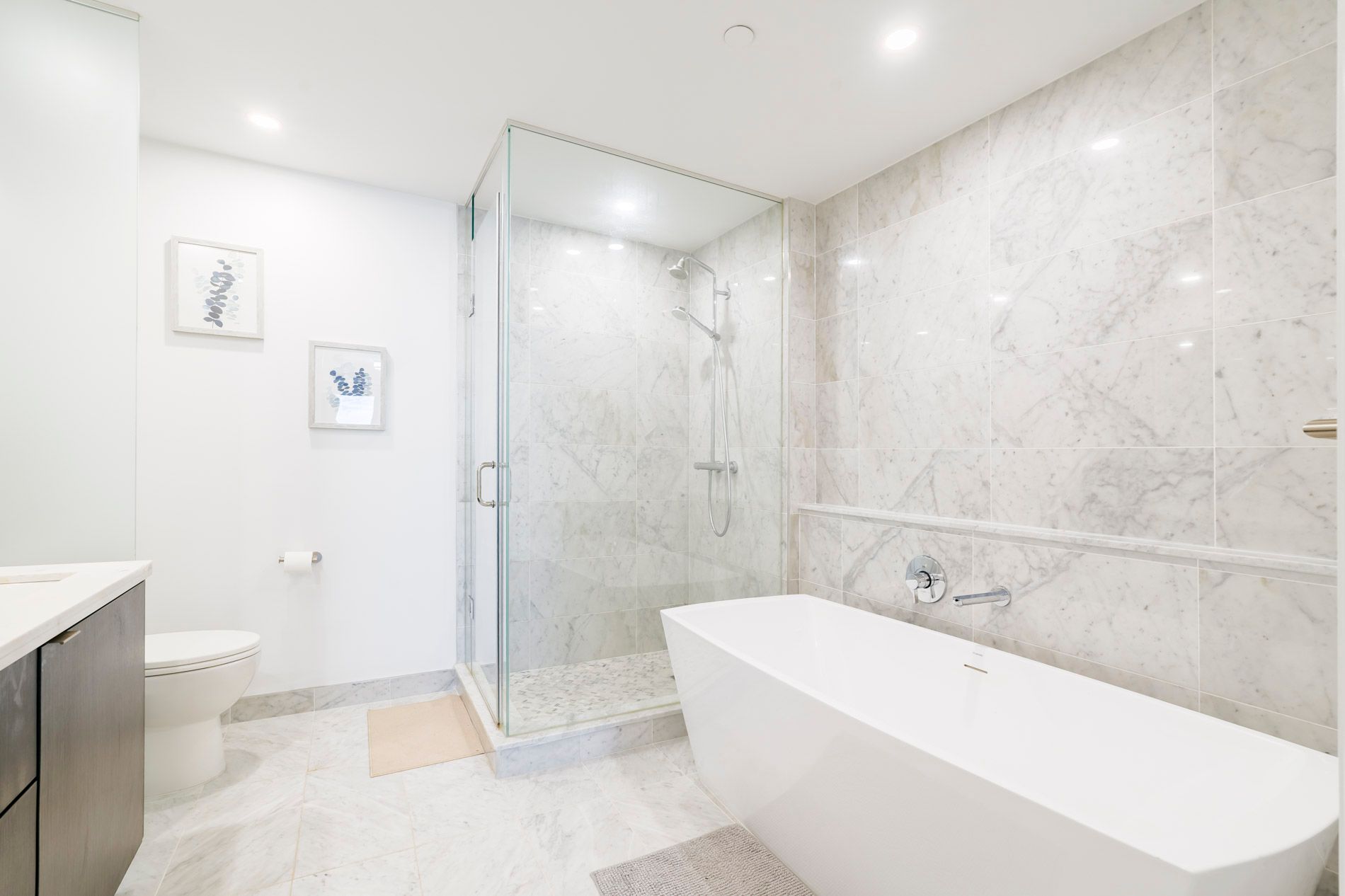 Welcome to tridel's bianca residences suite 410 as part of premium annex collection, this bright spacious over 1300 sq ft south facing suite boosts unobstructed view of cn tower, designer kitchen cabinetry with contemporary full height flat panel doors complete with integrated miele appliances. Quartz kitchen countertop and matching backsplash with polished double square edge and deep undermount sink, distinctive multitask island with waterfall edge countertop. Miele 36" integrated refrigerator with matching panel door, miele30" built-in stainless steel convection wall oven, miele 36" built-in gas cooktop, miele 24" integrated dishwasher, miele built-in, stainless steel microwave, wiring done for motorized window blinds. Includes one parking at p1 level and one locker.