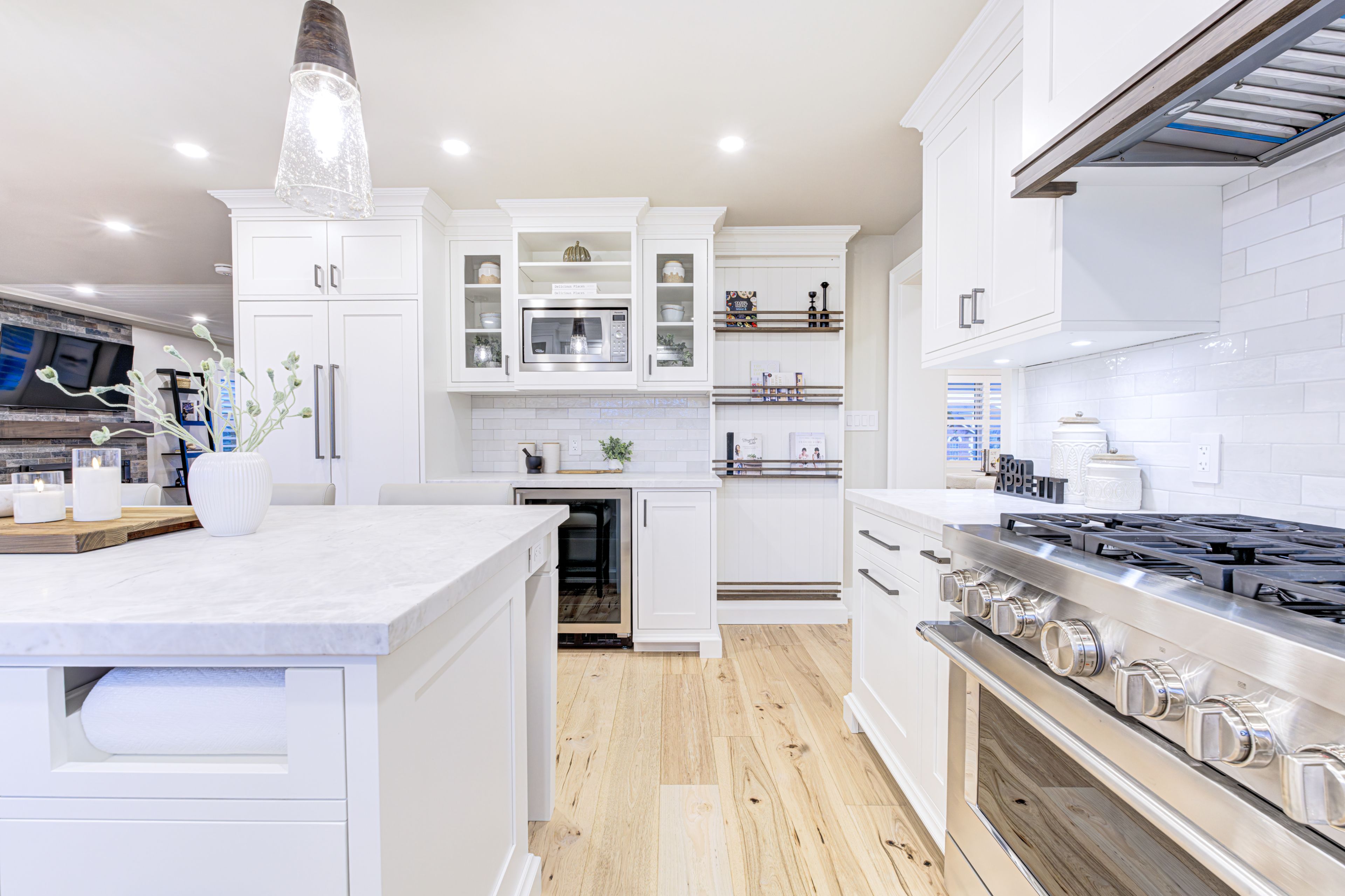 • Oversized kitchen with a large island, perfect for cooking and entertaining.
