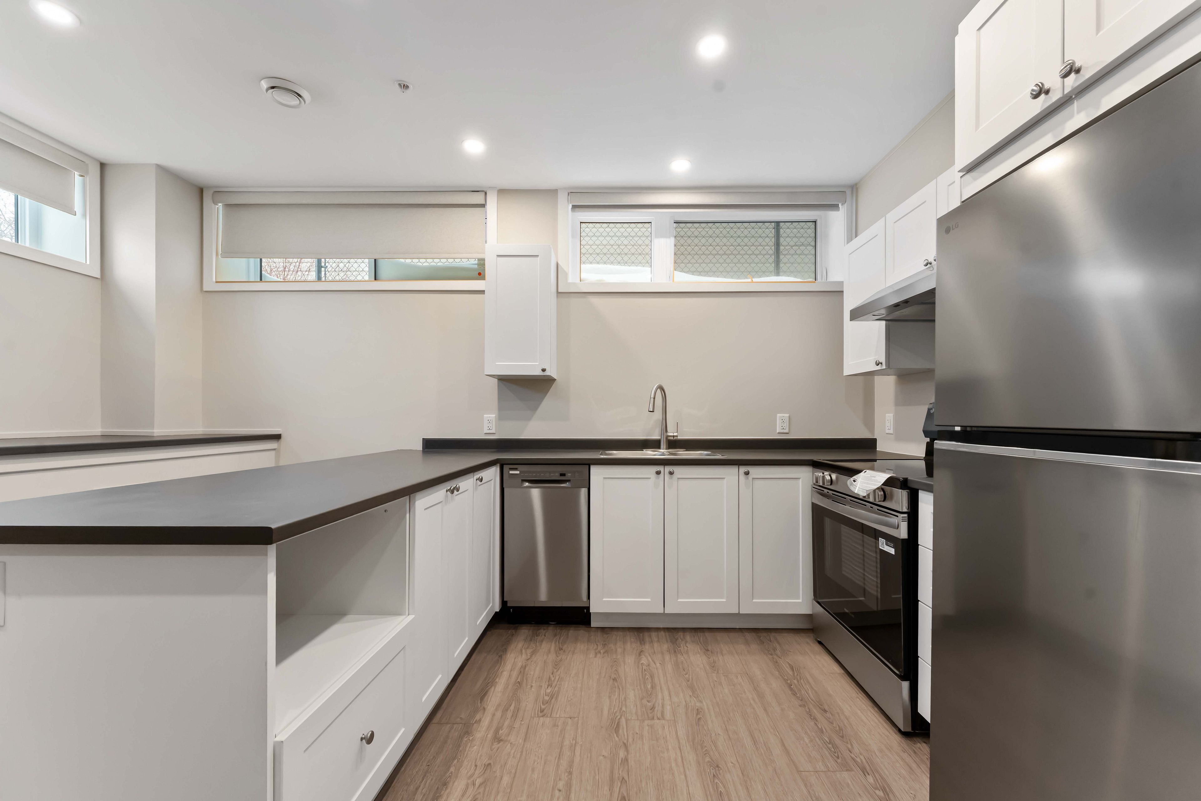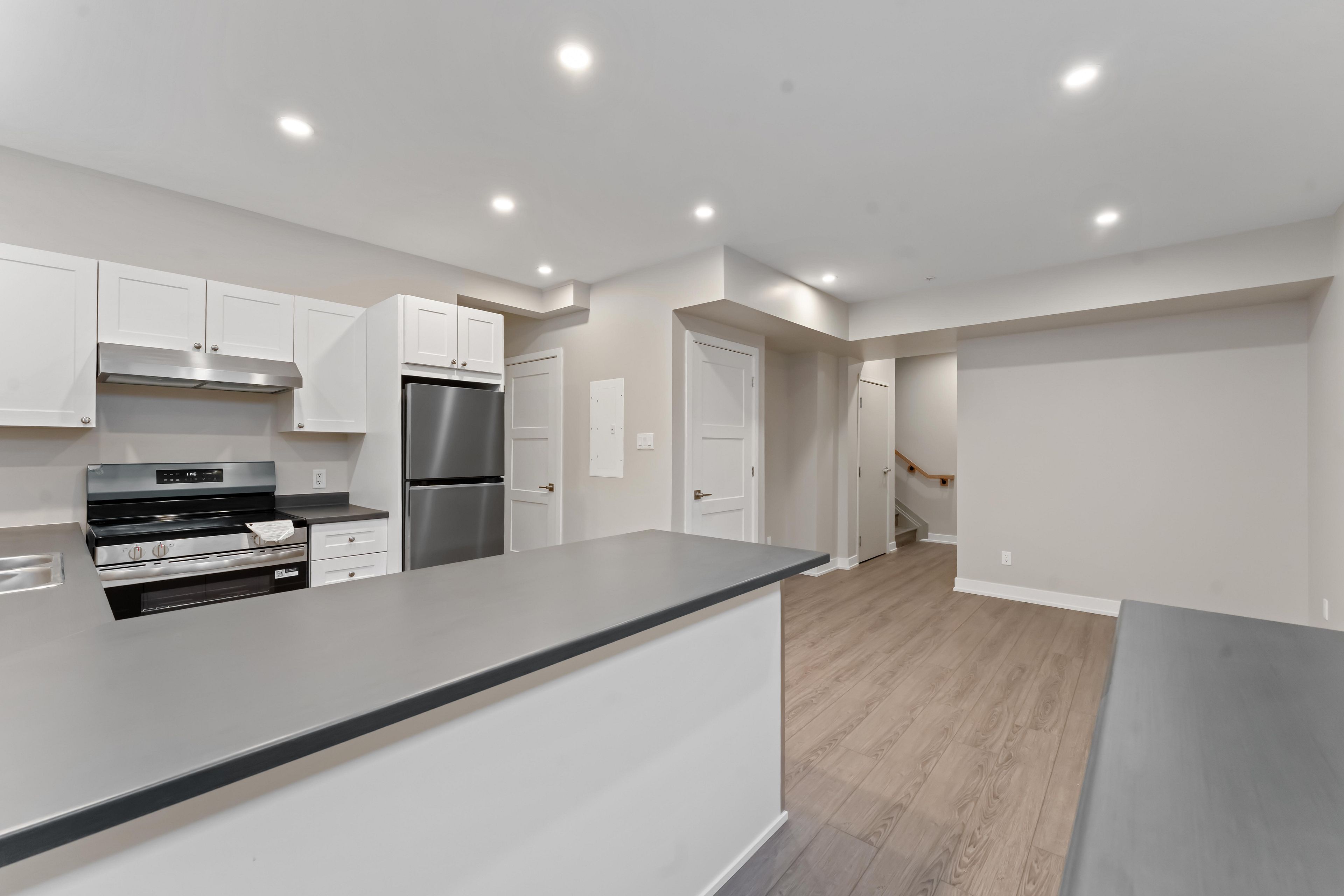 Welcome to 280 levis b! This beautiful lower-level unit with private entrance features two bedrooms and two bathrooms, making it ideal for a growing family or busy professionals. Inside, you'll find high ceilings and modern finishes throughout. The spacious living room flows seamlessly into the kitchen, which boasts stainless steel appliances, quartz countertops, and ample cabinet space. Both the bedrooms and bathrooms are thoughtfully designed with generous closet space and high-end construction, ensuring comfort and convenience. Additional highlights include in-unit laundry, water and hot water tank rental included. Just steps away from all amenities including parks, schools, transit and more. Application to be accompanied with proof of income and credit check. Tenants pay hydro. Call today!!