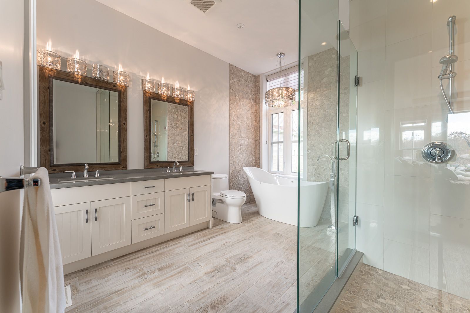 • Main floor includes primary bedroom with spa-like ensuite and hot tub.