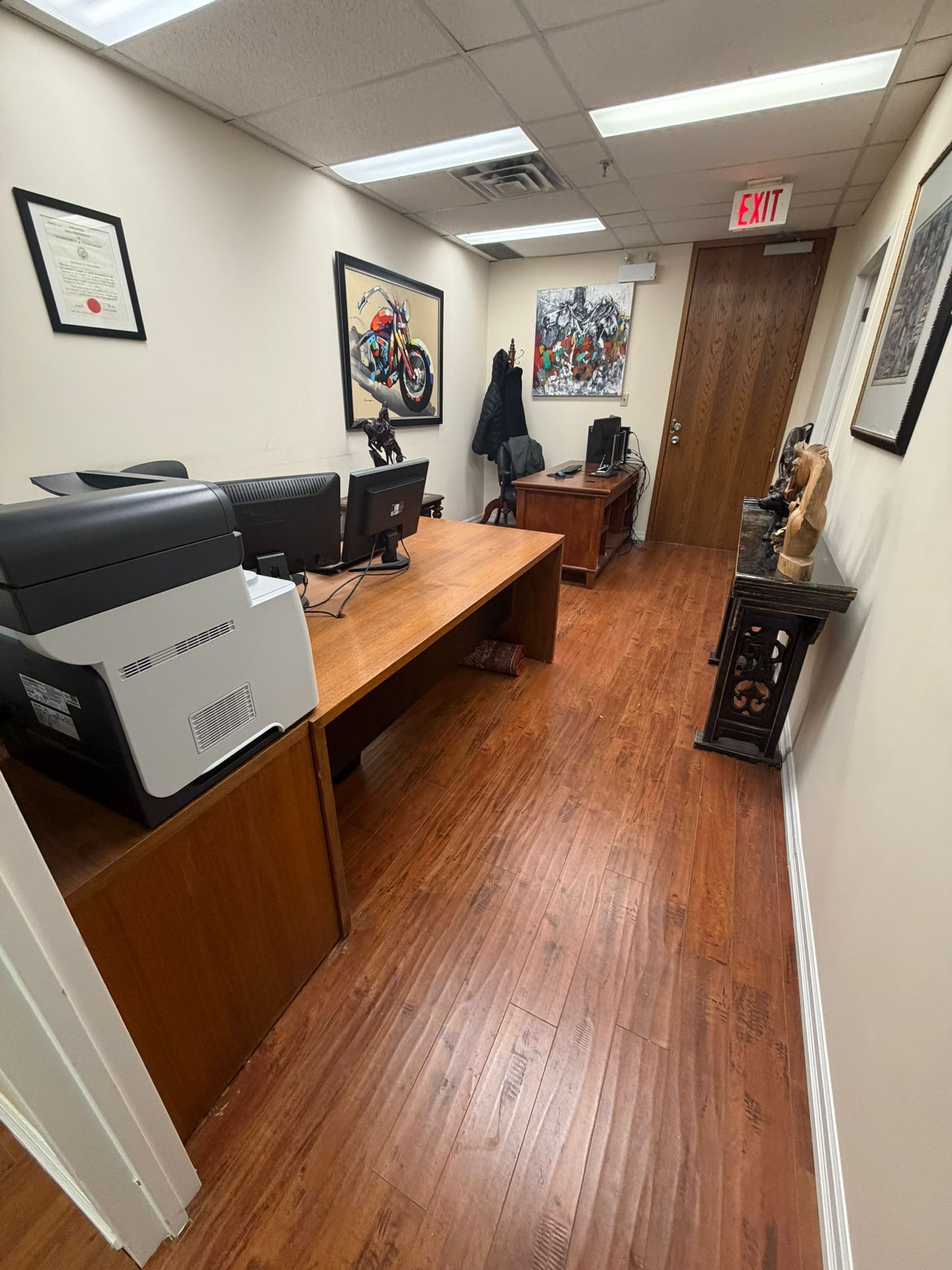 • Bright second-floor office space with approximately 300 sq. ft. of area.