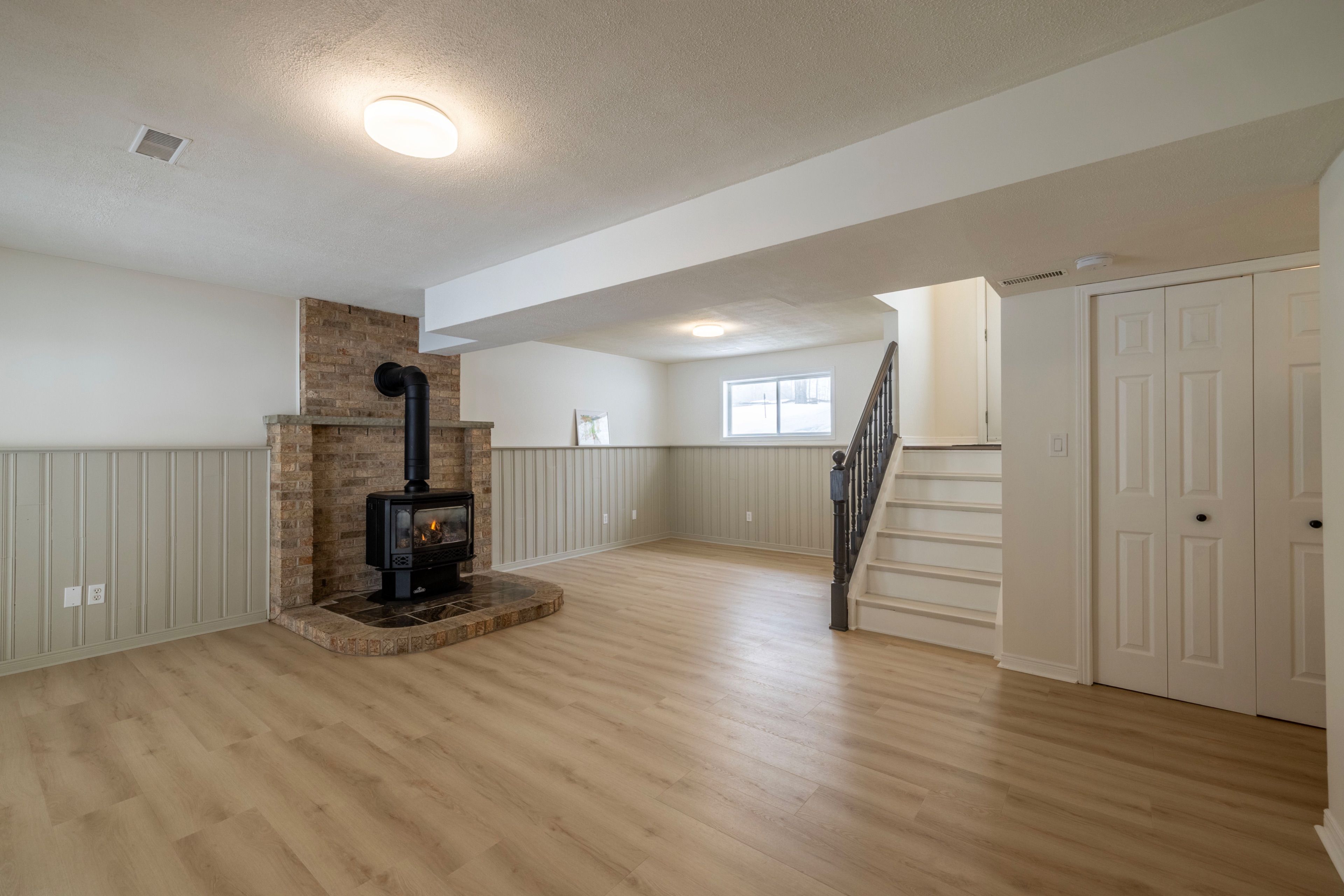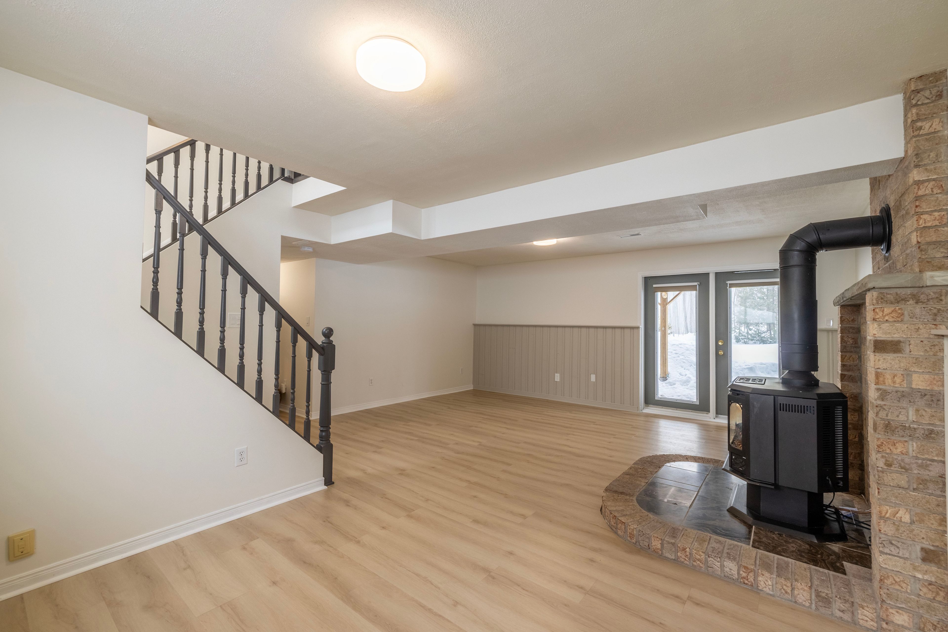 • Finished walkout basement with cozy gas fireplace and extra living space.