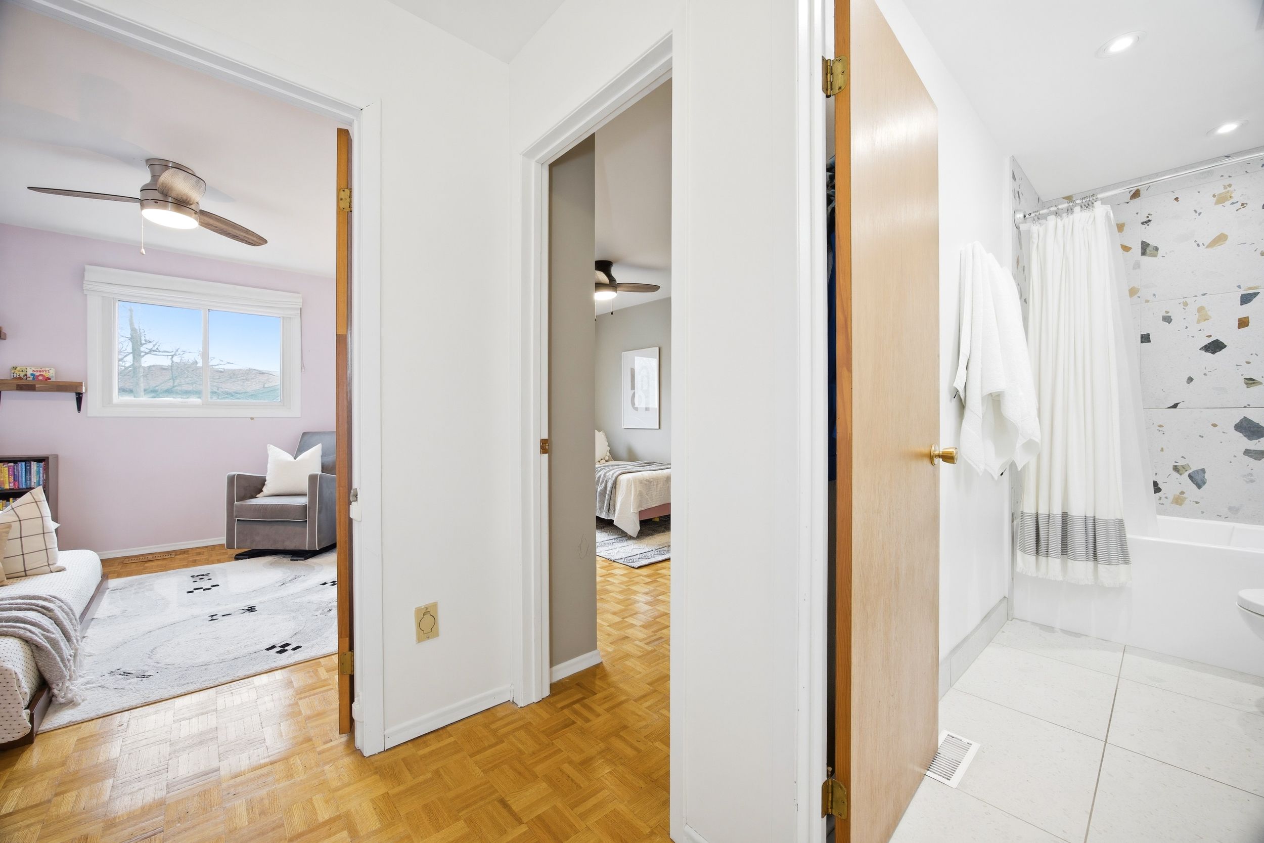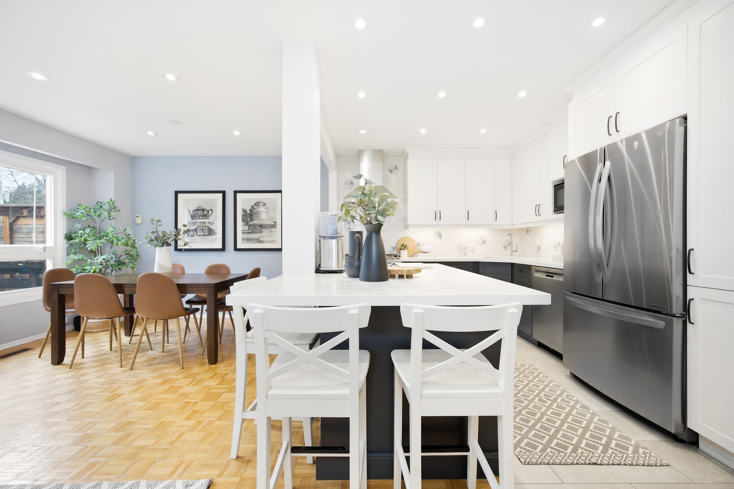 Welcome to 2807 st. Clair ave east - a beautifully renovated family home offering 2,000 sq ft of finished living space, in a prime east york pocket. Set back from st. Clair, this airy three-level home is the perfect intersection of vibrant style and functionality. The main floor features a large custom eat-in kitchen and open-concept dining and living area, with a walk-out to the back deck and a private backyard that backs onto a quiet residential enclave. Upstairs, you'll find three generous bedrooms, including a spacious primary with a walk-through closet and ensuite. A fully renovated four-piece bathroom, thoughtful design details, and ample storage. The finished basement with high ceilings & fireplace provides versatile additional living space - ideal for a rec room, home office, or gym - along with a substantial storage room. The low-maintenance backyard is perfect for outdoor dining and play, while the quiet laneway behind is ideal for scootering or learning to ride a bike. A built-in garage and private drive add everyday convenience. Surrounded by friendly neighbours, great schools, and a strong sense of community, this is a home that truly delivers on space, style, and setting.