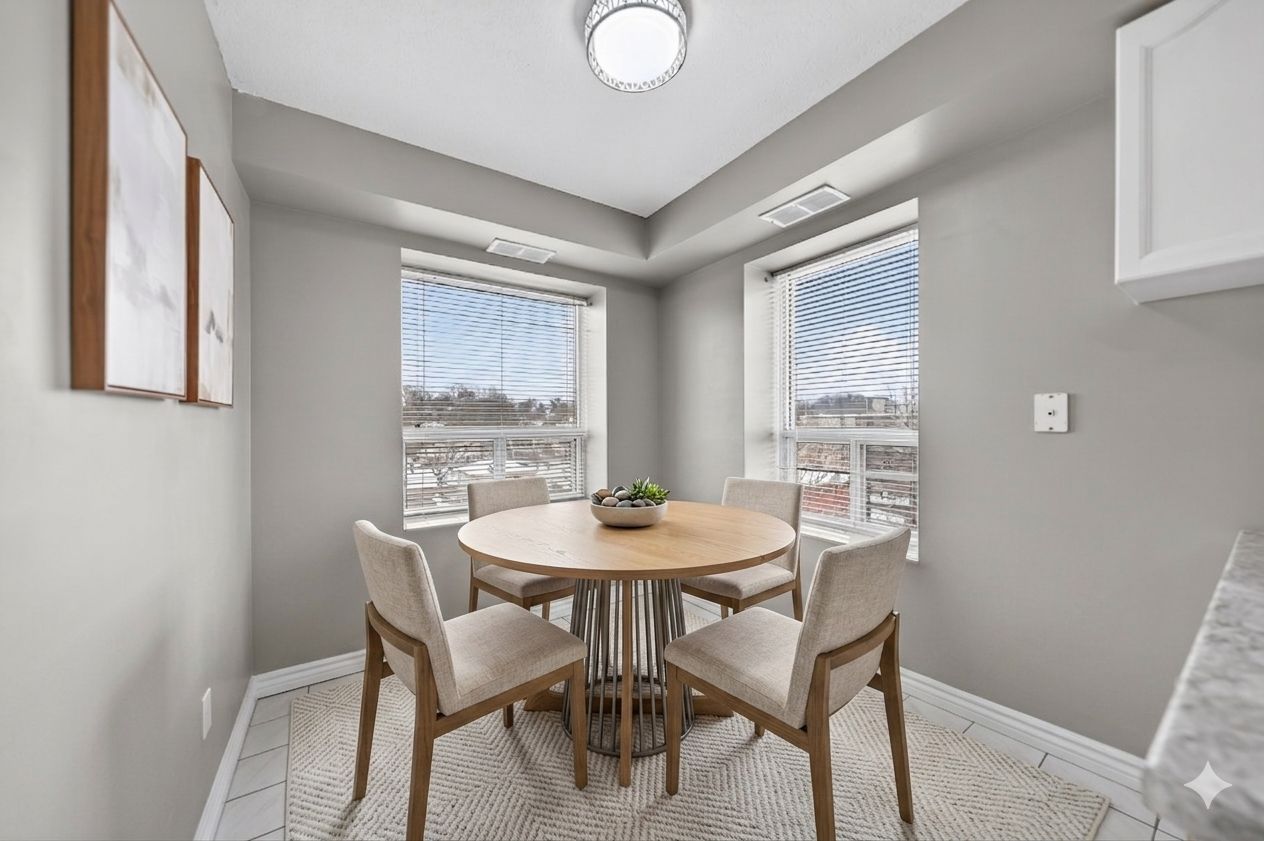A rare condo that truly feels like a home-spacious, sun-filled, and thoughtfully designed in one of guelph's most desirable communities. Welcome to this bright and spacious 2-bedroom, 2-bathroom carpet-free condo in the highly sought-after parkview terrace. Offering an exceptionally generous layout with a true sense of space and flow, this home delivers the comfort and livability of a full-sized residence in a boutique mid-rise building with only four suites per floor-providing privacy, quiet, and a strong sense of community. Upon entry the suite has a welcoming foyer with tile flooring and a double closet that sets the tone for the thoughtfully maintained interior. The open-concept living and dining areas are filled with natural light and enhanced by modern flooring, a gas fireplace, a neutral palette, updated lighting, and a new furnace for year-round comfort. The kitchen features white cabinetry, stainless steel appliances, and a spacious eat-in area, with in-suite stackable laundry conveniently tucked away in the kitchen. Expansive principal rooms offer excellent versatility for you and your guests, with large windows bringing in beautiful morning light and a private balcony overlooking a peaceful, tree-lined street. The primary bedroom is a true retreat, featuring two large windows, dual closets, and a private ensuite with a tub, separate shower, and generous vanity space. The second bedroom is bright and flexible, with easy access to a full bathroom complete with a stand-up shower, granite vanity, and additional storage. Residents enjoy a pet-friendly building with excellent amenities including a rooftop terrace, bbq area, sauna, gym, and party room. Ideally located just minutes from downtown guelph, you're close to cafés, shops, trails, the farmers' market, and the hanlon expressway. This suite offers a rare blend of space, light, and privacy-offering the comfort of home with the ease of condo living. *one photo virtually staged*.