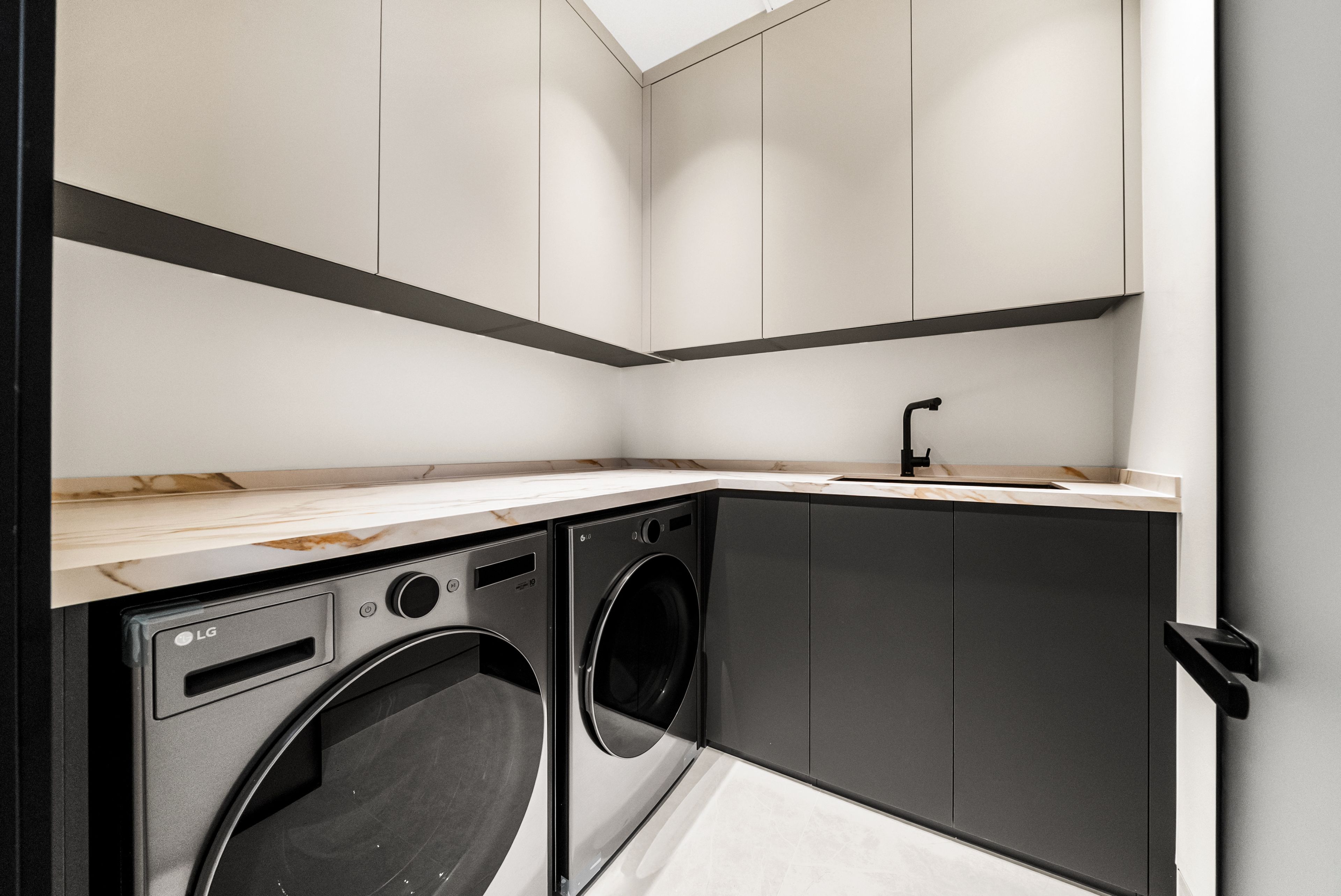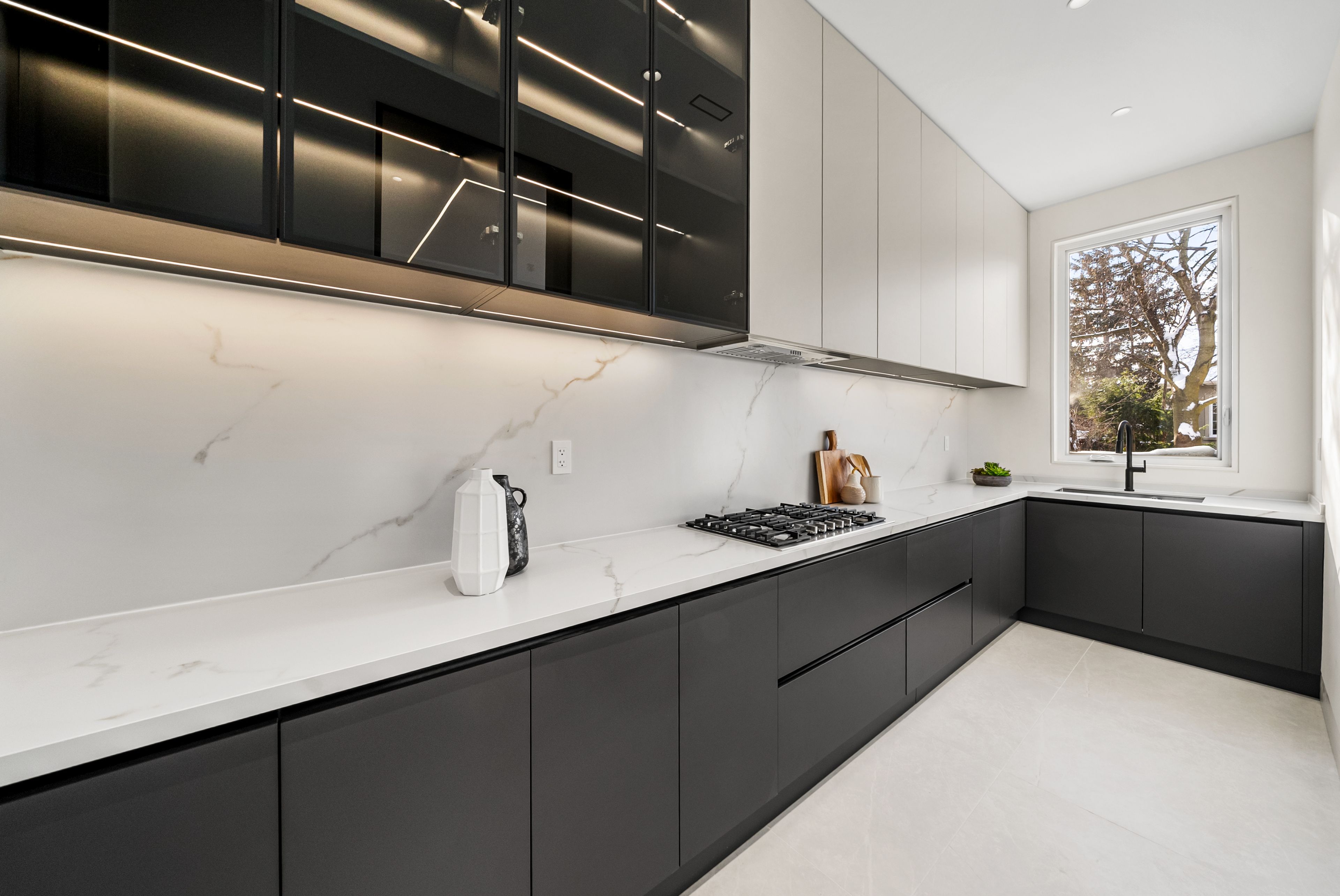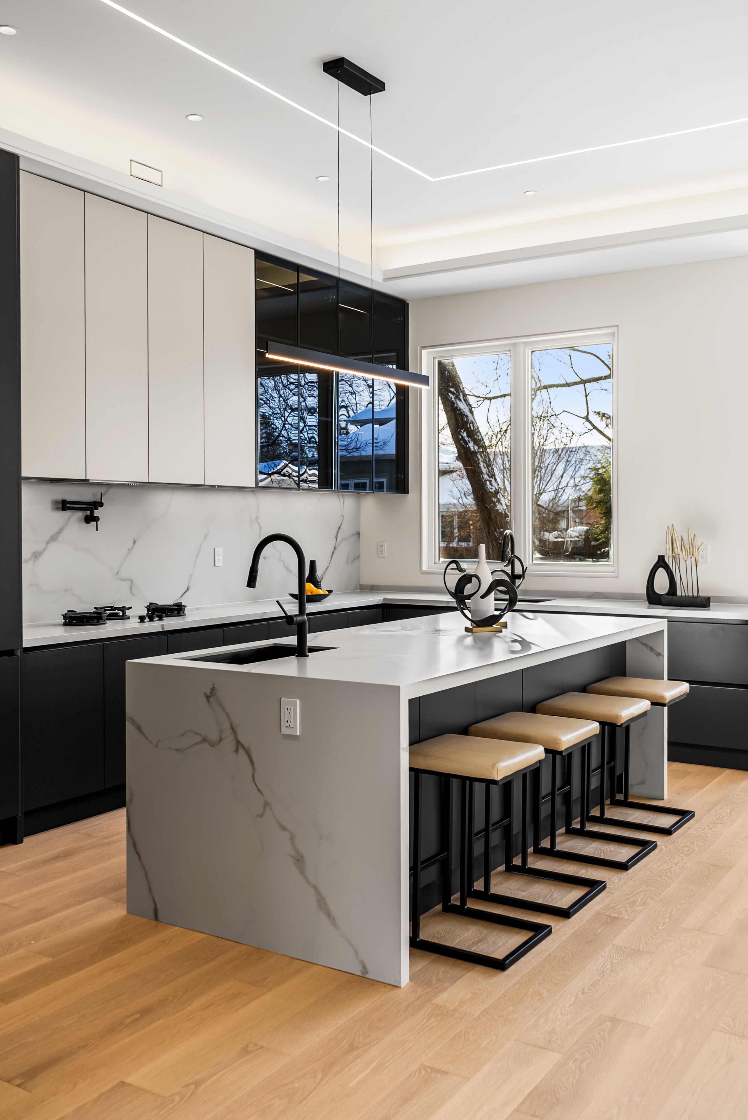 • High-end kitchen with built-in appliances and a second kitchen area.
