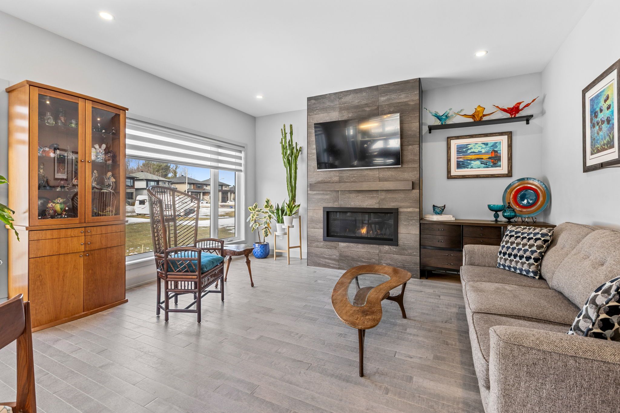 • Bright living spaces feature natural light and cozy gas fireplace.