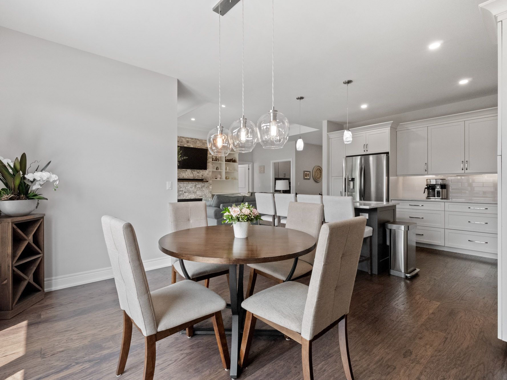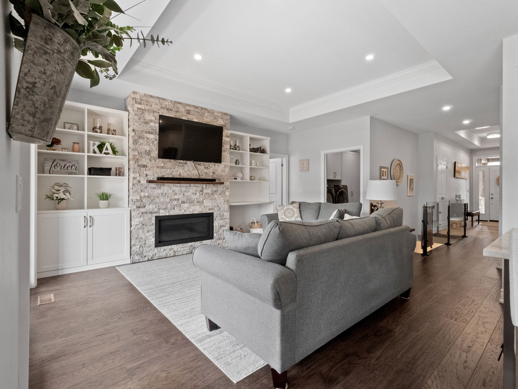 Welcome to 281 regatta drive, you wont want to leave after seeing this stunning, one-of-a-kind brick bungalow. This five-year-old custom-built home was thoughtfully designed with both quality and aesthetics in mind. Located near the recreational canal and rowing club, parks, and splash pads, this growing area is ideal for young families looking to settle into a vibrant community. This home has been fully upgraded, inside and out. From its striking design and curated colour palette to the eye-catching timber accents, dark glass-paneled garage doors, covered front porch, and bold orange front door, its like something out of a magazine. The property features a fully fenced yard, oversized double garage, double driveway, and a newly installed stamped concrete walkway and patio. Inside, you'll find a grand entrance with 9-foot ceilings throughout, and impressive 10-foot tray ceilings in the living room, primary bedroom, and foyer. Additional highlights include engineered hardwood floors, a glass-panel staircase, and built-in shelving flanking a gas fireplace set against a beautiful stone wall. The kitchen is a chefs dream, featuring elegant cabinetry, quartz countertops, a large island with seating, and a convenient pot-filler faucet above the stove. The exceptional primary bedroom includes a wood-accent wall, a spacious walk-in closet, and a luxurious 4-piece ensuite with quartz-topped vanity. Main floor laundry is complete with built-in cupboards and a bench. A security system is also available for your peace of mind. The fully finished, bright lower level features two additional bedrooms, an office, and a spacious rec room with a second gas fireplace and bar area. The lower-level bathroom feels like a spa, with a 5-piece layout including a designer soaker tub, jetted shower, double-sink vanity, heated floors and separate toilet room. This truly is a one-of-a-kind home. Exciting new proposed mixed commercial development , schools, community center , slated for area