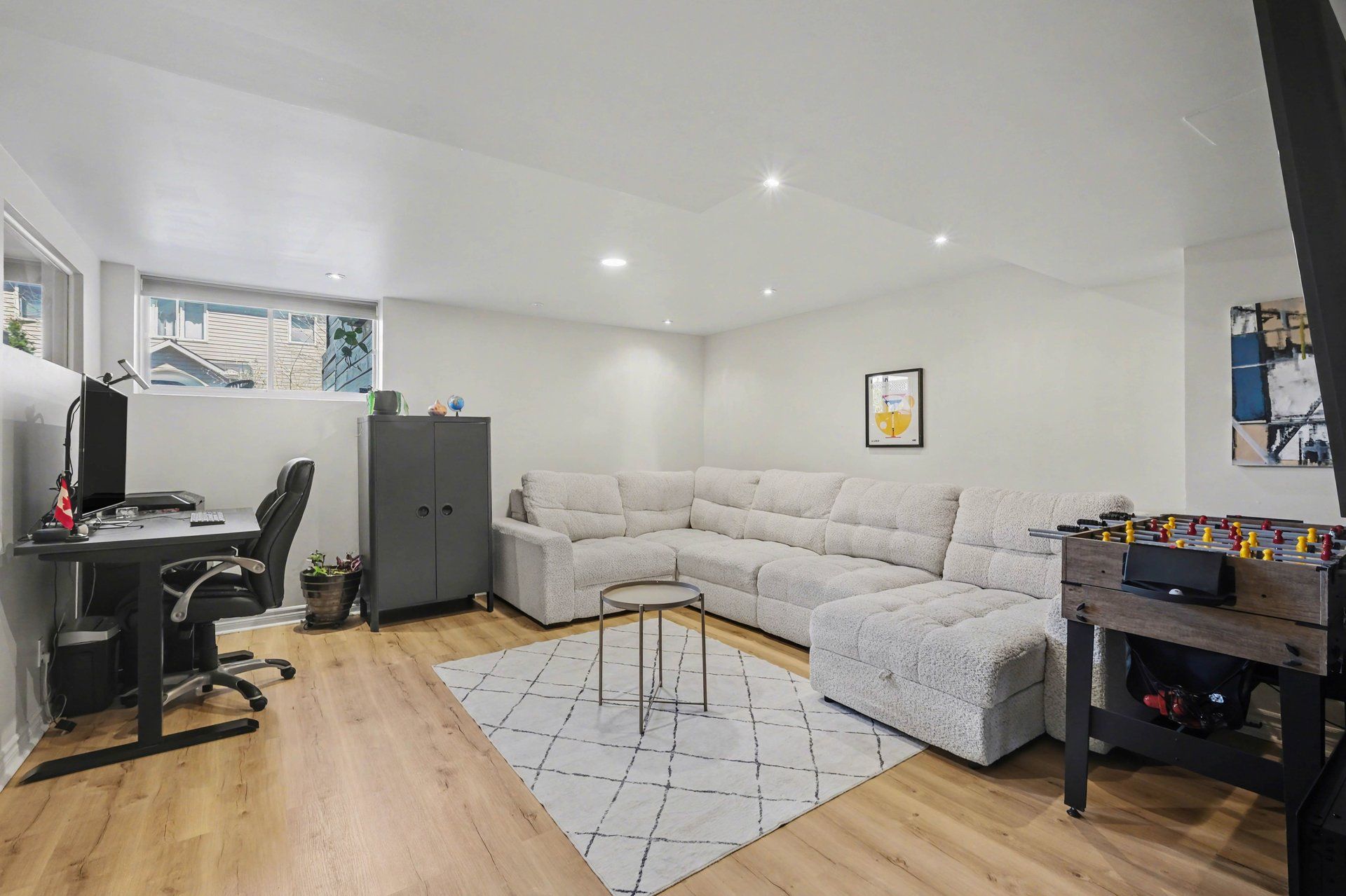Welcome to one of minto's most sought-after models - the royalton. This is where smart design meets everyday luxury. From the moment you arrive, the curb appeal sets the tone-clean lines, a finished cement walkway, and a home that immediately stands out from the rest. Step inside to a bright, expansive foyer that opens into a thoughtfully designed main level featuring rich hardwood and tile flooring throughout. The layout flows effortlessly-anchored by a spacious living area and a kitchen built for both function and connection. The kitchen delivers-ample cabinetry, generous counter space, and a central island-all seamlessly connected to the family room and eating area, creating a true heart-of-the-home experience. And it all overlooks a fully fenced backyard, giving you privacy and space to unwind or entertain. Upstairs, you'll find four well-proportioned bedrooms, including a primary retreat designed to impress-complete with a private sitting area and ensuite bath, offering the perfect escape at the end of the day. The finished lower level expands your living space with a versatile recreation room-ideal for movie nights. Well-utilized space from top to bottom. Inside garage entry. A layout that just works. This isn't just another home-it's a proven model in a location buyers consistently fight for.