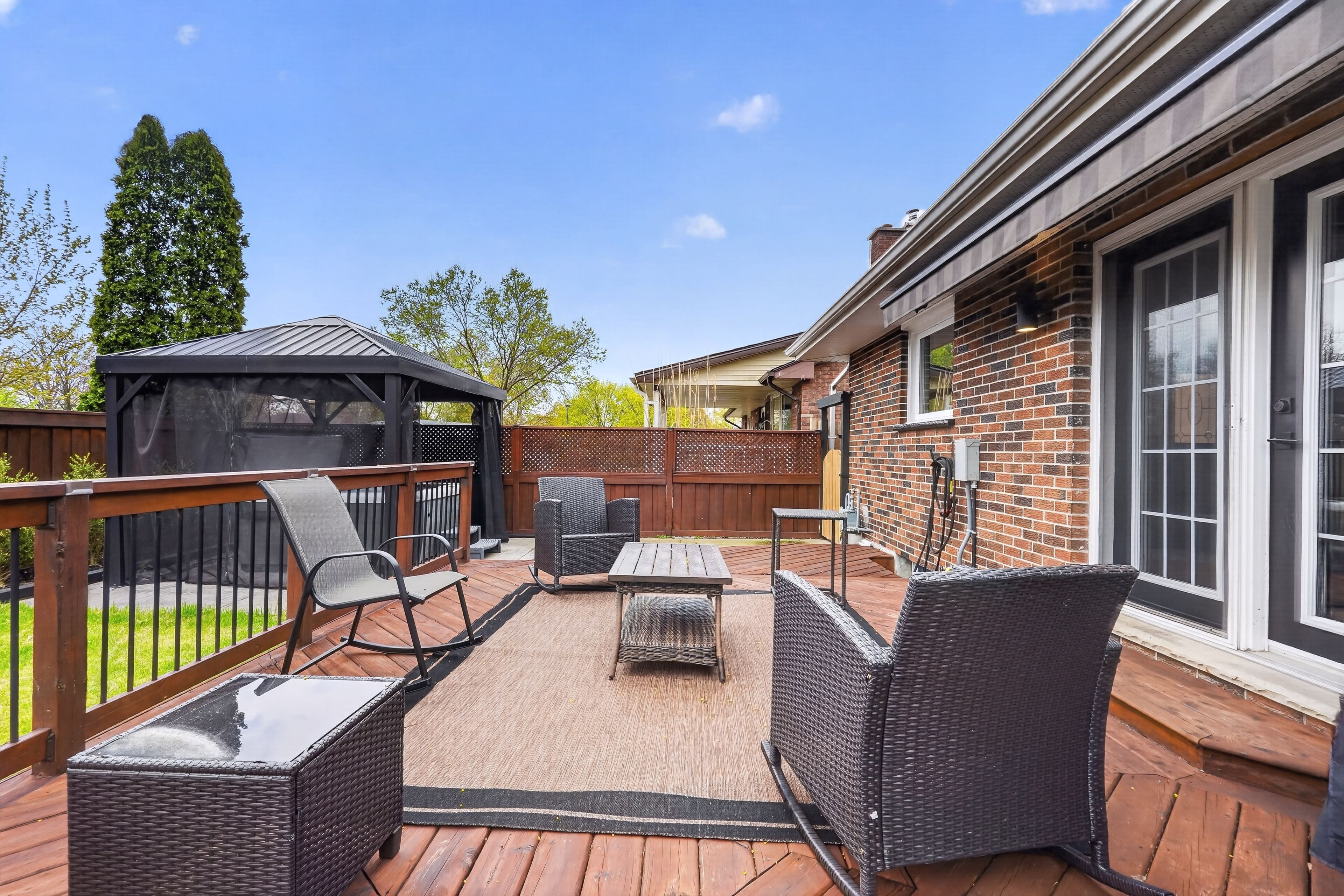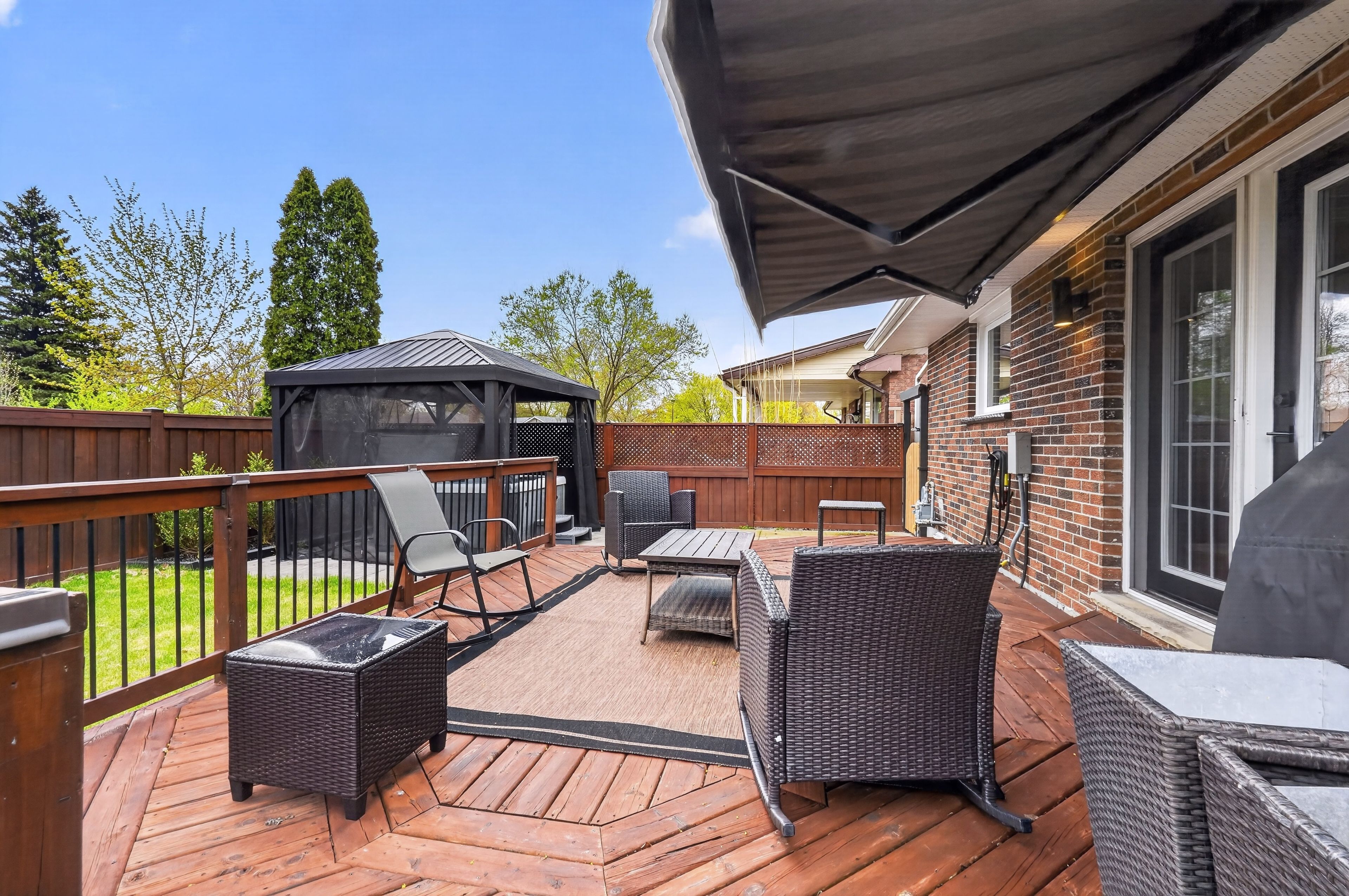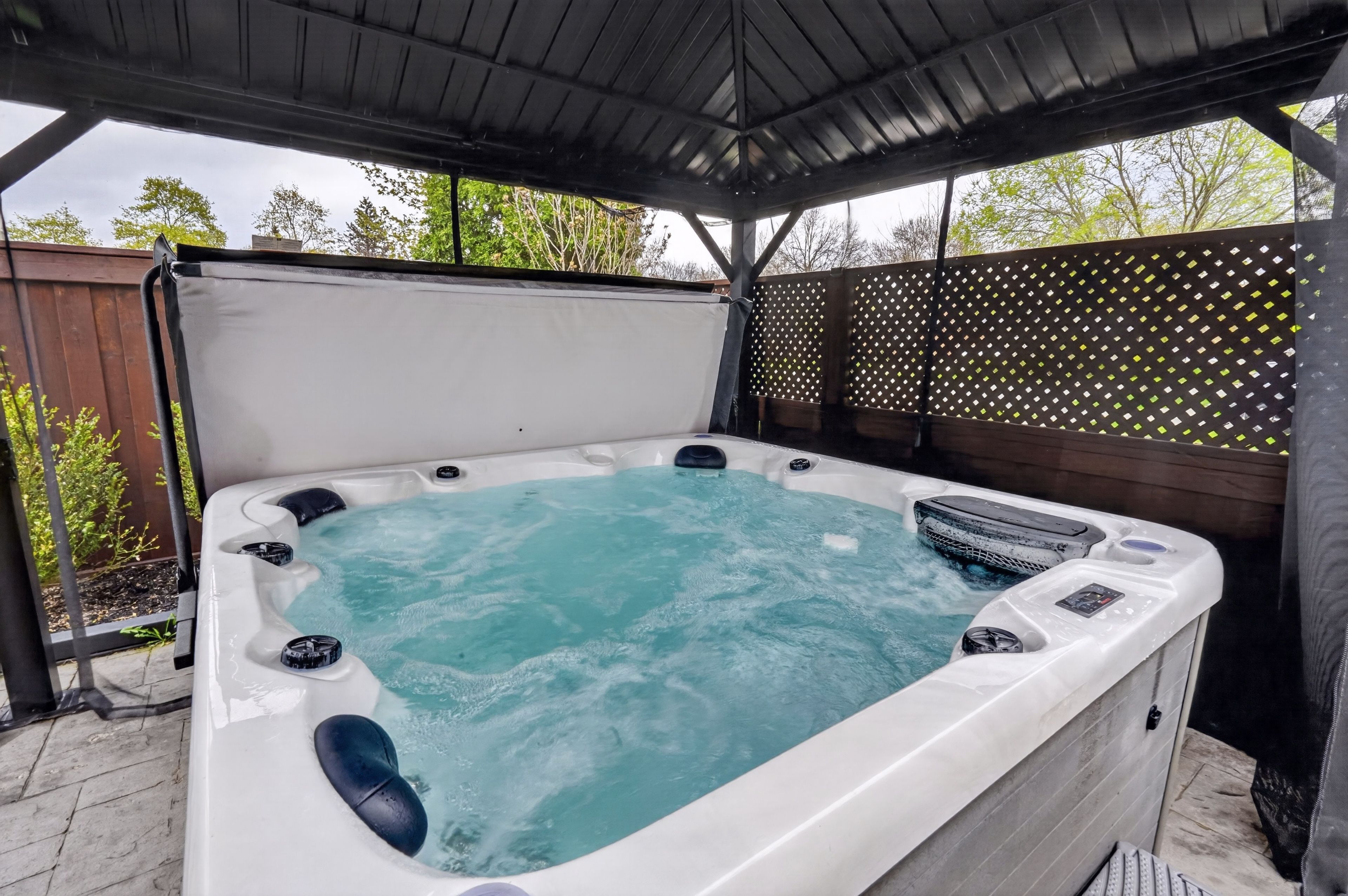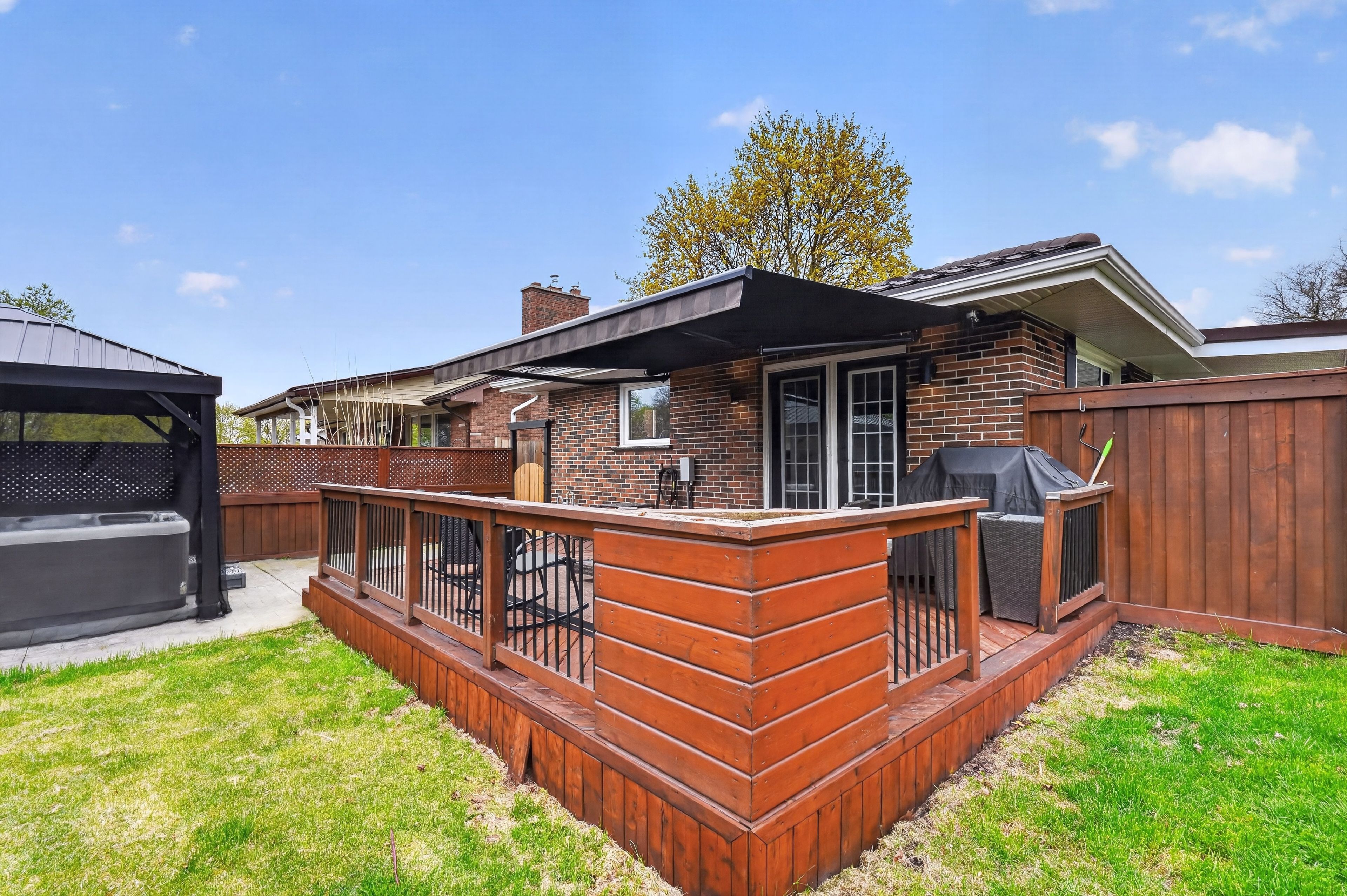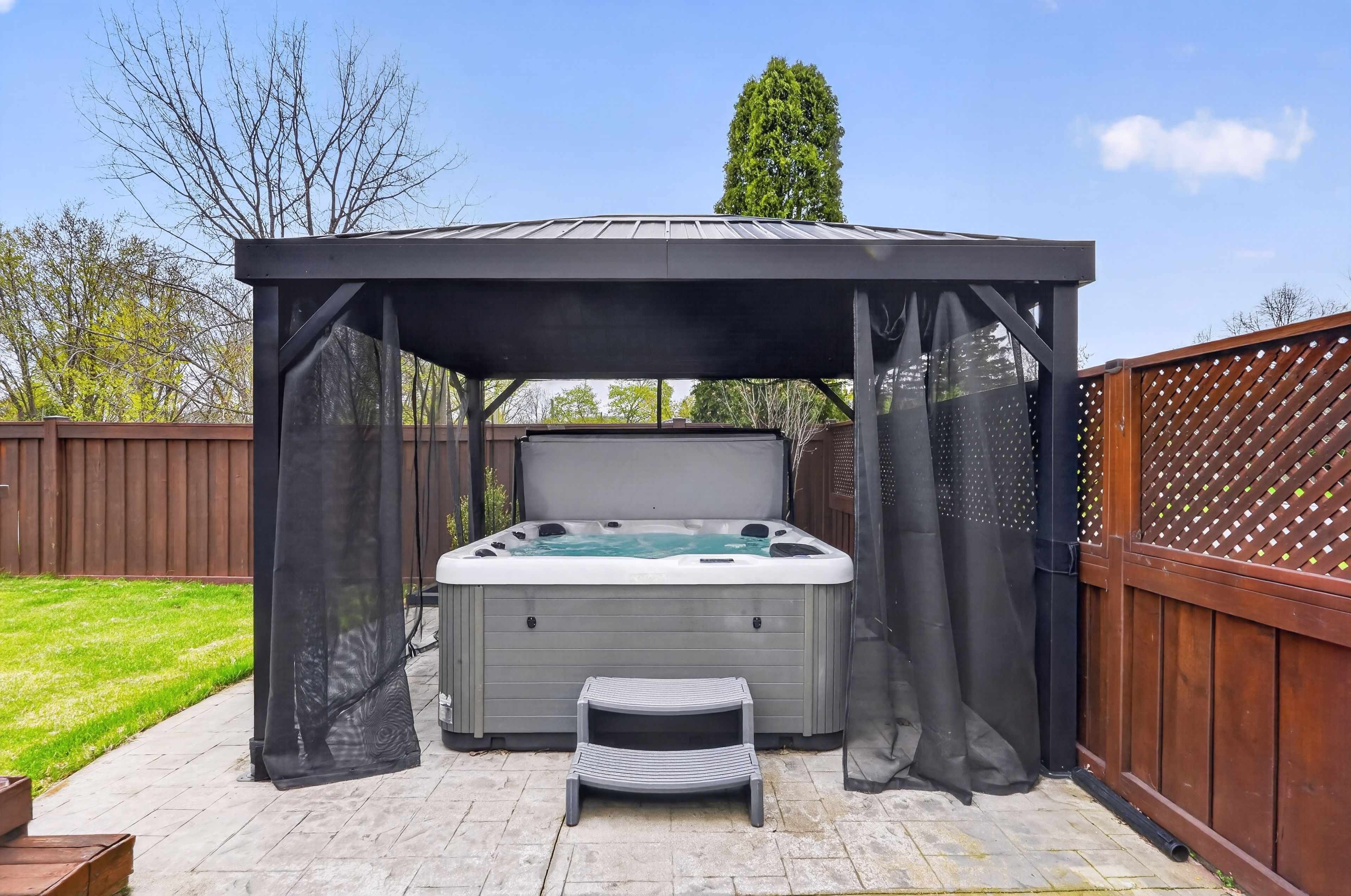 • Spacious backyard features a deck, gas BBQ hookup, and private gazebo with hot tub.