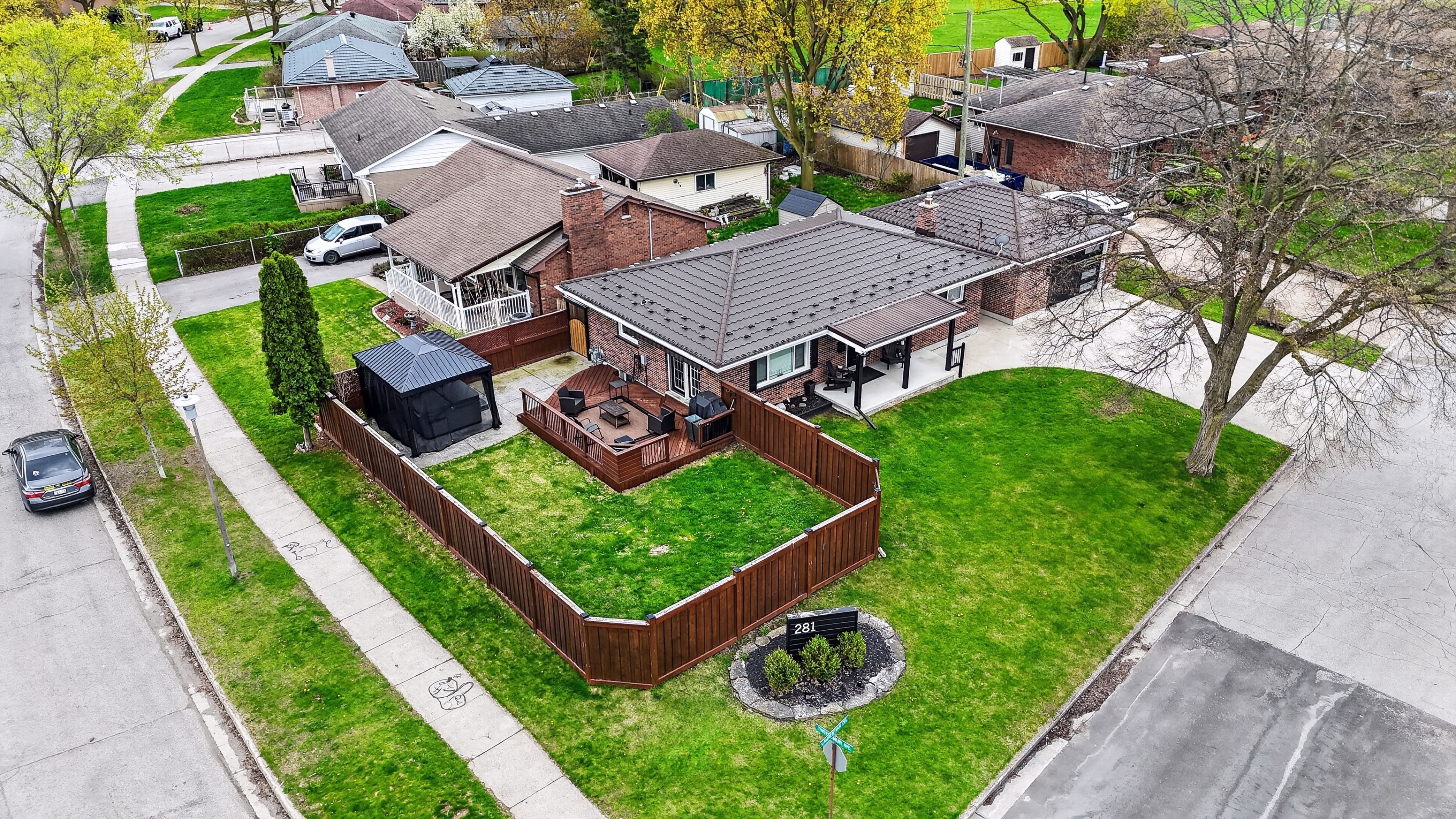 Welcome to 281 tweedsmuir ave., an all-brick bungalow situated in the fabulous fairmont neighborhood. This open-concept home has been fully updated and meticulously maintained over the years. Upon entering through the front door, you are greeted by a living room with natural light from large windows and patio doors that lead to the backyard. The open-concept kitchen features quartz countertops, a breakfast bar, & a separate dining area, making it perfect for entertaining & hosting family gatherings. Hardwood flooring in the main living area continues into the two generously sized bedrooms. Enjoy the fully updated spa bathroom, complete with a walk-in shower & standalone soaker tub. The lower level boasts of another large bedroom, a family room, a recently updated bathroom, & space to add a kitchenette. The oversized laundry room offers plenty of additional storage & includes a separate entrance from the garage, making it an ideal option for a granny suite or income-generating lower-level unit. The double-car garage & large concrete driveway provide parking for six or more vehicles. The spacious backyard features a deck complete with a gas hookup for the barbecue, & a private gazebo area with its own hot tub. The exterior has also been meticulously maintained & includes a large front porch overlooking laurentian st. Just steps from your door is access to a walking & cycling trail where the community can enjoy the outdoors year-round. Other updates and renovations include: power awning (2025), garage door opener 2025, metal roof (2014), windows (2014, 2023), bathrooms (2022, 2024), basement (2022), laundry room (2023), kitchen (2019), garage door (2022), hot tub (2022), metal pergola (2024), and paint/trim (2019, 2020). The hot water boiler system provides even heat distribution throughout the winter, while ductless air conditioning units keep the home cool in the summer. With nothing left to do but move in, don't miss your opportunity to make this home your own.