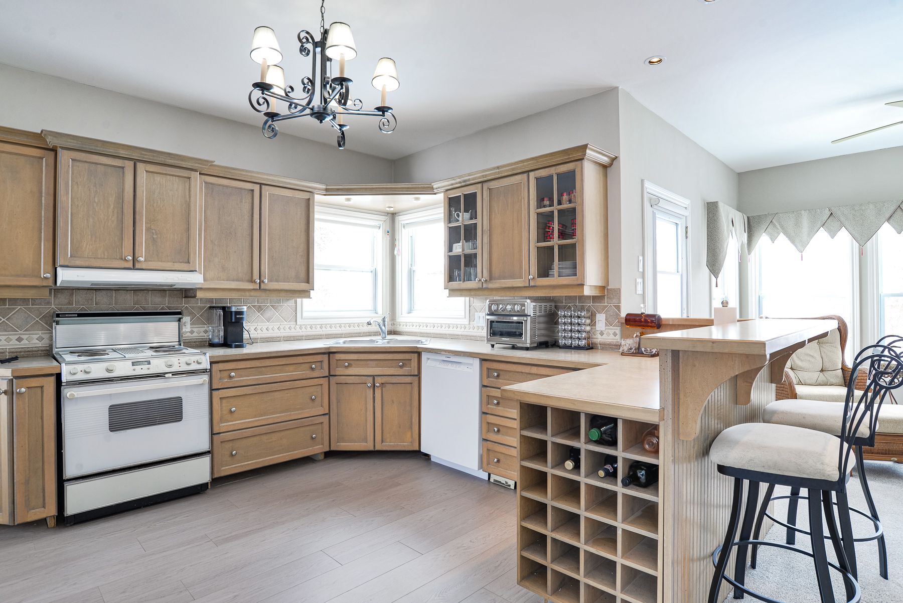• Bright open-concept bungalow with 9-foot ceilings and a well-appointed kitchen.