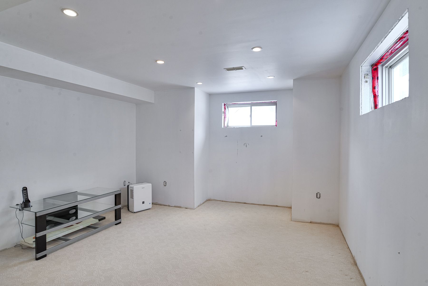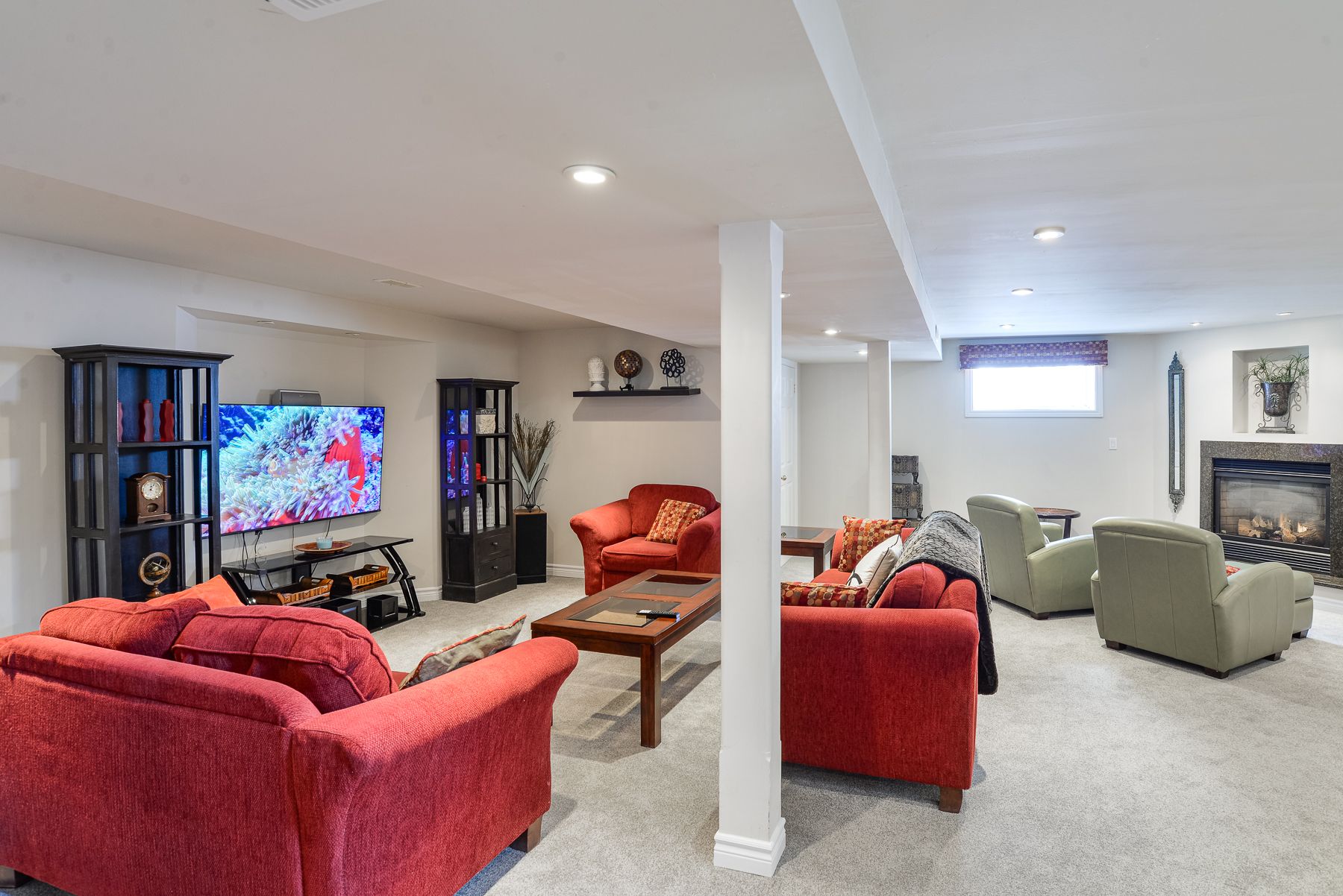 • Finished basement recreation room with gas fireplace and games area.
