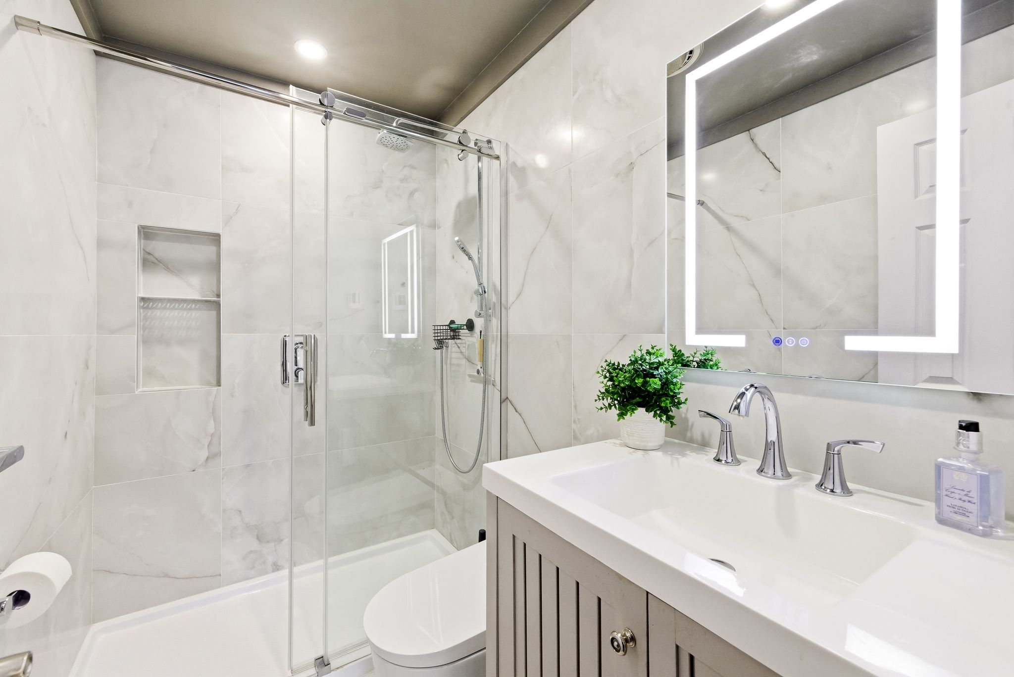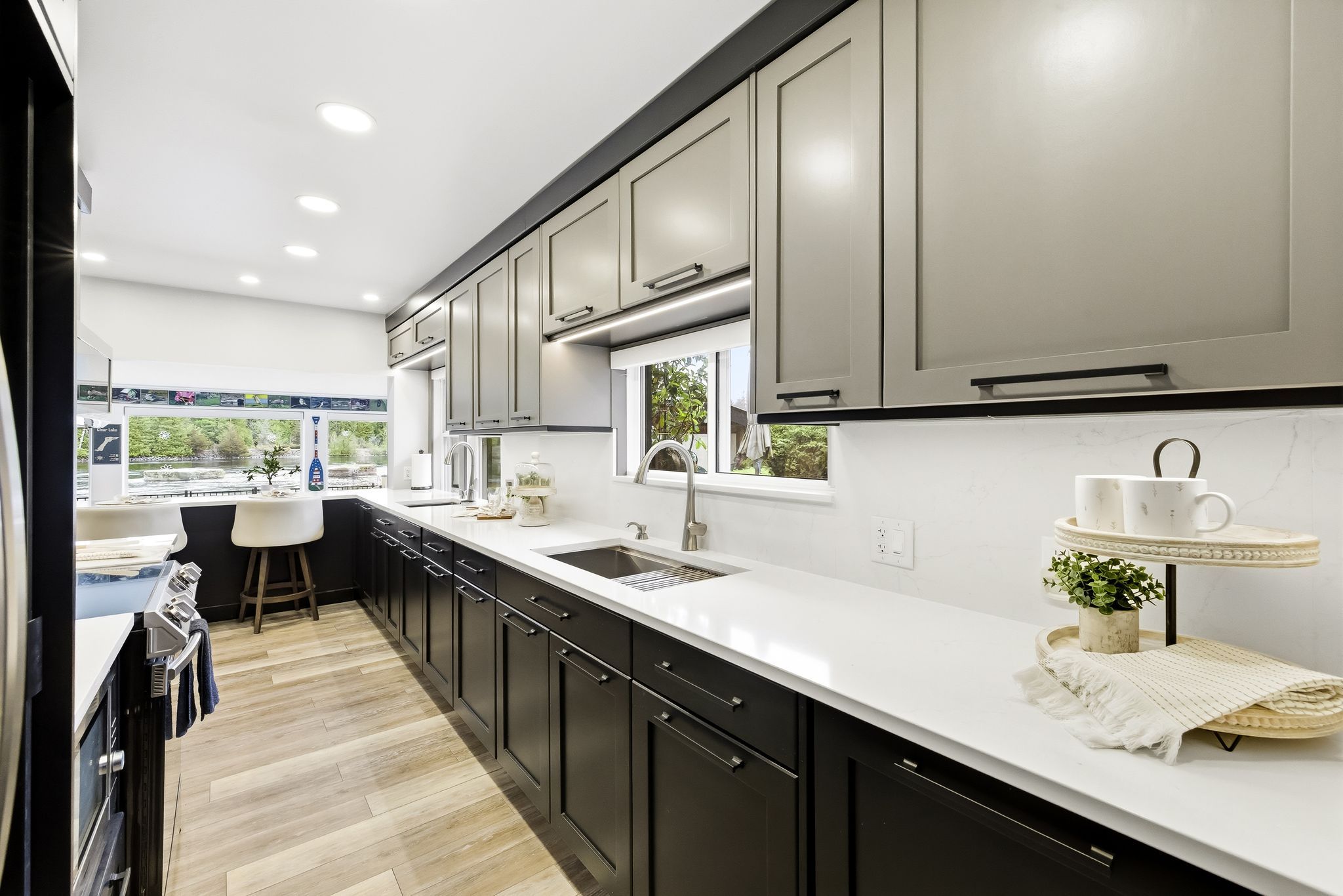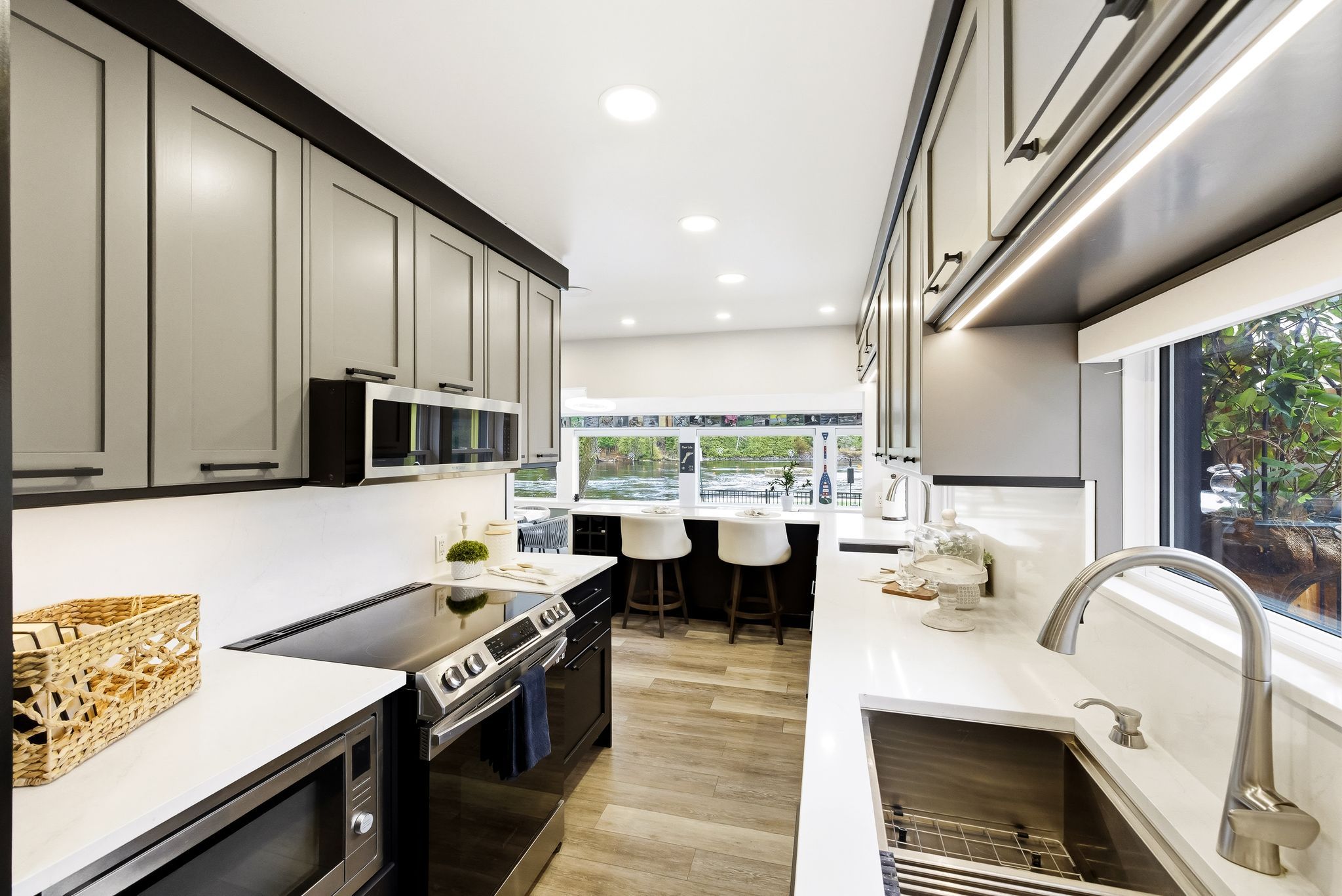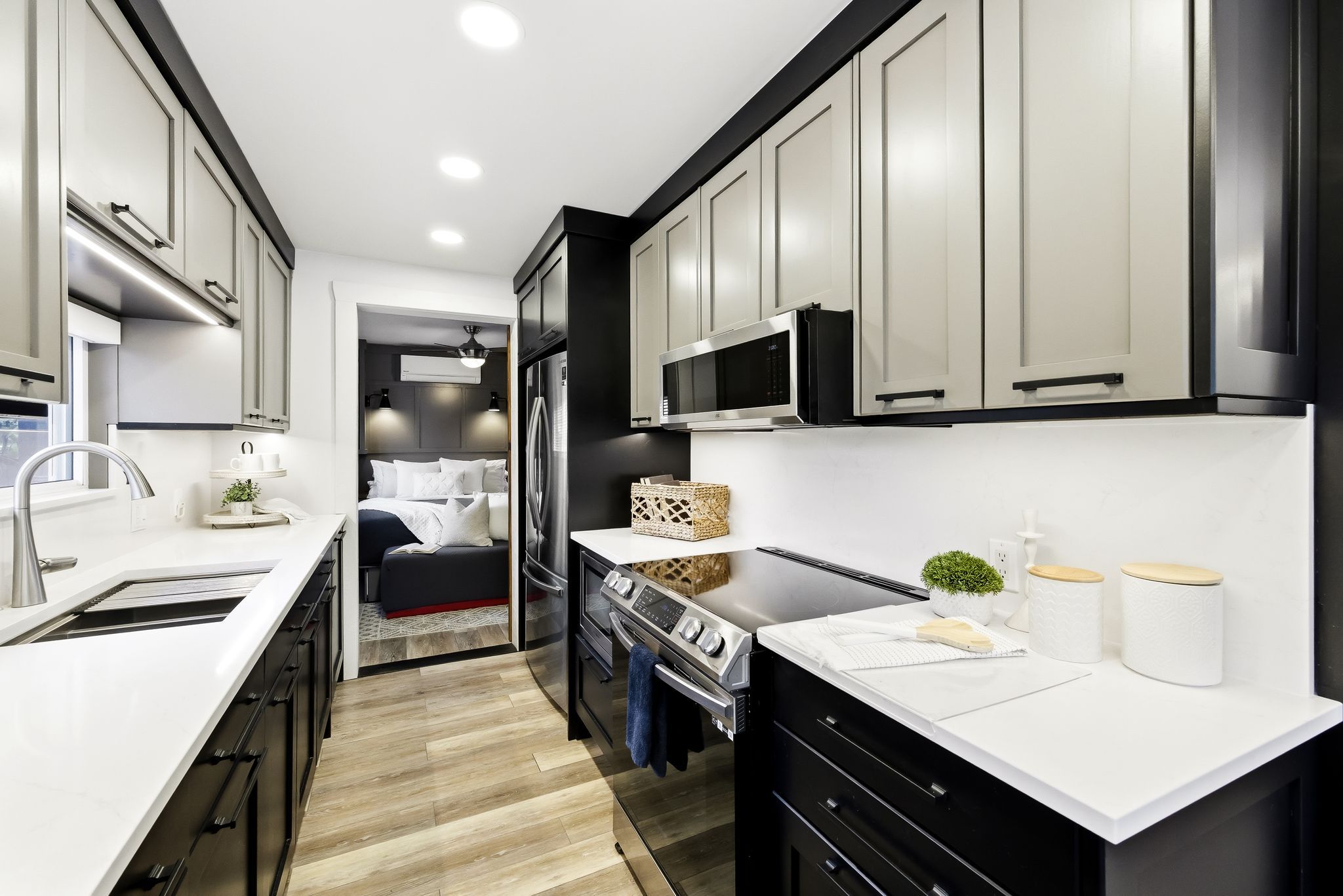 • Modern kitchen with quartz countertops and all new stainless steel appliances.