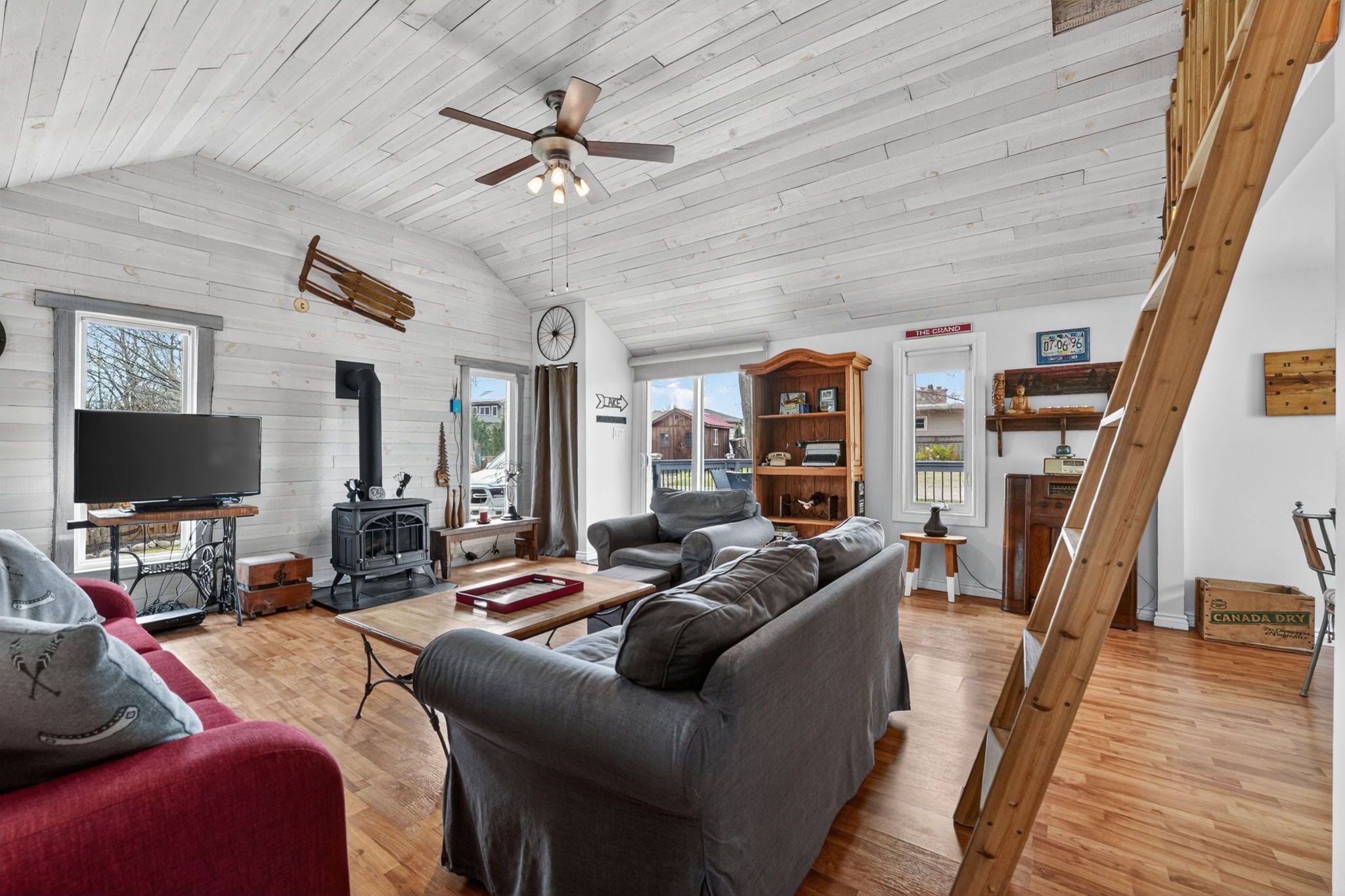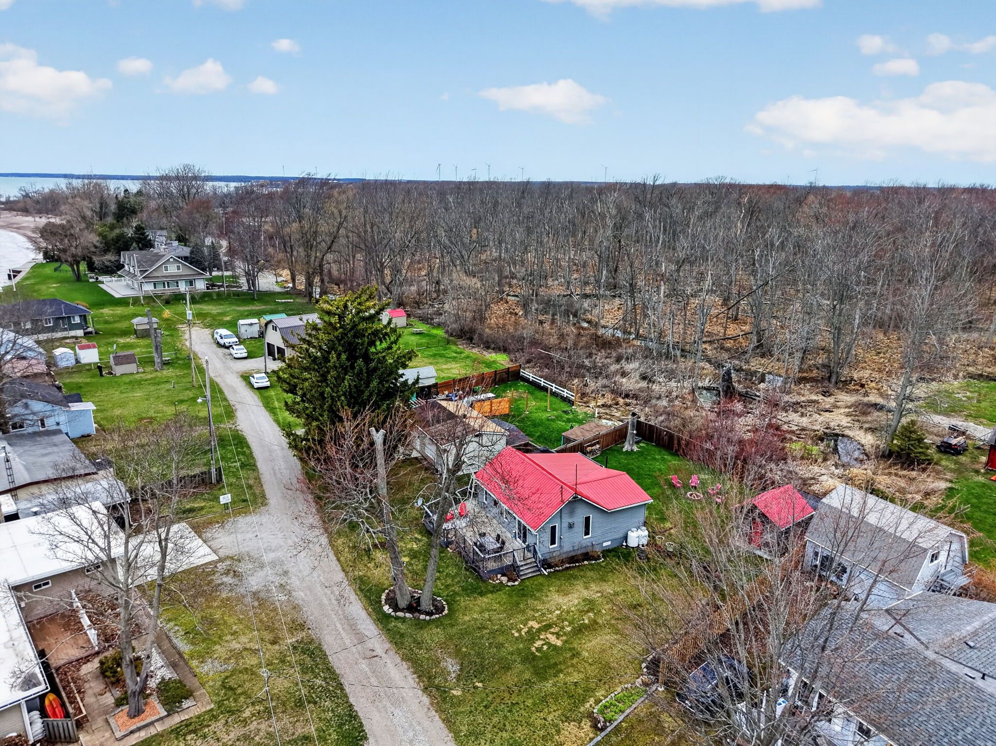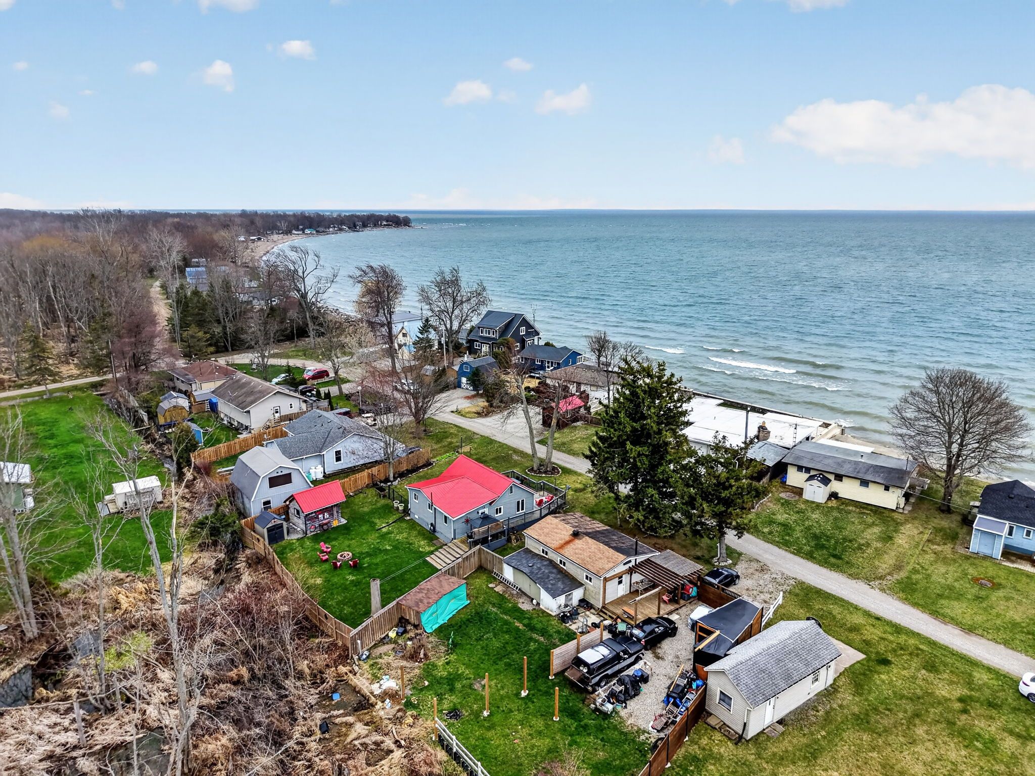 Charming year-round lakeside retreat in a serene & private setting! Welcome to 'cottage country south' - this two bedroom + loft retreat is ready for you to come and unwind. Just steps to the sandy shores of lake erie (including two right-of-ways), this beautifully renovated home (800sf) offers a tranquil lifestyle ideal for full-time living or a weekend getaway from the 'hustle & bustle' of the city! The property (75'x100') is fully fenced providing security, privacy, and a great space for kids and pets to play freely! Enjoy your morning coffee or evening nightcap on a spacious 12x26 south facing deck where gentle lake breezes & an array of birdsongs create a relaxing setting. Stepping inside, your eyes are immediately drawn to the open concept layout, the cleanliness, and the 'nautical' inspired décor & finishes. The main focal point is a 17x17 living room highlighted by a 10' cathedral ceiling lined with 'white-wash' t/g pine - pulled straight from a magazine! The same flawless laminate flooring leads you to a defined dining space drenched with natural light and seamless connected to a 'ultra' functional galley-style kitchen. An updated and spacious 3pc bath serves this cottage. Completing this cottage are the sleeping quarters - two practical sized bedrooms + bonus loft space with an extra bed - perfect for family/friends that are sure to visit you at the lake! Bonus: spray-foamed crawlspace '22, septic pumped in '25, hwt '21, 12x10 shed w/ hydro, 7x7 shed, metal roof '20, patio door '21, exterior paint '21, +++! Avoid the traffic and inflated prices in the north - and 'escape to the lake' in the south - 5 min to town and all its' amenities, close to golf & boat slip. There's 'no life like lake life'!