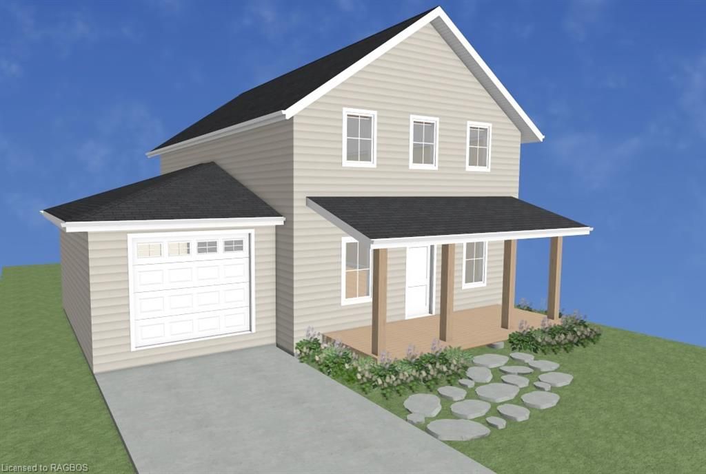 Discover the perfect custom two storey just three blocks away from the beach in southampton, on! This net zero certified home offers a main floor bedroom or office, spacious mudroom, a powder room, as well as an amazing great room complete with gas fireplace. Upstairs you have the primary suite/en suite, two more bedrooms, full bathroom and conveniently located laundry room! You have the option to finish the basement (extra cost) if more space is needed. The home features a charming covered front porch and is located on a quiet cul-de-sac. The lot is uniquely situated across from a quiet and private water treatment plant, ensuring no neighbors across the road. Trees and a trail will be added in front for a pleasant view. Dennison homes inc., a reputable local custom builder, could start spring 2026. With their own interior design team, amazing carpenters and a custom cabinet shop they can make all of your dreams come true! Don't miss out on this opportunity to build your dream home in a fantastic location!
