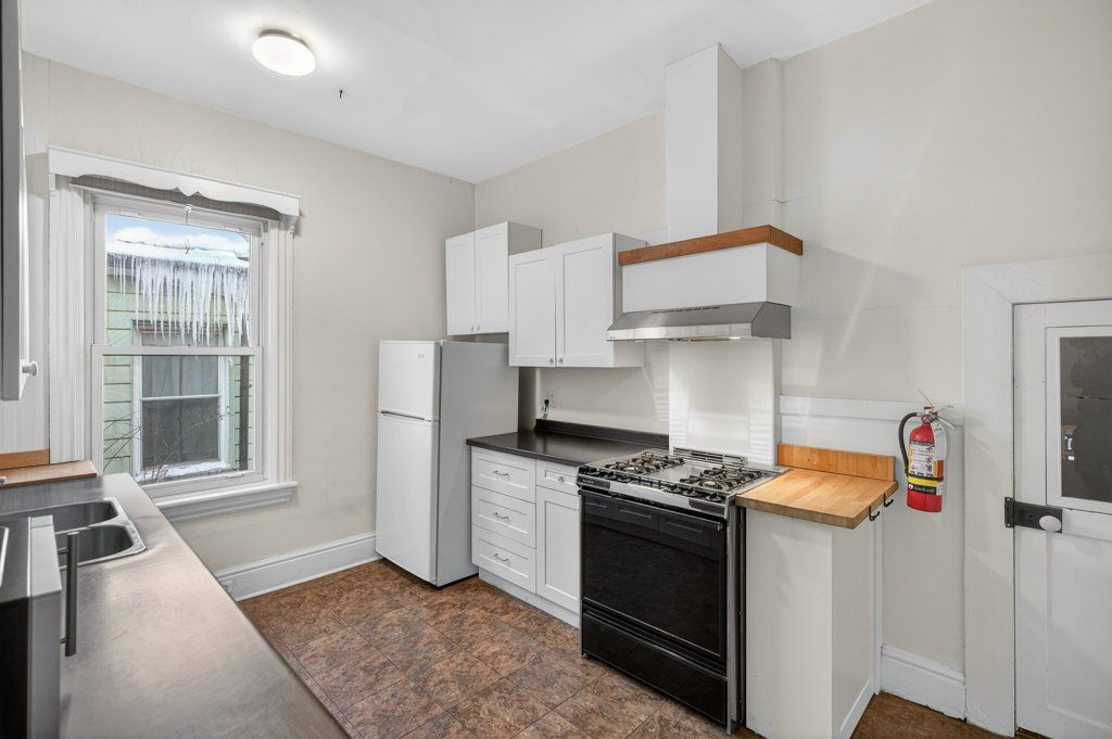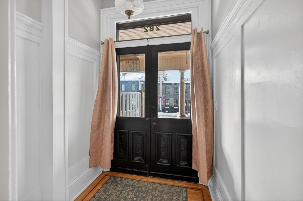 Charming 1895 victorian rowhouse steps from hess village. Step back in time while enjoying modern comforts in this character-rich home. Featuring high ceilings, original hardwood floors, this home retains its historic charm while boasting updated mechanics, including plumbing, electrical, furnace, roof, and flashing. The main floor offers a living room with a gas fireplace, two spacious bedrooms, and a generous eat-in kitchen. This chef's haven is complete with a double sink, gas stove, skylight, pot lights, and a large window overlooking the yard. The kitchen also includes a built-in dishwasher and offers convenient access to the yard. Two 2pc bathrooms are located on the main floor, with one featuring hook-ups for a tub. Upstairs, the second level features another kitchen (with double sink and built-in dishwasher), a living room, a 3pc bathroom, bedroom, and a laundry room. The third level offers an additional two bedrooms. This home presents a fantastic opportunity for investors or homeowners looking for rental income. It can easily be converted back into two units (legal non-conforming) a 2-bedrm unit with laundry on the main and basement level, and a 3-bedrm unit with laundry on the upper levels. Located in the highly sought-after hess village, this property is just steps away from trendy shops, restaurants, and entertainment. The backyard is fully fenced, with new sod being added and a shed for extra storage. You'll enjoy easy access to the main level kitchen, as well as a separate stairway leading to the second level. There's plenty of street parking available, and the yard could easily be reduced in size to add rear parking. Original features add unique charm to this property: restored windows, original hardware with beveled glass on the front door, abundant hardwood throughout. Parking can be added via the rear alley. Seller is open to rebating the cost or coordinating installation after closing, contingent on an acceptable sale price.