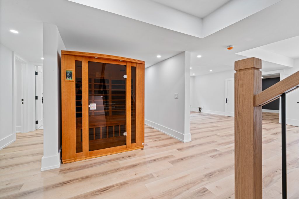 • Fully finished basement includes a home theatre, gym, and sauna.