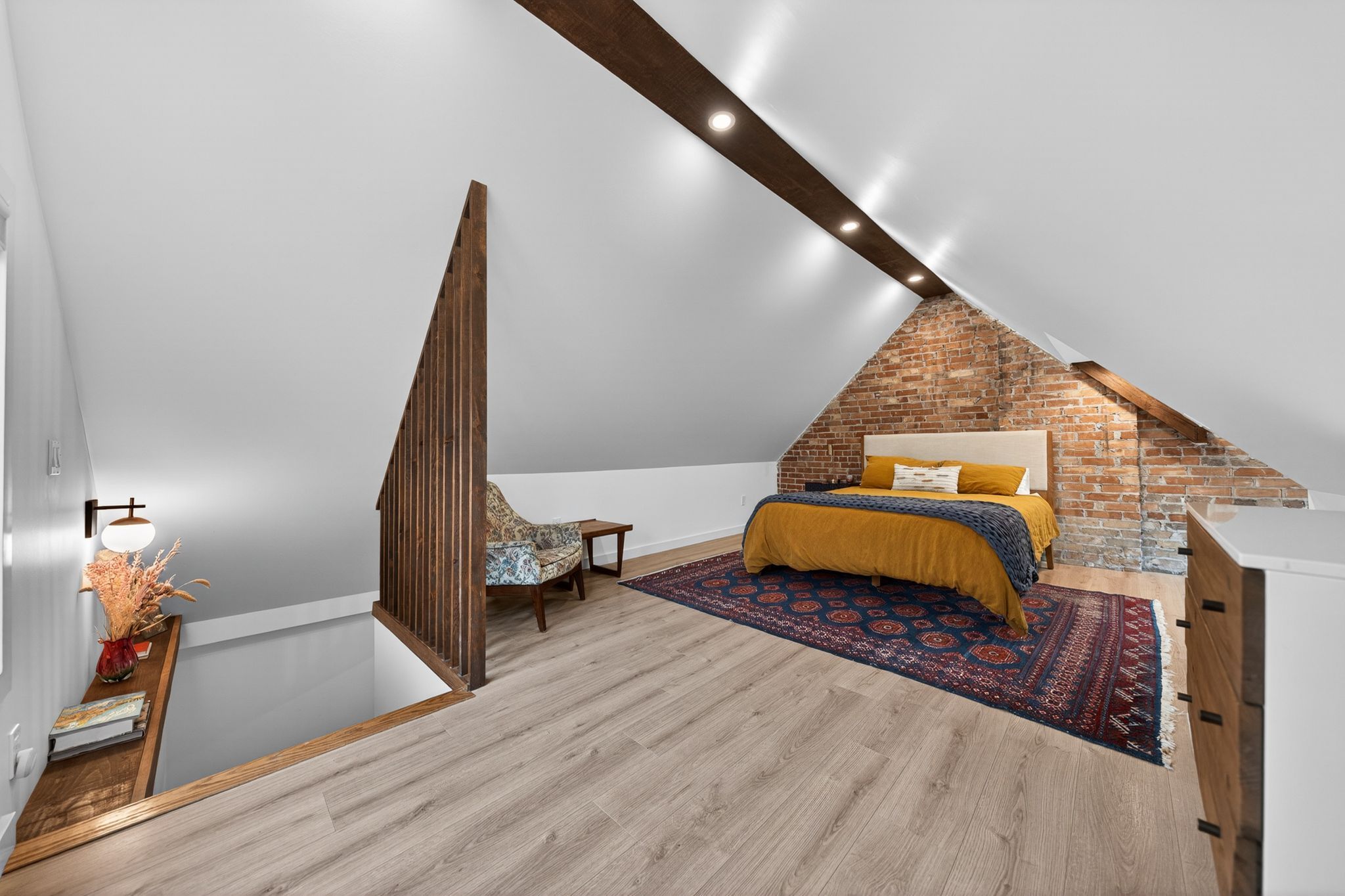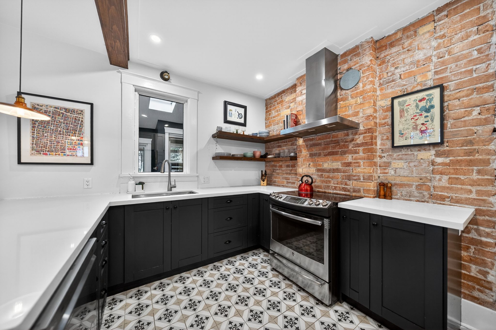 Step into a home where history and modern living come together beautifully. This thoughtfully updated century home offers warmth, character, and versatility with 3 bedrooms plus a loft-style primary retreat, offering a layout that easily adapts to suit any lifestyle. Picture natural light pouring through large windows, welcoming you home as soon as you step through the front door. The kitchen blends style and function with open shelving, exposed brick, wood beams and a breakfast bar, creating a space that's as inviting for everyday meals as it is for gathering with friends. Curl up by the cosy fireplace in the living room to enjoy quiet evenings, morning coffee, or relaxing weekends at home. The loft houses the unique primary bedroom, beautiful brick detail, and abundant natural light. Three additional bedrooms provide plenty of flexibility for family, guests, or work-from-home needs, while the renovated bathroom creates a spa-like atmosphere in your own home. The basement holds an additional updated 3 piece bathroom, and the rec room adds more functional space with many uses: home gym, playroom, media room, hobby space, or private office. A spacious storage room keeps everyday life organized and clutter-free. Outside, the fully fenced backyard provides room to relax, garden, or host summer gatherings, while the large shed offers a home for bikes, tools, and outdoor gear. From here, you can walk to downtown kitchener and uptown waterloo, featuring some of the region's best restaurants, cafés, shops, and events. Grand river hospital is around the corner, while the university of waterloo and wilfrid laurier university are nearby. Situated in the heart of waterloo region's thriving tech corridor, with companies like google and many innovative startups, this area offers a dynamic mix of opportunity, culture, and community. A home with personality, flexible living space, and an unbeatable walkable location-move-in ready and waiting for its next chapter.