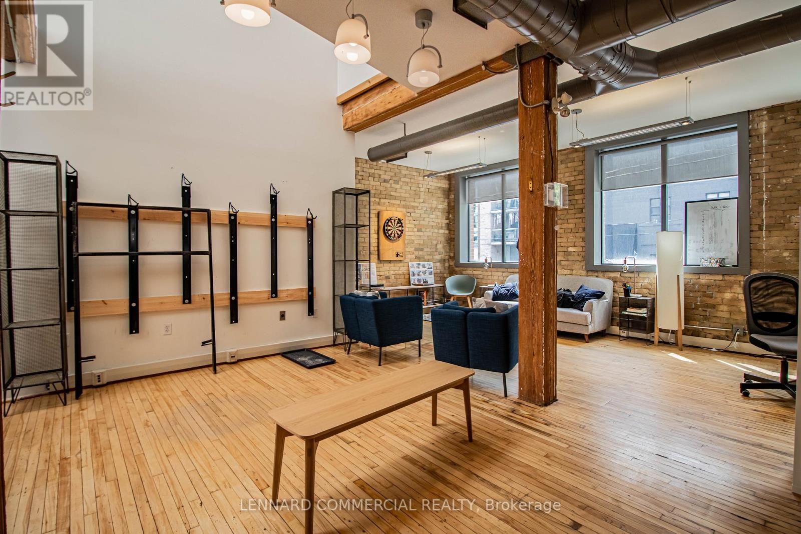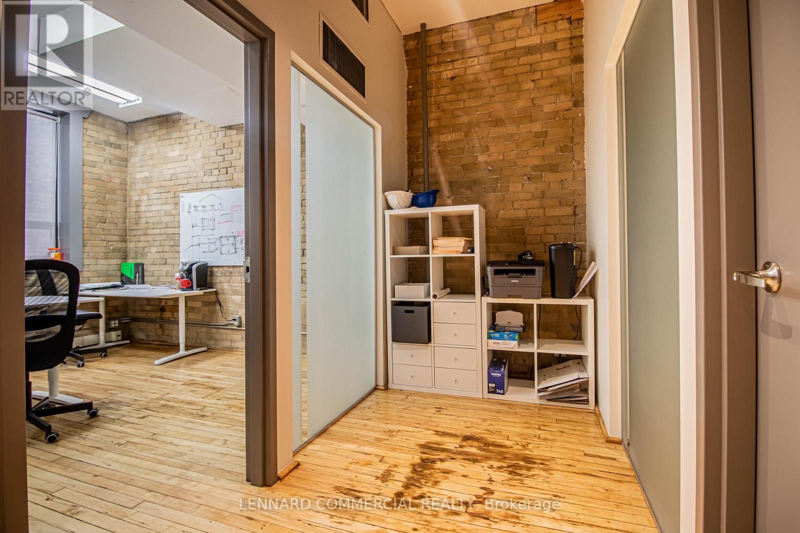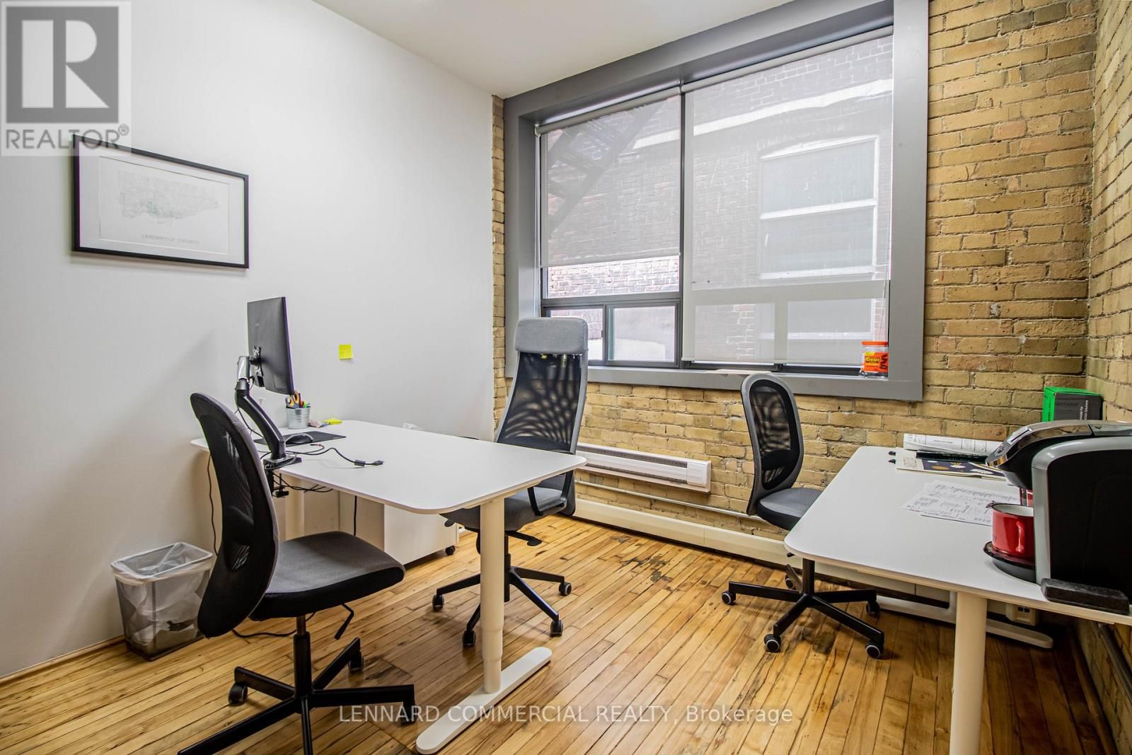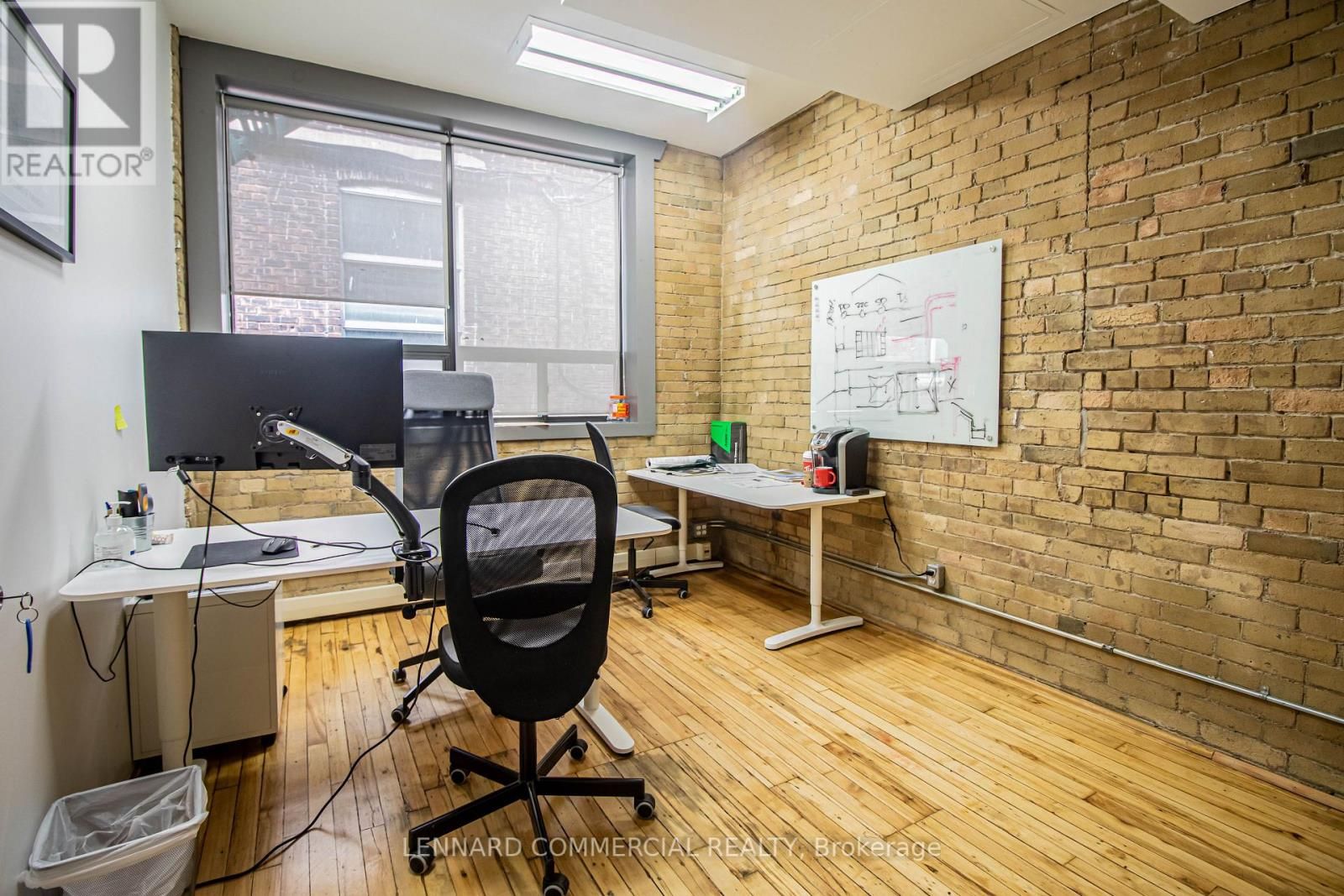 2nd floor walk up. Classic brick and beam with offices, meeting rooms, kitchen and open space.