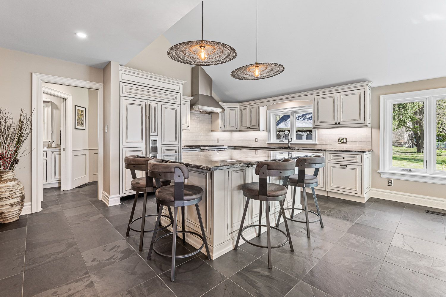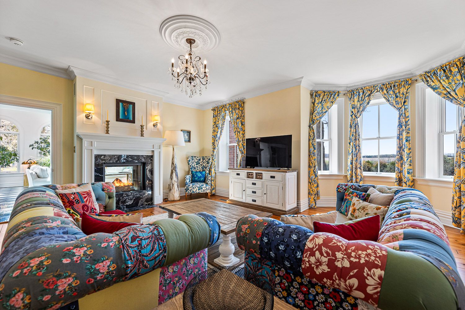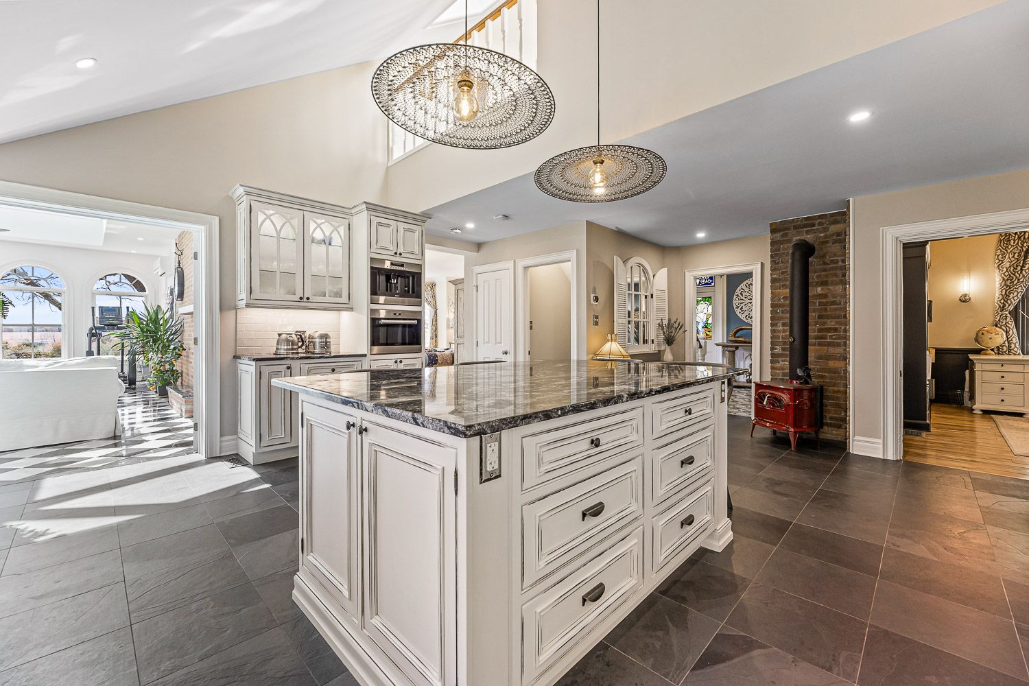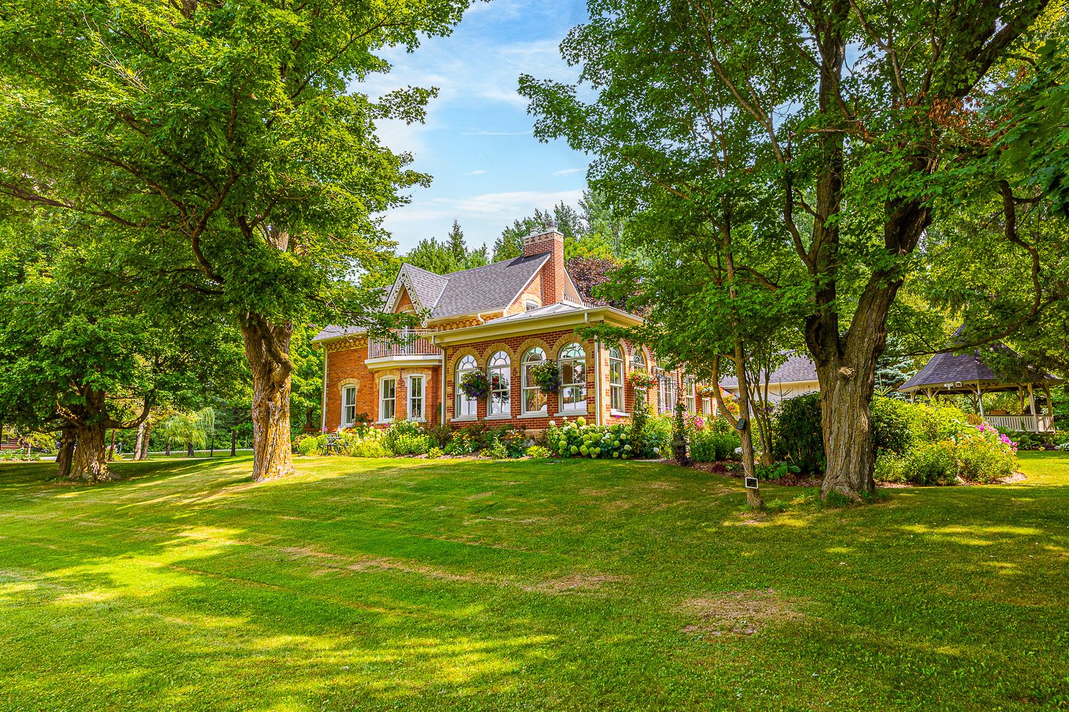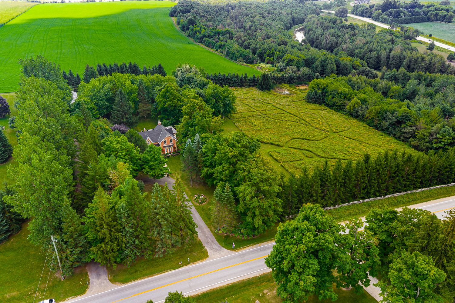 This beautiful historic country retreat sits on 9. 3 pristine acres of stunning formal gardens, wildflower meadows, natural woodland, ponds, grand river frontage, a fenced fruit and raised vegetable gardens as well as manicured trails to enable full enjoyment of this tranquil paradise. The main house built in 1890 offers 3,817 sqft of meticulously and luxuriously renovated living space, including a stunning 4 season 600 sqft sunroom addition providing wonderful views across the gardens and countryside beyond. A separate coach house, divided into 2 apartments, provides an additional 1,585 sqft of accommodation for multi-generational living or revenue potential. A geothermal ground source heat pump provides optimal heating and cooling to the main house, with additional underfloor heating to tiled areas for that sumptuous touch during the colder months. High-efficiency wood burning fireplaces provide the finishing touch of home comfort luxury. Several outbuildings include a 1680 sqft 3 car garage with car lift, ev charger and an attached heated studio/workshop. A separate 1,150 sqft barn provides additional workshop and storage, whilst a converted silo with spiral staircase and a rooftop viewing platform is the ultimate spot for those sundowner cocktails amongst the treetops away from it all. All this just a few minutes from the quaint town of grand valley with all the essentials of daily life, 60 minutes to downtown brampton, 60 minutes to pearson and 15 minutes to orangeville. Please see the attached feature sheet and video for all this stunning property has to offer. * please note in description and measurement to separate the main house from the coach house i have used the words in between and ground as the floor levels*