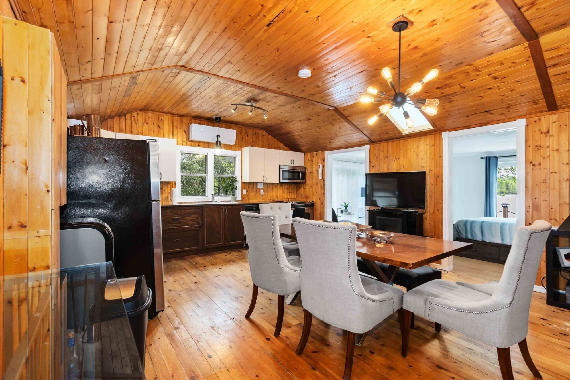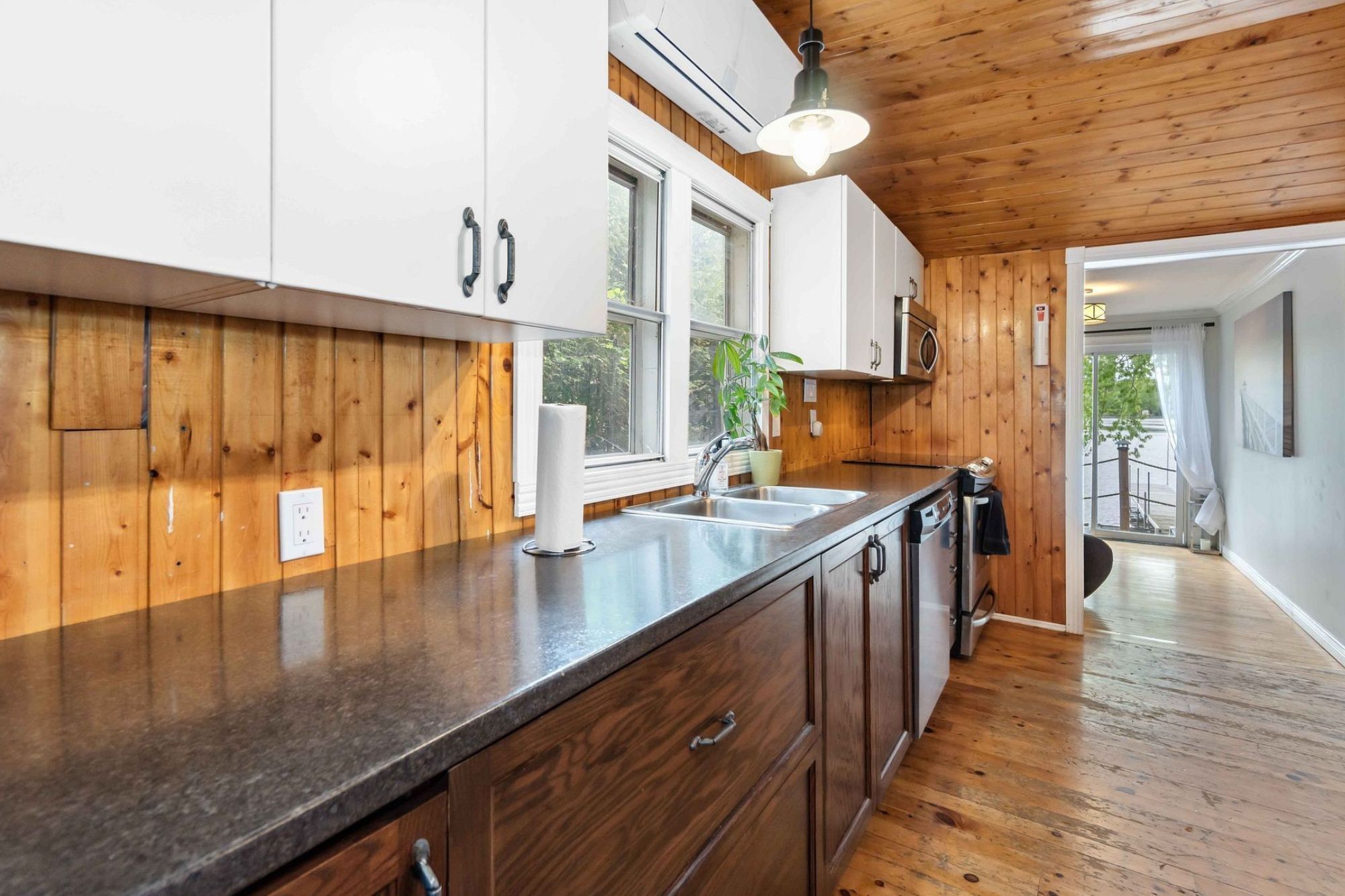 Rideau river waterfront living just minutes from manotick. Welcome to 2824 barts lane, a charming 3-bedroom, 2-bathroom four-season bungalow offering peaceful riverfront living with year-round recreation. Situated along the north shore of the rideau river, this property features approximately 50 feet of waterfrontage, a 46-foot dock, and panoramic water views. Inside, the home is bright and inviting with large windows that capture natural light and showcase the surrounding landscape. The living room features a cozy propane fireplace, creating a comfortable space to relax while enjoying views of the river. The kitchen offers ample cabinetry and preparation space and flows easily into the main living areas, making it ideal for everyday living or entertaining. The home includes three bedrooms, including a primary bedroom with patio doors leading to a private deck overlooking the water. A separate guest suite with a partial bath and kitchenette provides flexible space for visitors or potential short-term rental use. Outside, the property is designed to make the most of waterfront living with a hot tub, fire pit area, and concrete walkway leading down to the dock. Additional features include a durable metal roof, 200-amp electrical service, rv/5th wheel hookup, drilled well, septic system, and parking for up to six vehicles. Located just 5 minutes from equinelle golf club and within easy driving distance of manotick's shops, restaurants, and amenities. Surrounded by scenic beauty with nearby snowmobile and atv trails, this property offers a rare opportunity to enjoy waterfront living in every season.