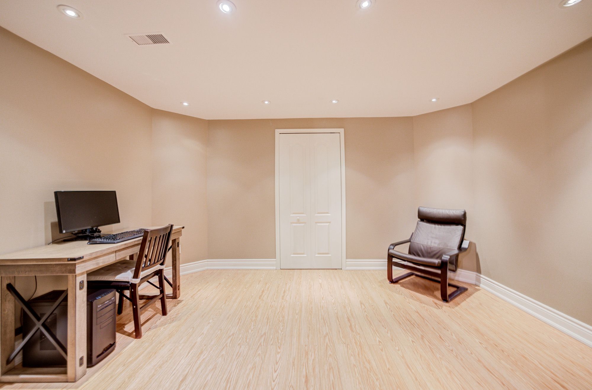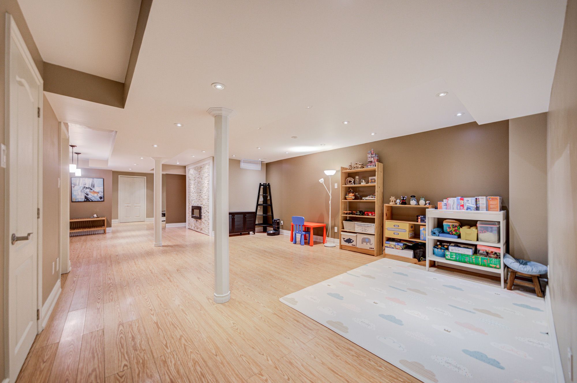 • Finished basement with wet bar, recreation area, and office space.