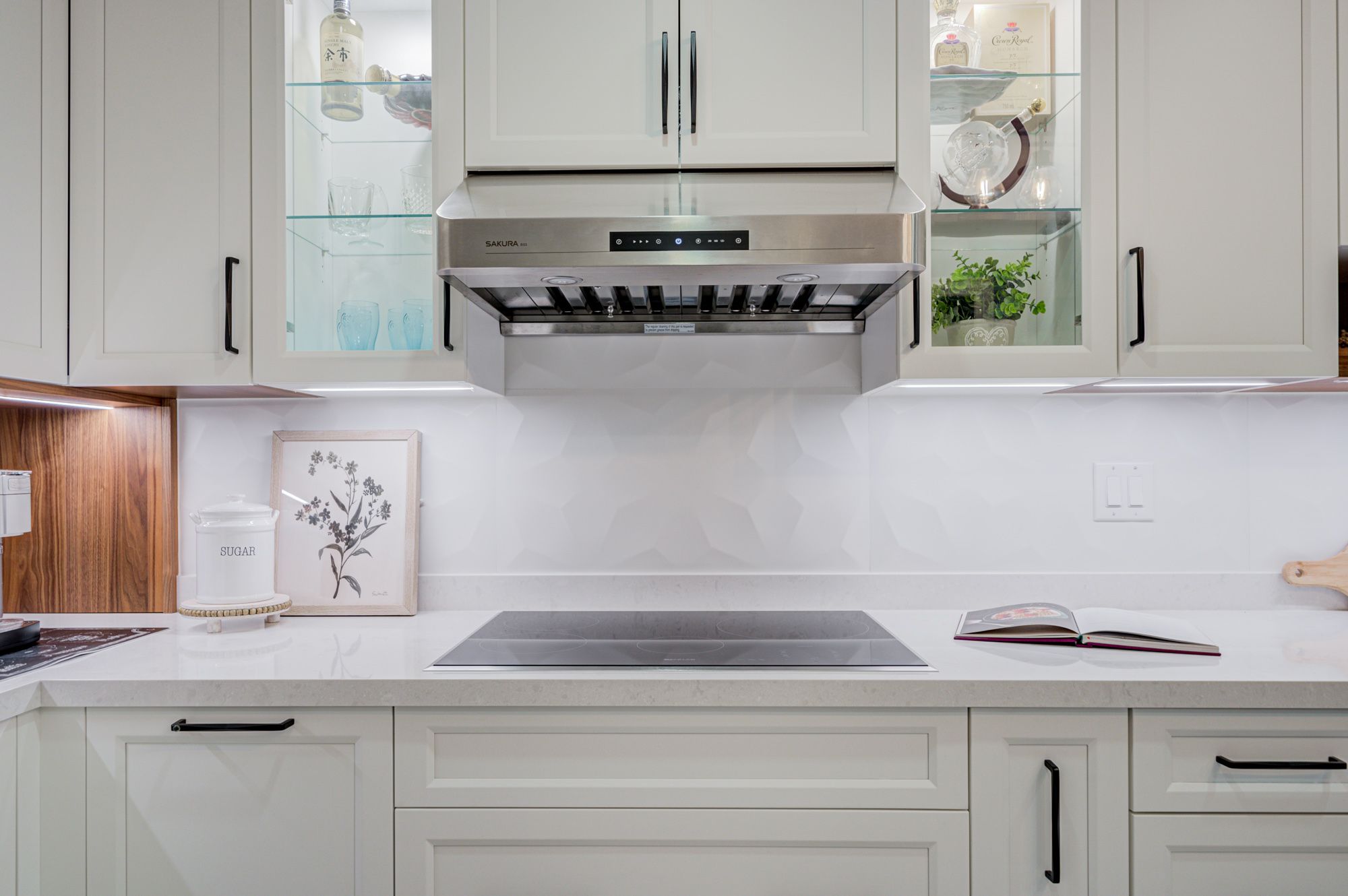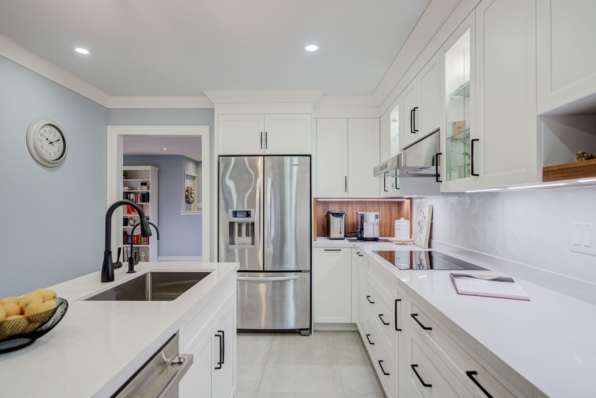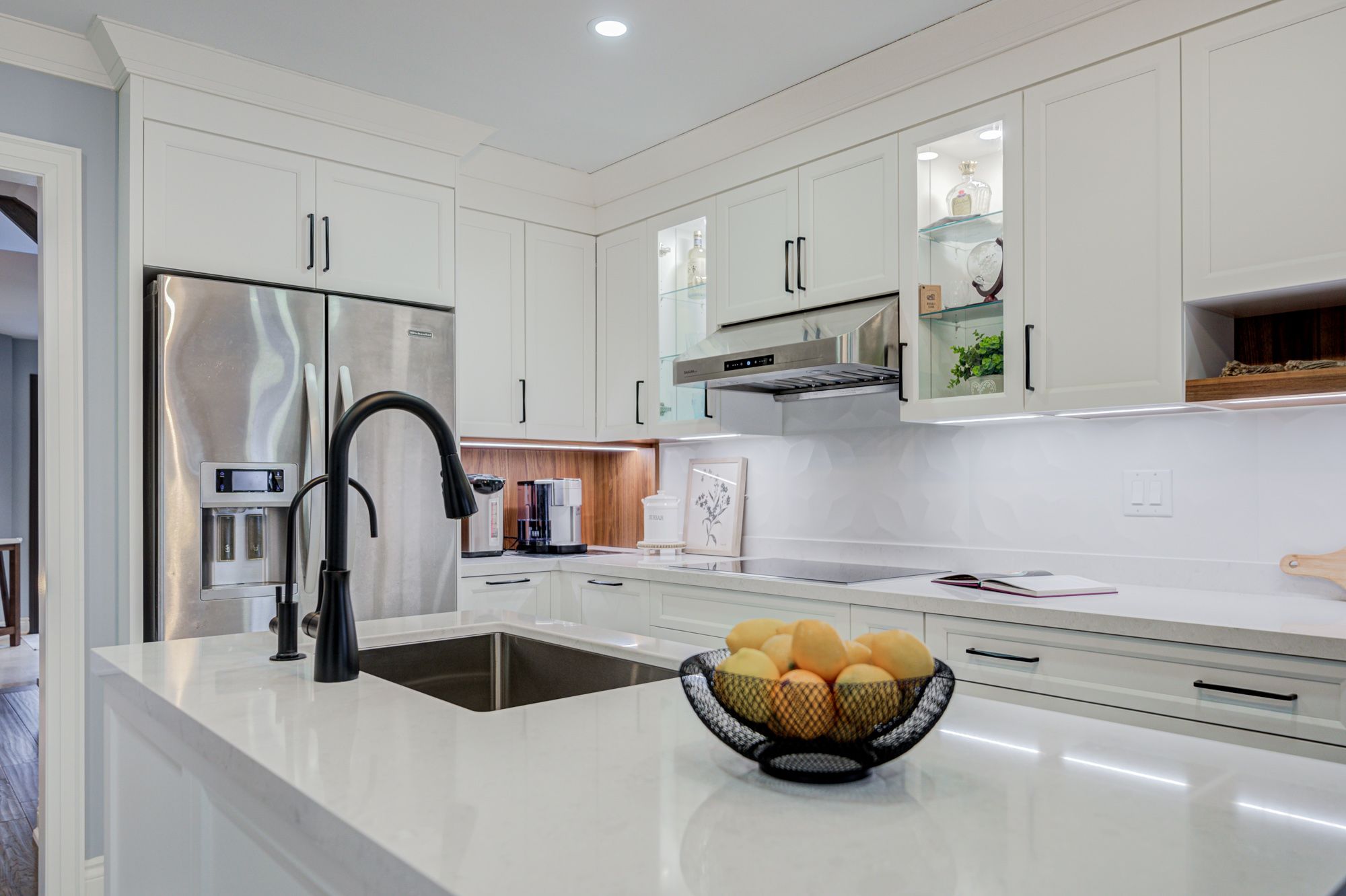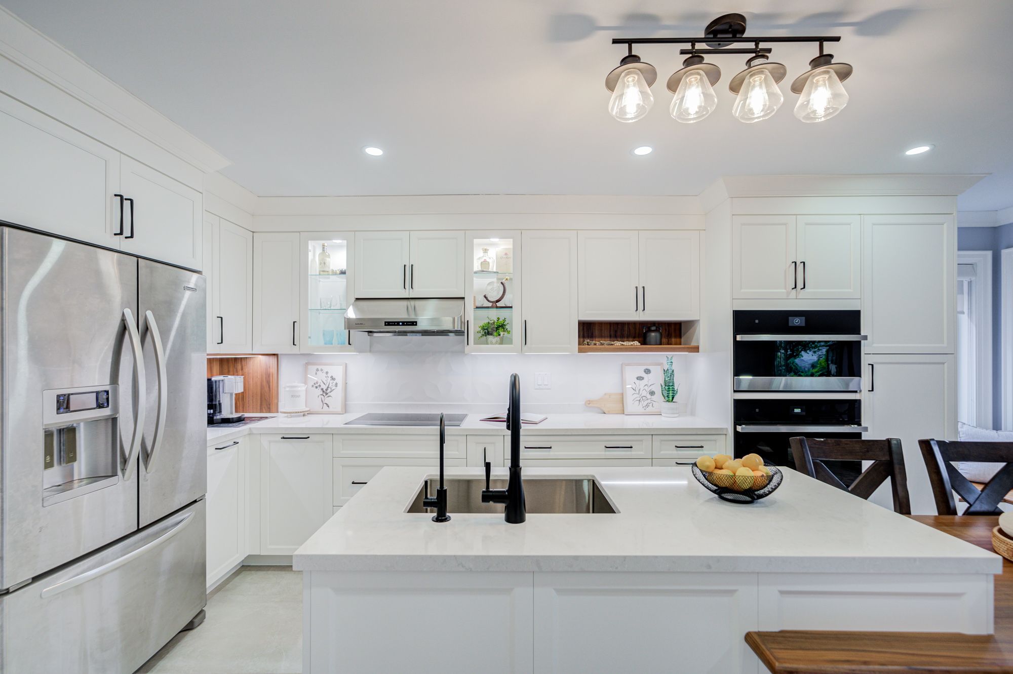 • Custom kitchen with built-in appliances and cozy breakfast nook.