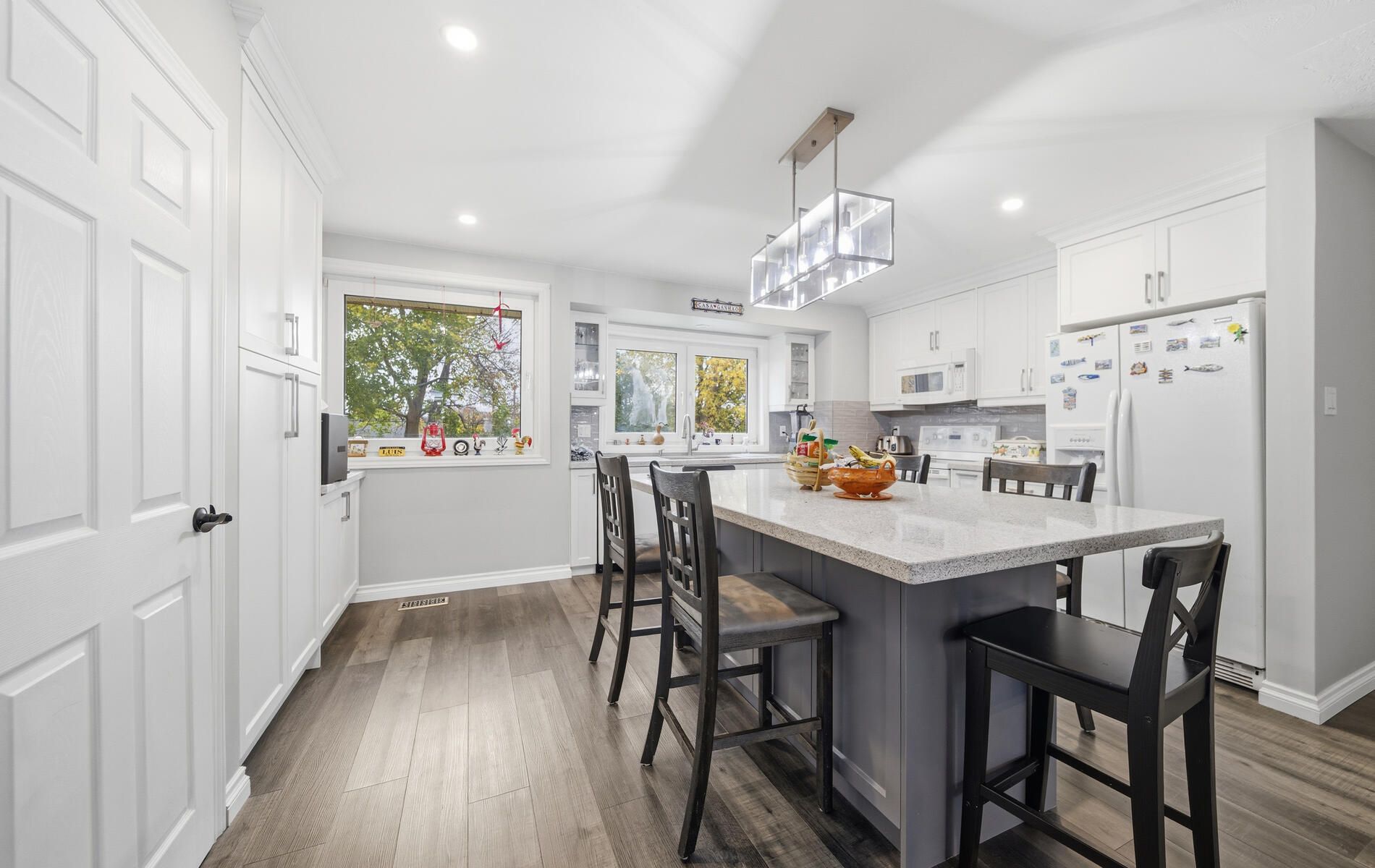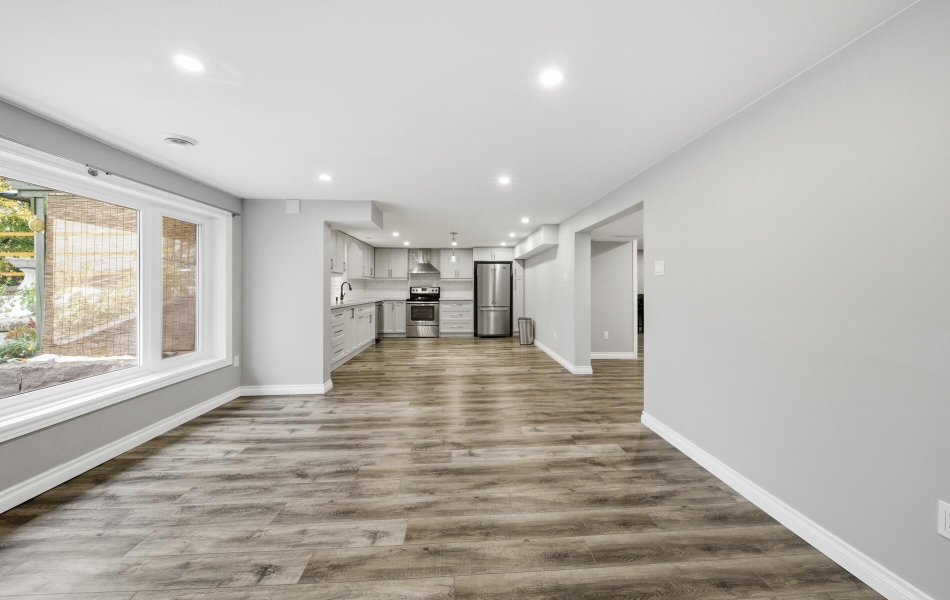 This beautifully renovated bungalow offers modern open-concept living in a sought-after area. The main floor features a bright, contemporary kitchen with a large island that seamlessly connects to the spacious living room - perfect for entertaining or family gatherings. Each of the three bedrooms is generously sized, and the updated bathroom adds a touch of modern comfort. The third bedroom currently includes convenient main-floor laundry facilities and a walkout to the rear deck overlooking the private backyard. This space can easily be converted back to a full bedroom if desired. The fully finished basement serves as a self-contained in-law suite, complete with its own entrance, a panoramic above-grade window, and a walkout to a lovely stone patio. The lower-level kitchen is modern and spacious, accommodating a dining table or moveable island. The bright living area offers peaceful views of the garden, and two large bedrooms plus a spa-like 4 piece bathroom and separate laundry facilities complete this versatile level. This home combines modern updates, flexible living spaces, and a prime location - ideal for multi-generational living or income potential.