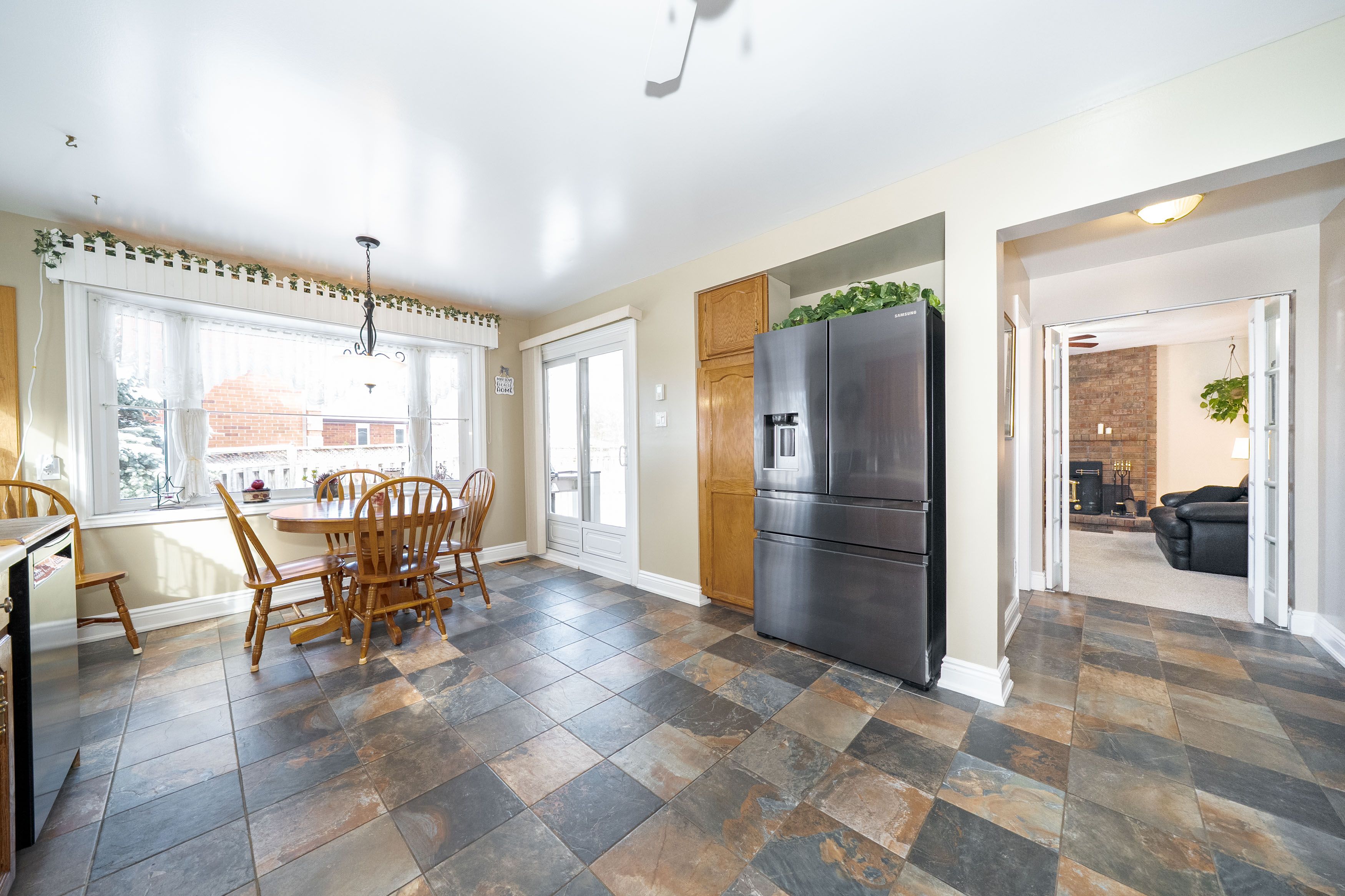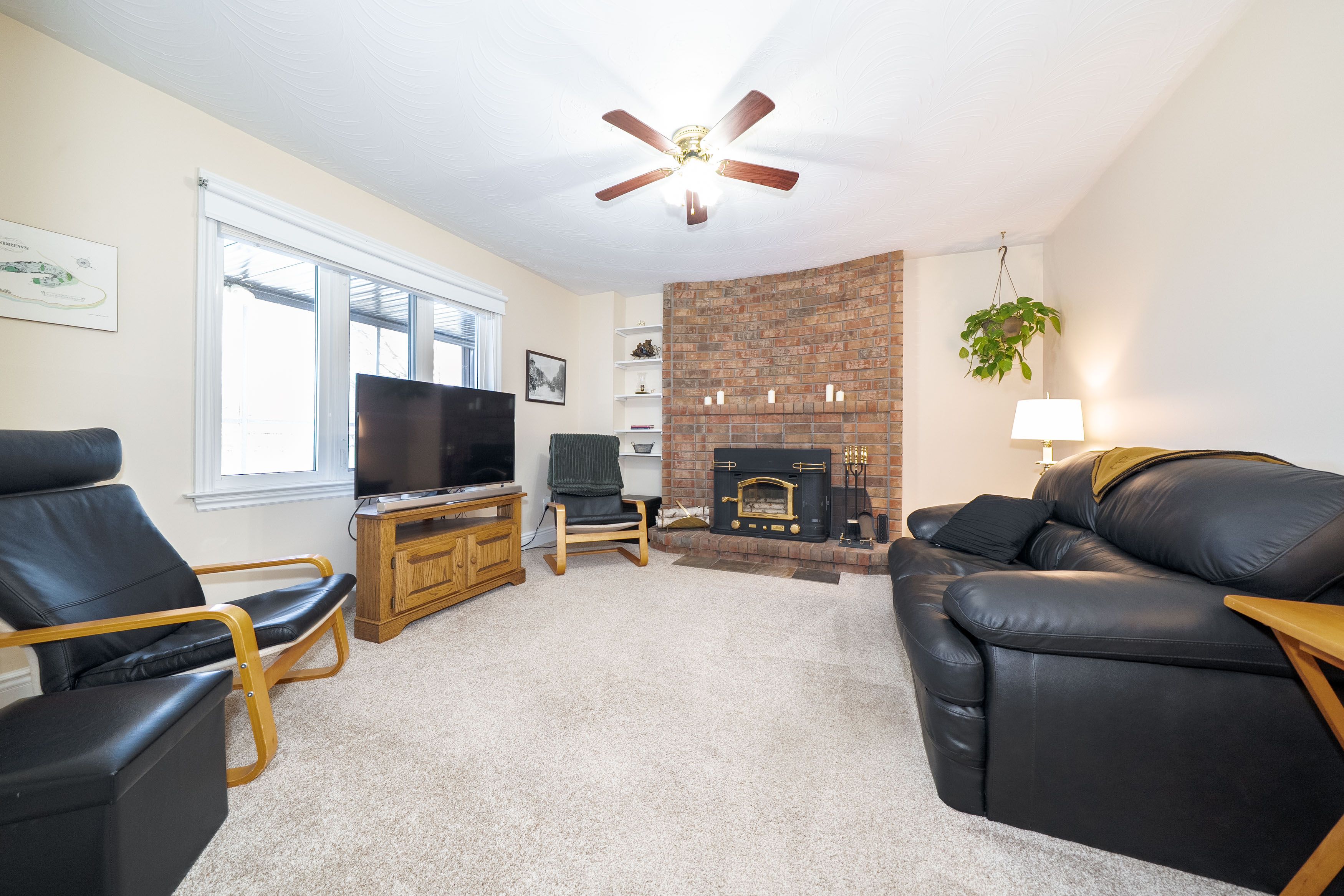• Cozy family room with a WETT certified wood-burning fireplace.