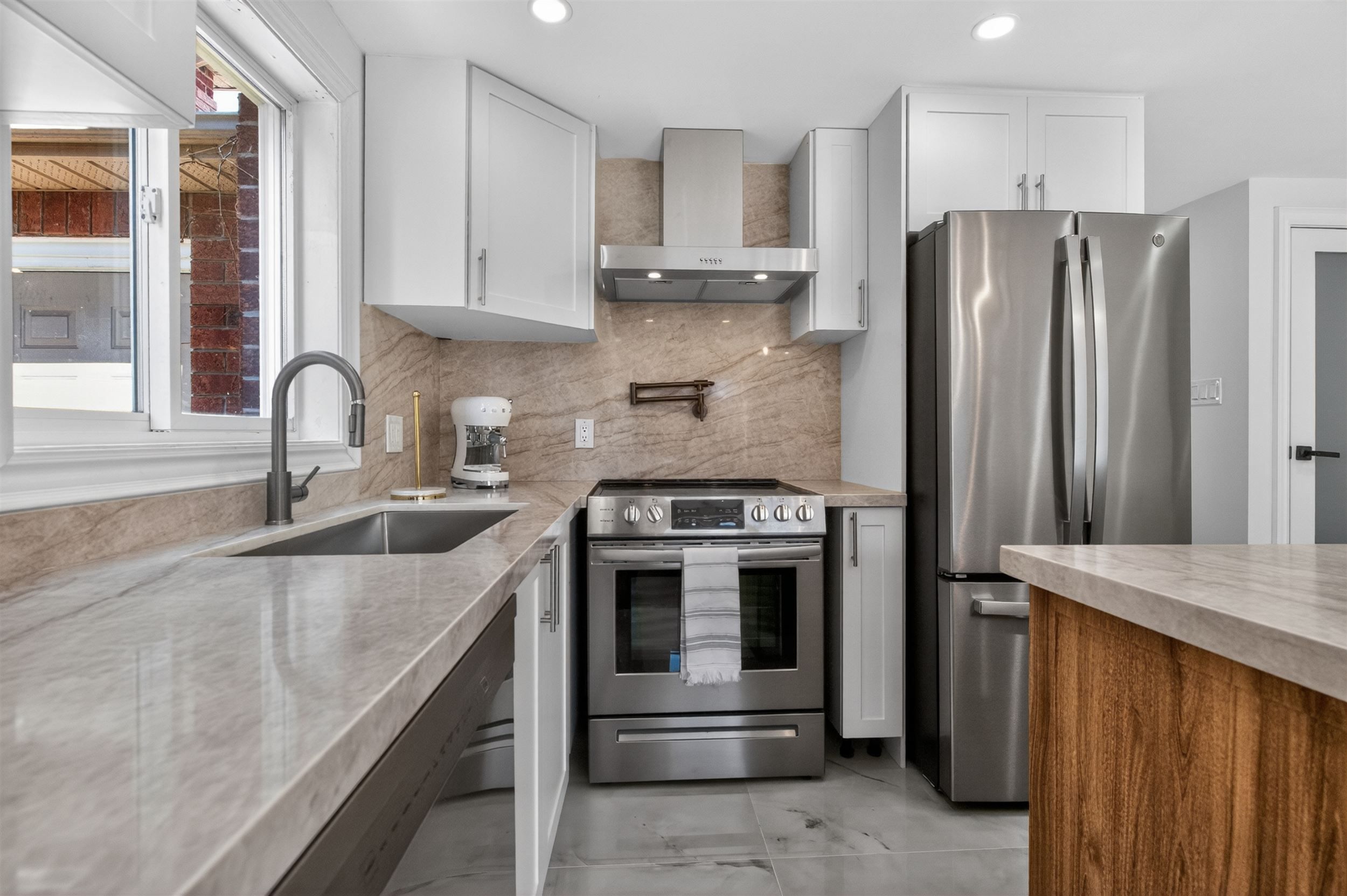 This meticulously upgraded residence where modern design and high-quality finishes come together in a premium offering. From the moment you arrive, the expanded front deck enhances curb appeal and creates a welcoming entry. Inside, the home unfolds with a clean, contemporary aesthetic defined by exceptional design and cohesive materials. Hardwood flooring and large format tile runs throughout the principal living spaces. The open-concept layout is bright and inviting, anchored by a stunning kitchen that has been thoughtfully reimagined. The kitchen features striking quartzite countertops and backsplash with a waterfall-style island, paired seamlessly with beautiful custom cabinetry. Stainless steel appliances, a modern range hood, and a designer light fixture complete the space, while the layout flows effortlessly into the dining and living areas-ideal for both everyday living and entertaining. The main floor is enhanced by pot lights throughout. Large sliding doors at the rear allow for natural light to flood the space. The staircase itself is finished with solid wood treads, glass panel railings, and black accents. The washrooms have been elevated to a spa-like standard. The primary bathroom showcases a frameless glass shower enclosure with black fixtures, and a rainfall shower system. A custom vanity with warm wood tones, and vertical slat paneling adds depth. Additional details throughout the home include upgraded interior doors, black lever hardware, and clean trim work. The lower level offers a fully finished, turn-key space with tiled flooring throughout, extending the living area and providing flexibility for recreation, work, or extended family use. Ideally situated in barrie's sought-after georgian drive community, this home offers exceptional proximity to highway 400, providing access for commuters, while close to a wide range of amenities. Every element has been carefully considered and executed, resulting in a home that is truly turnkey.