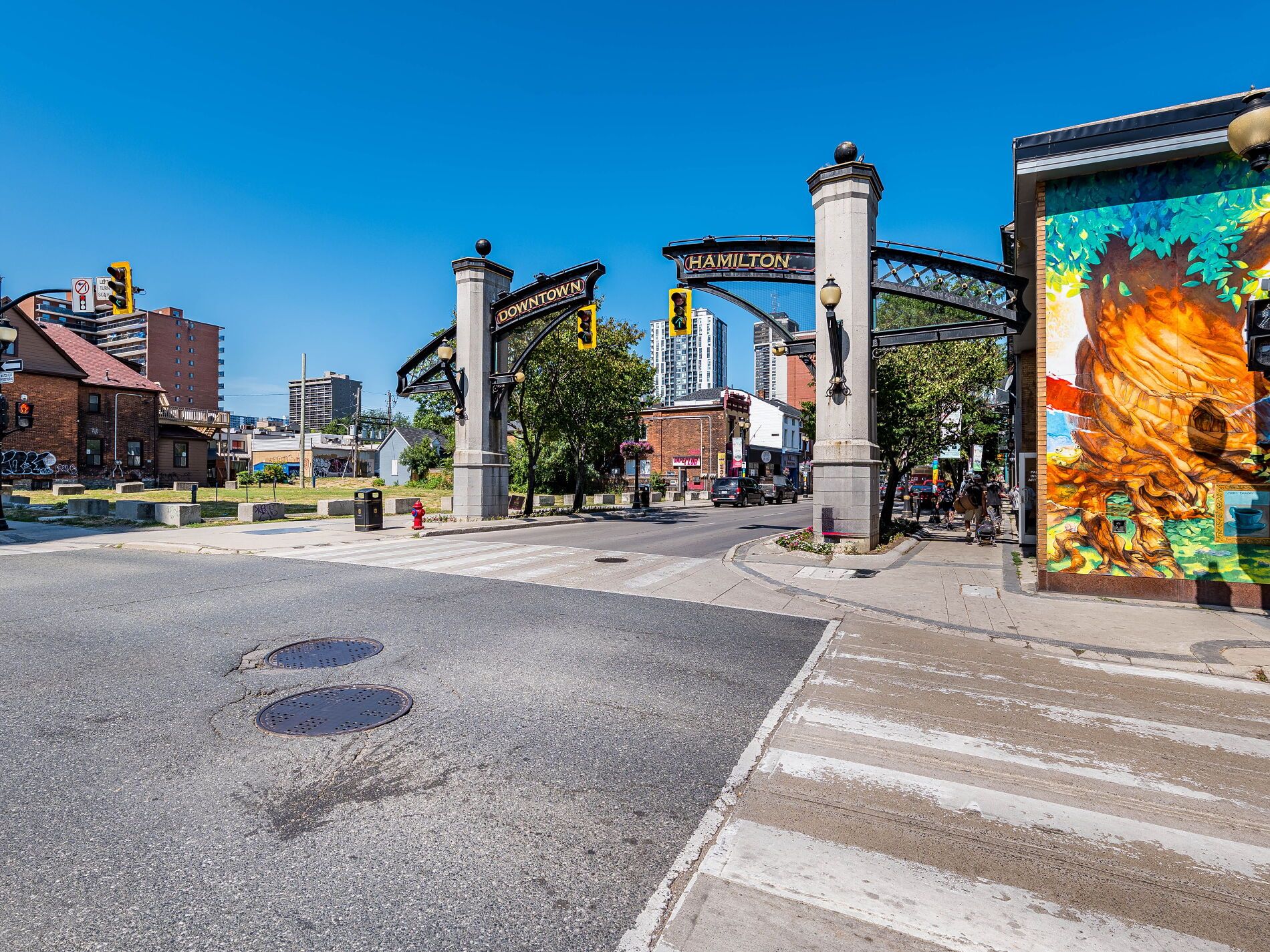 Prime location 1 bedroom apartment with parking! Located in trendy international village in the heart of the city steps to all amenities! This gorgeous open concept sunny, renovated and updated corner penthouse with 9. 5 ft ceilings featuring 800 sqft of living space! Soaring 9. 5 ft (loft like) ceilings, w/ large windows and sky light! Glorious kitchen for any gourmet - granite counters, backsplash, stainless steel appliances & breakfast bar! Hardwood and slate flooring throughout . 4x8' storage locker in basement. Laundry on same level. Parking available. Steps to restaurants, parks, schools, groceries, farmers market, jackson square (w/ close proximity to gore park and mcmaster university)!!