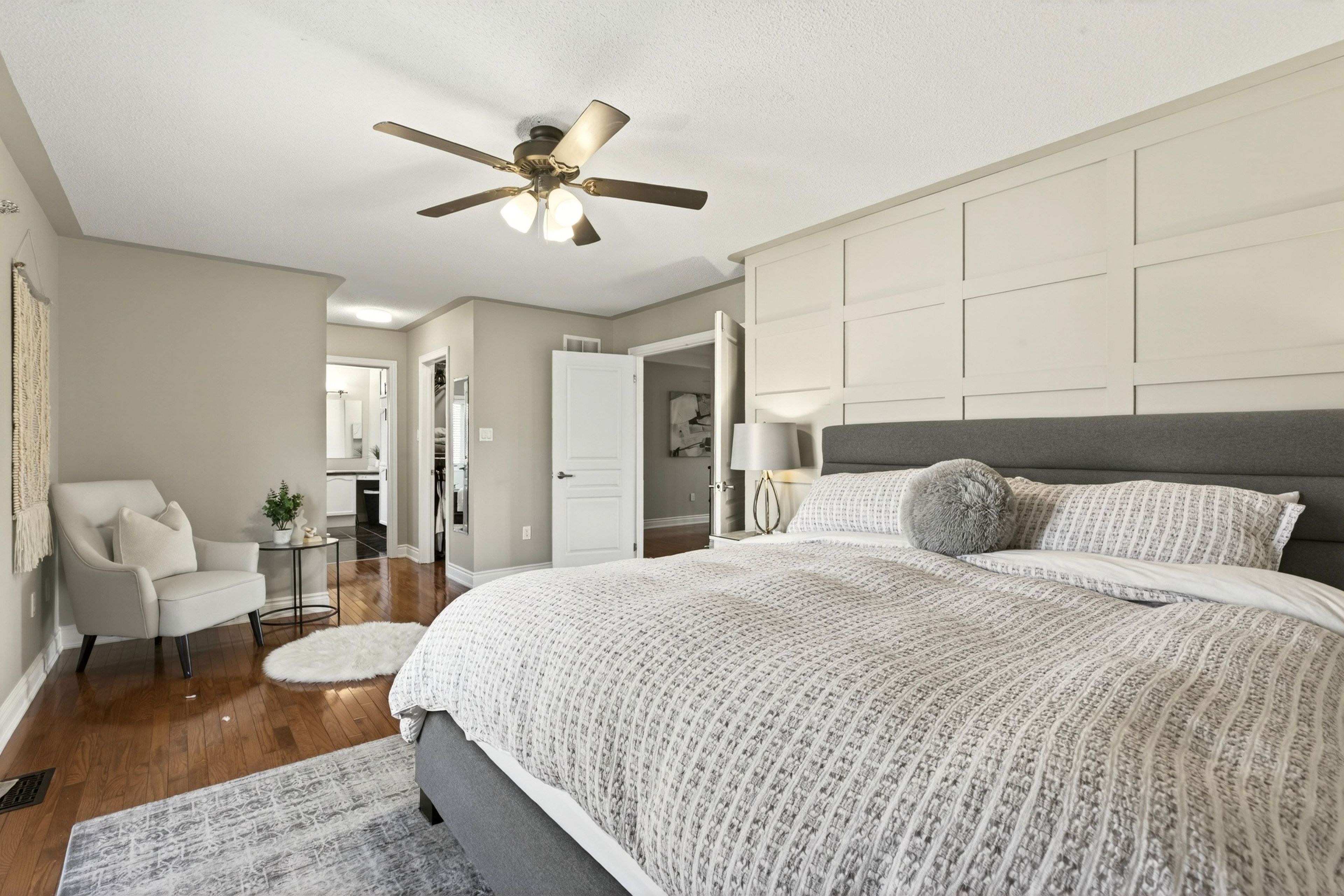 Tucked away on a quiet, family-friendly street in sought-after lakeshore woods, this beautifully maintained 4-bedroom home blends comfort, style, and thoughtful updates throughout. The kitchen serves as the heart of the home, featuring modern tilework and a sleek backsplash that adds a polished, contemporary touch, while new light fixtures throughout create a warm, cohesive atmosphere. The inviting family room strikes the perfect balance between cozy and modern-ideal for relaxing evenings or entertaining. Upstairs, a charming second-floor balcony offers the perfect spot for morning coffee or unwinding at the end of the day, while the primary suite is a true retreat with a beautifully updated 5pc ensuite. Each generously sized bedroom offers convenient bathroom access, providing both privacy and everyday functionality for families and guests. The basement adds exceptional versatility, with a soundproof "podcast" room-perfect for content creation, remote work, or a quiet creative space. Meticulously cared for and truly move-in ready, this home reflects pride of ownership at every turn and is ideally located close to parks, schools, and the lake, offering an outstanding lifestyle in one of the area's most desirable communities.