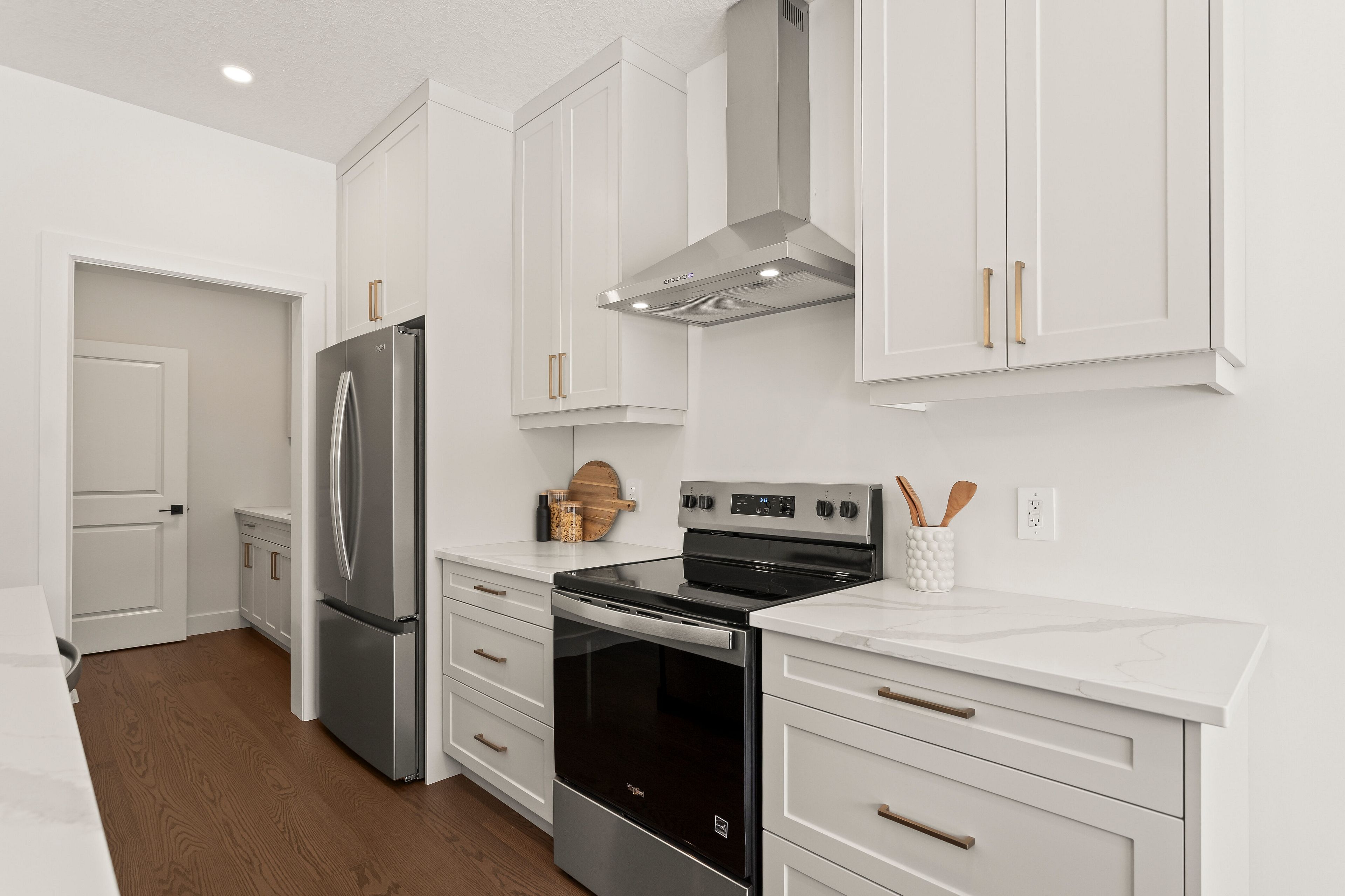 To be built! The hst rebate has been adjusted to list price. Hazzard homes presents the kerry, featuring 2366 sq ft of expertly designed, premium living space in desirable foxfield subdivision. Enter through the double front doors through to the bright open concept main floor featuring hardwood flooring throughout main level; staircase with black metal spindles; kitchen with custom cabinetry, quartz/granite countertops, island with breakfast bar, stainless steel chimney style range hood, stainless steel appliances and pantry with sink and cabinetry; expansive bright great room with 7' high windows/patio slider; generous mudroom; and convenient bright den. There are 4 bedrooms on the second level including primary suite with 5-piece ensuite (tiled shower with glass enclosure, quartz countertops, double sinks) and walk in closet; convenient second primary suite and 3rd and 4th bedrooms sharing a jack and jill bathroom. The expansive unfinished basement is ready for your personal touch/development. Other features include: hardwood flooring throughout main level, 9' ceilings on main level, poplar railing with black metal spindles, under-mount sinks, pot lights, upgraded lighting, rough-ins for security system, rough-in bathroom in basement, a/c, paver stone driveway and path to front door and more! Other lots and plans to choose from. Photos are from previous model home and show upgraded items.