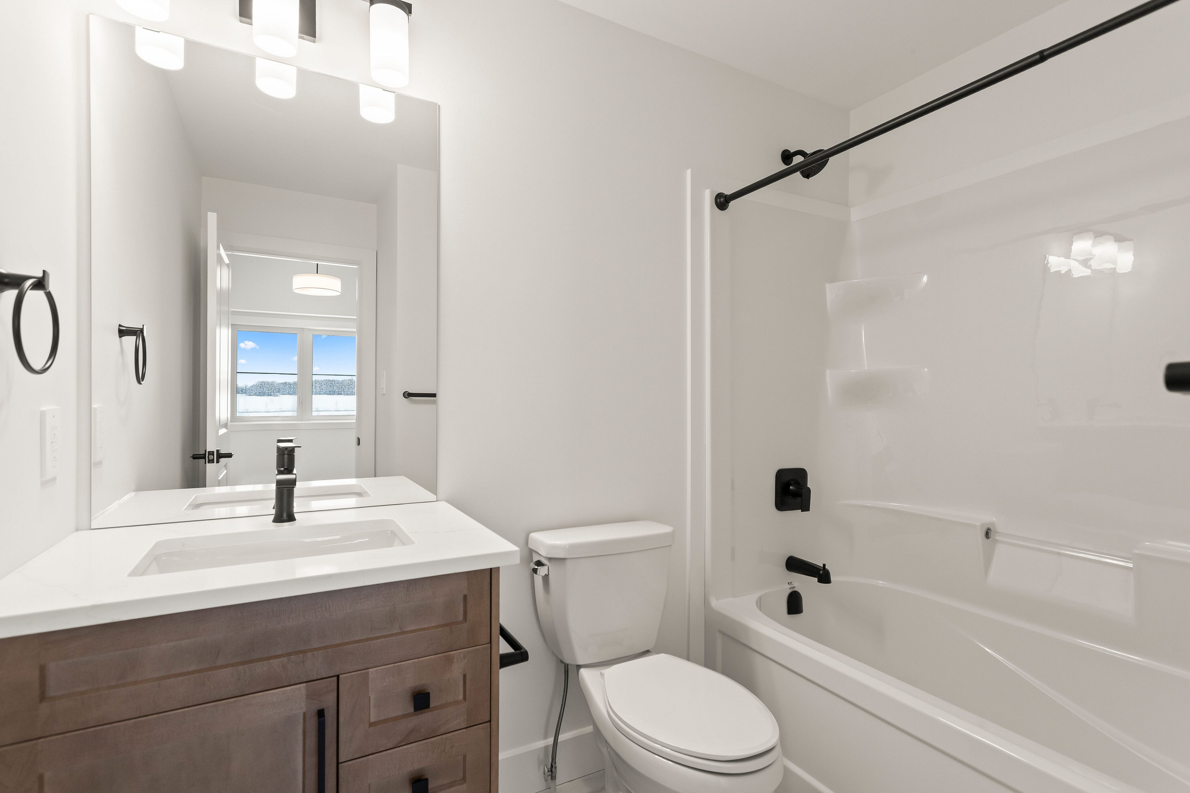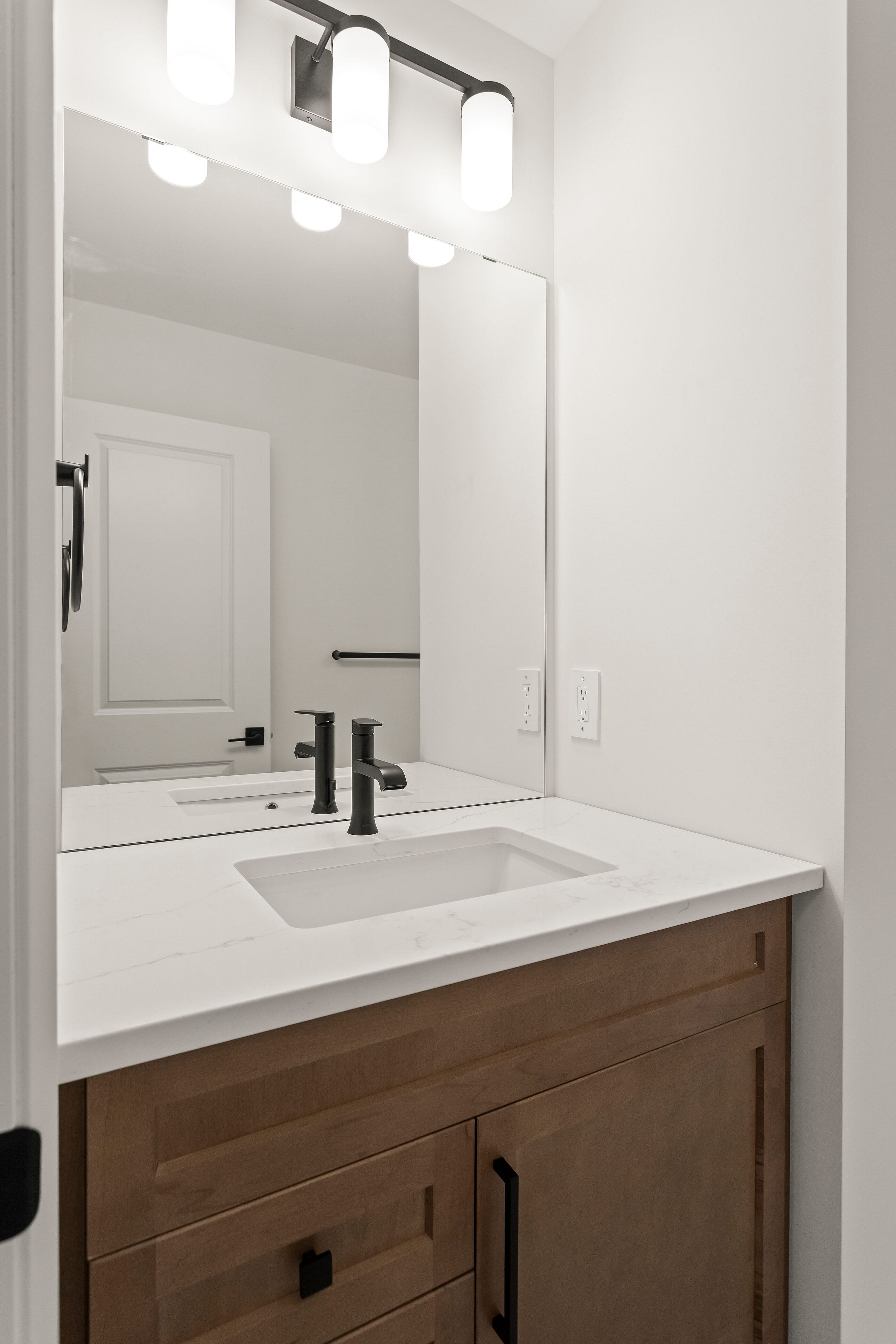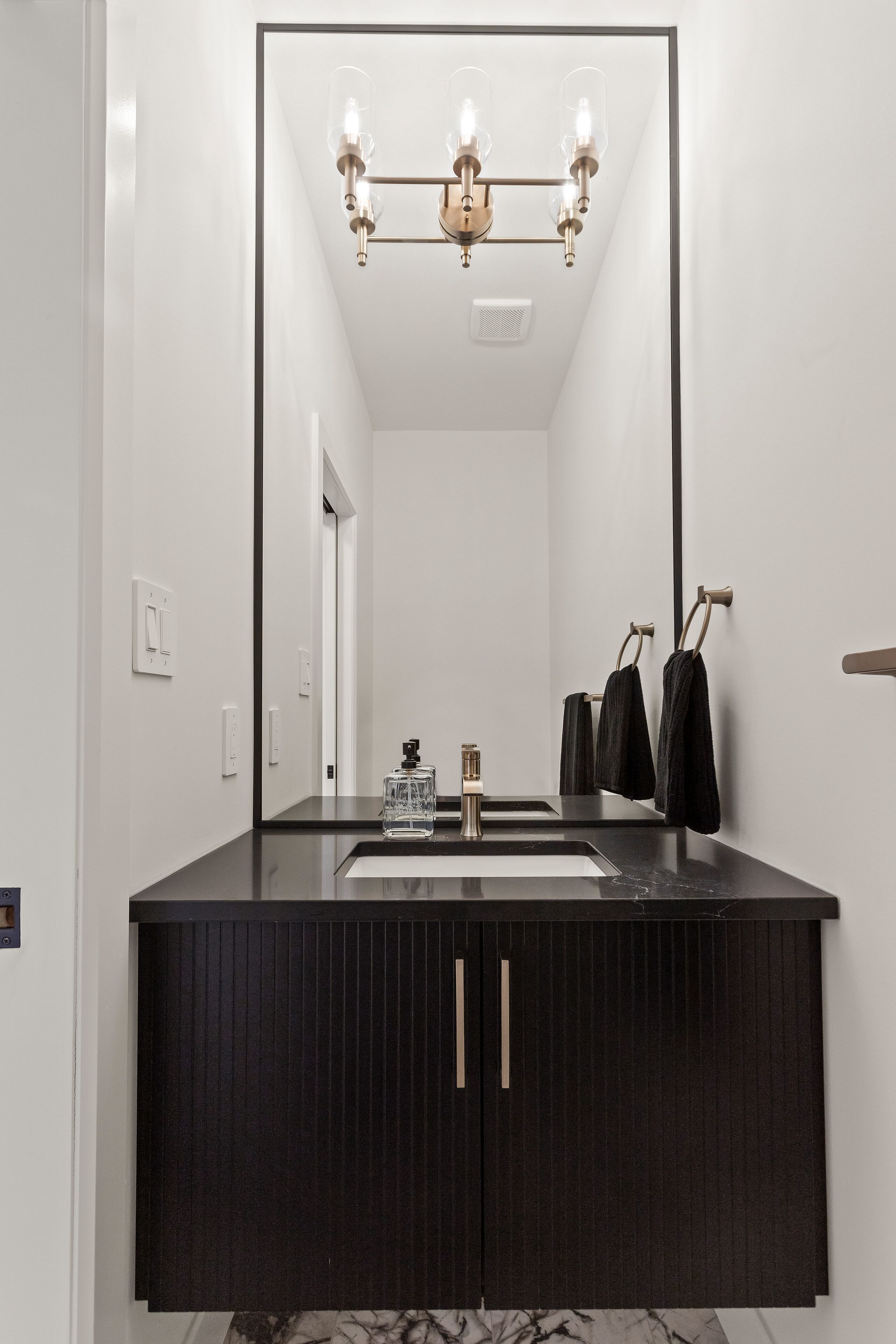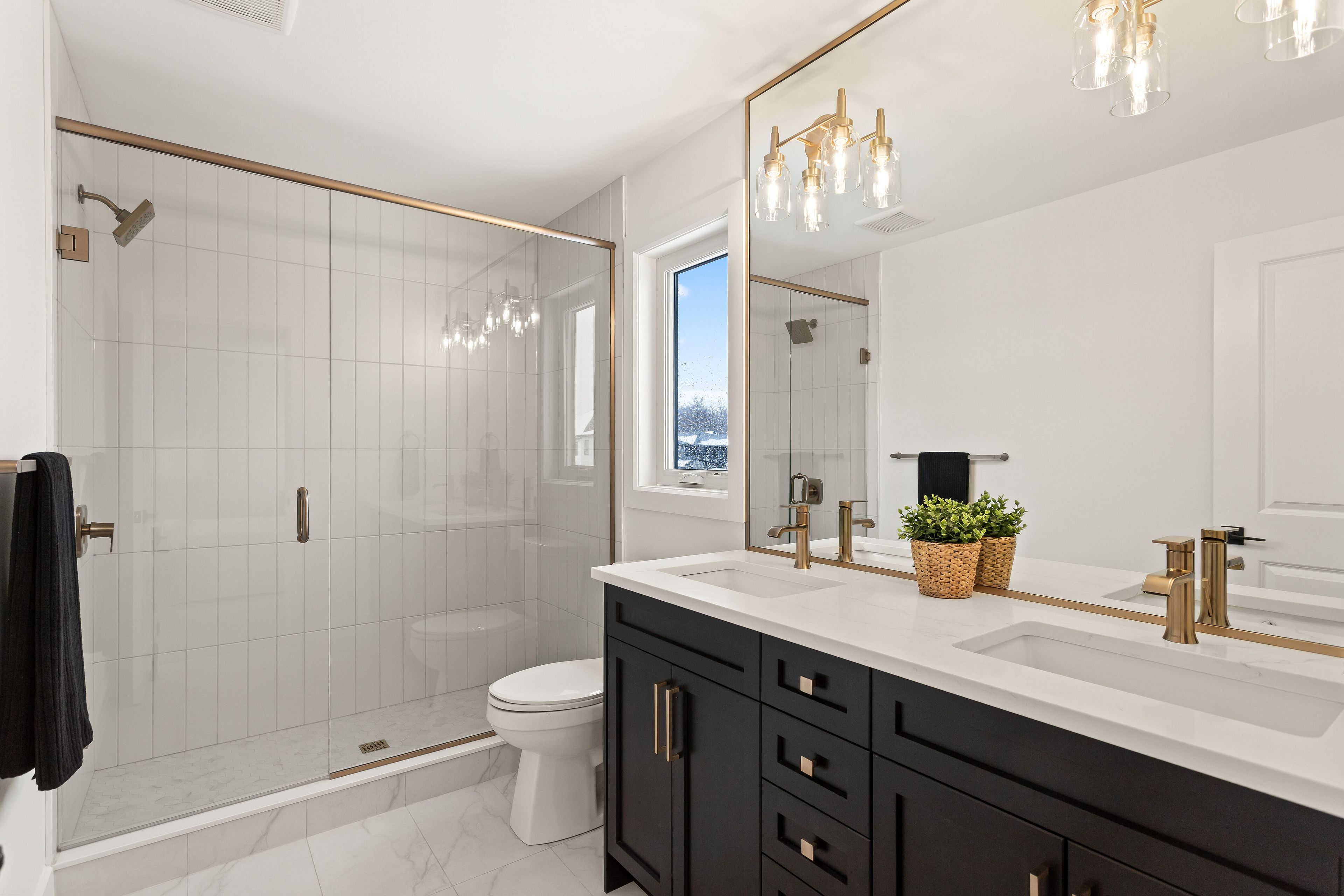 • Custom kitchen features quartz countertops, stainless steel appliances, and breakfast bar.